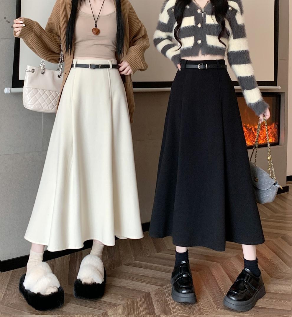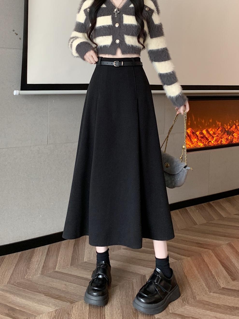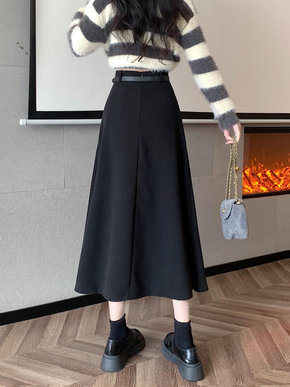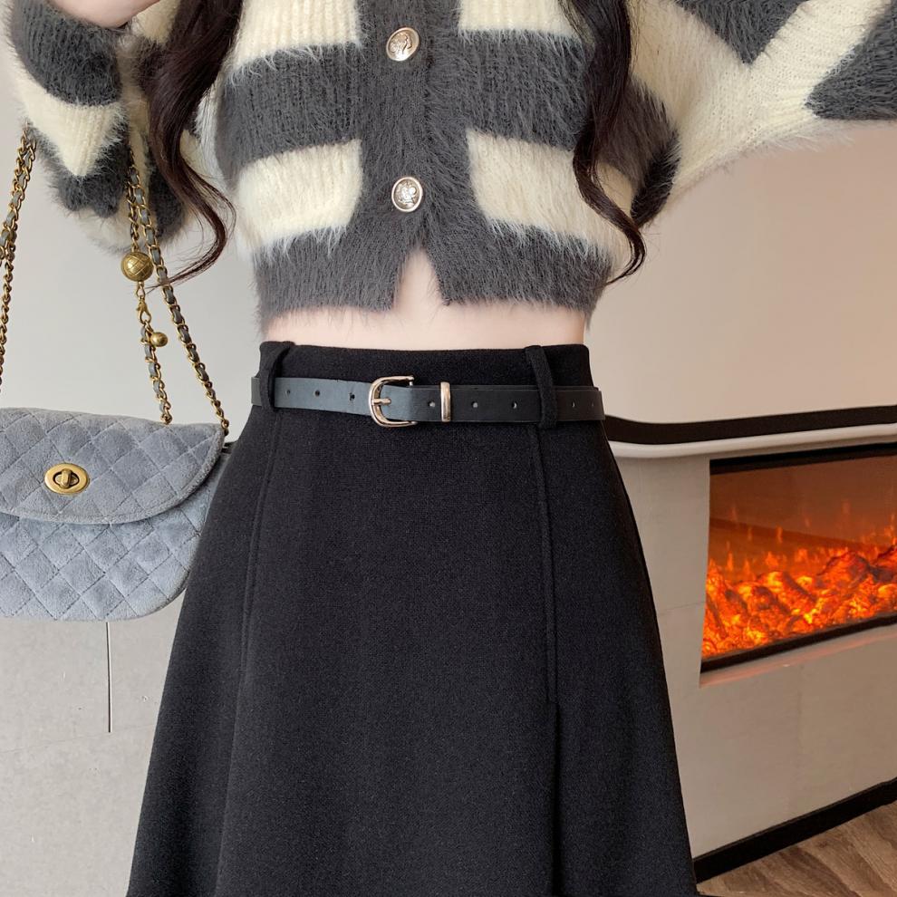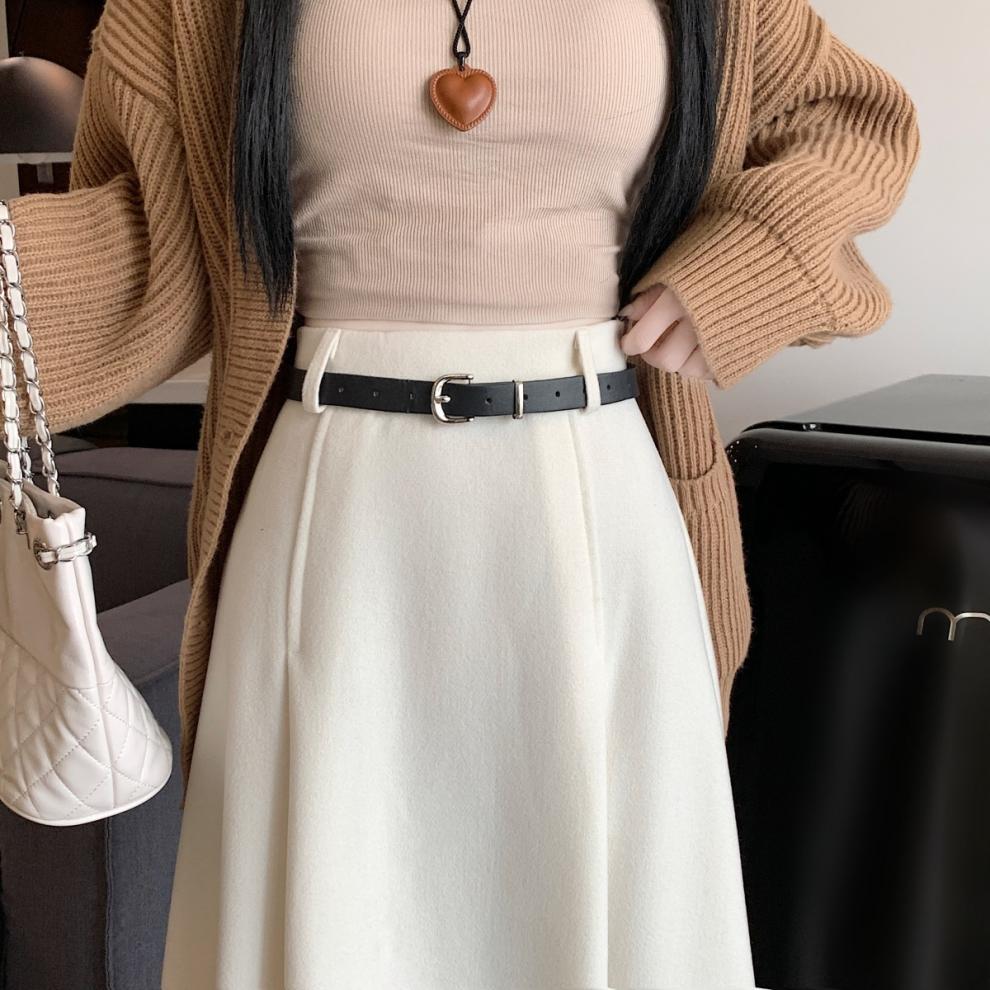 Falda Retro Francesa Hottie de Cintura Alta para Mujer Nueva Falda A-Line de Largo Medio para las Cuatro Estaciones