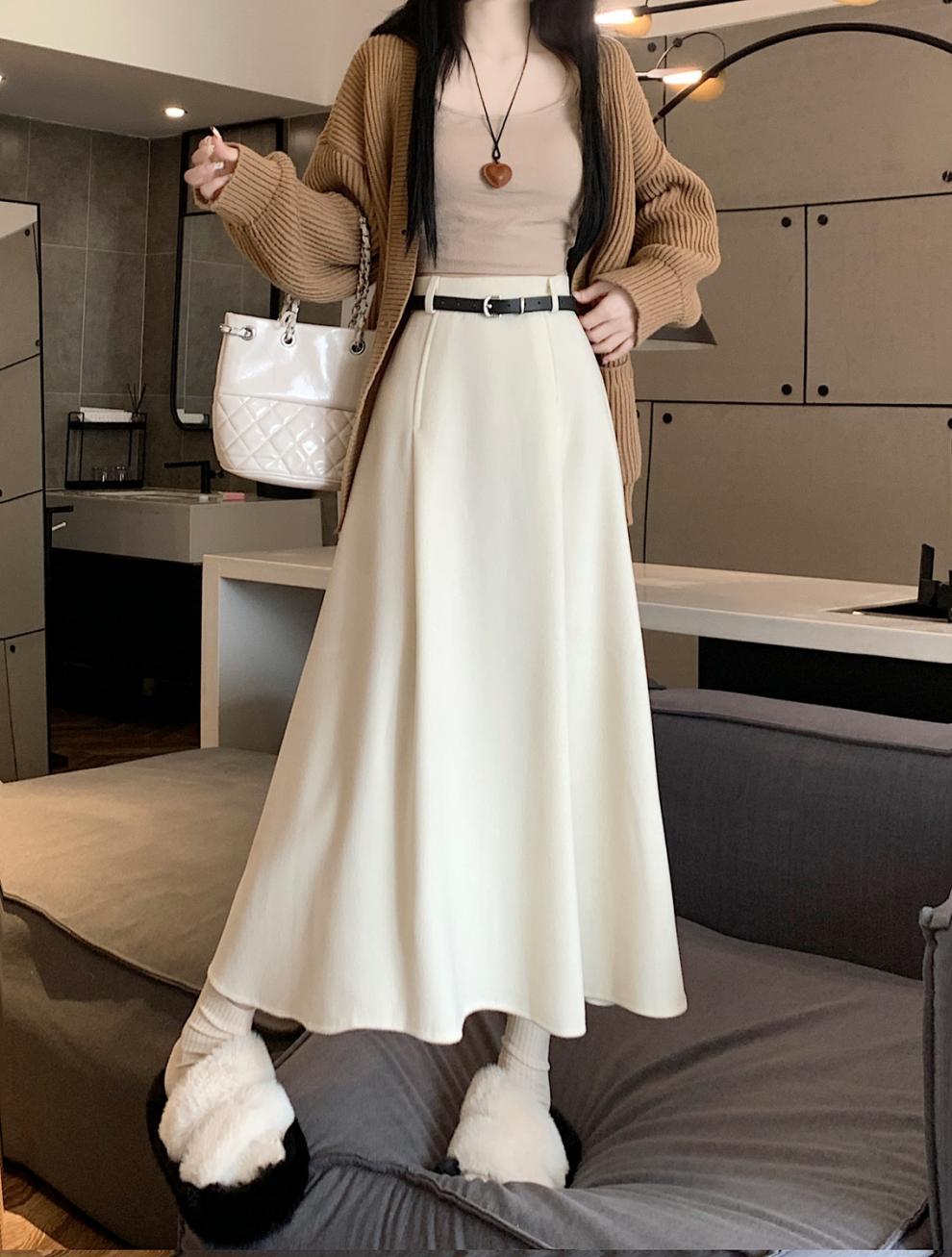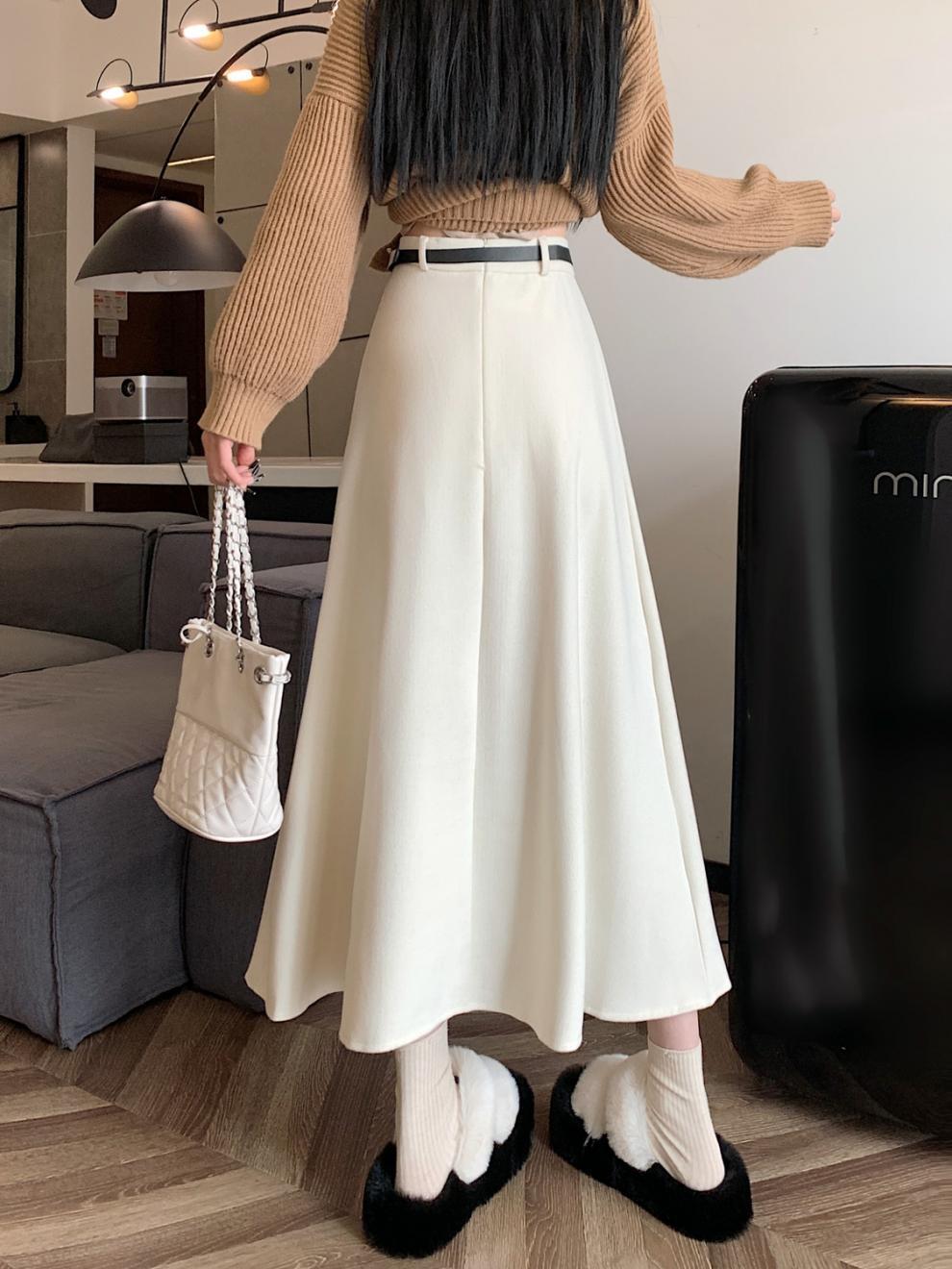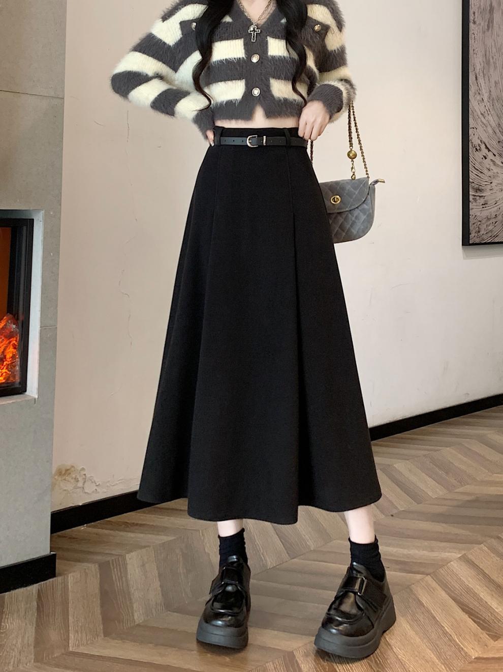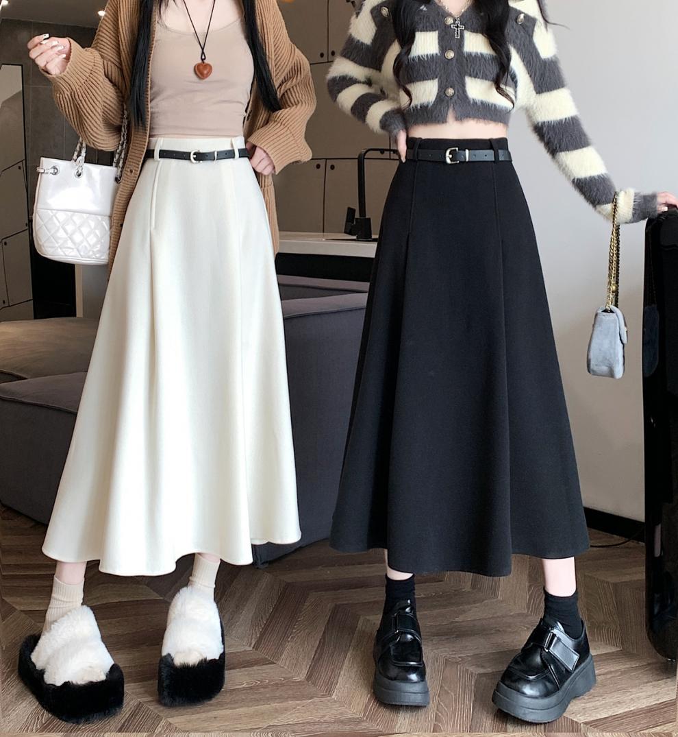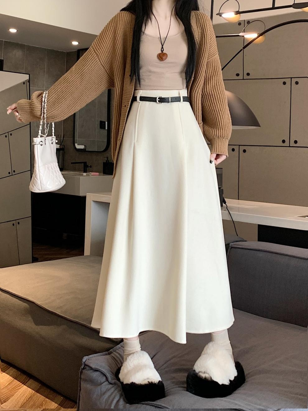 Falda Retro Francesa Hottie de Cintura Alta para Mujer Nueva Falda A-Line de Largo Medio para las Cuatro Estaciones