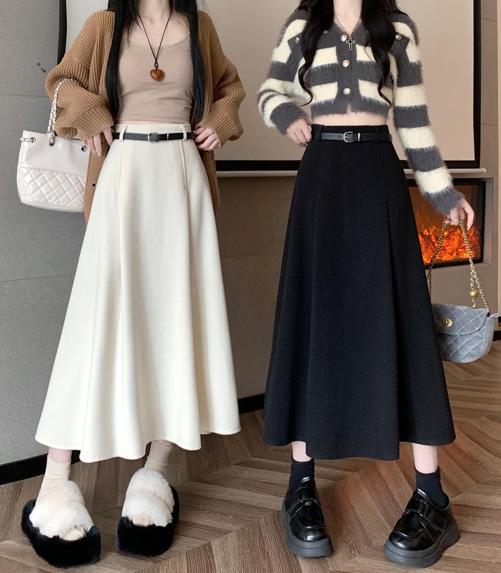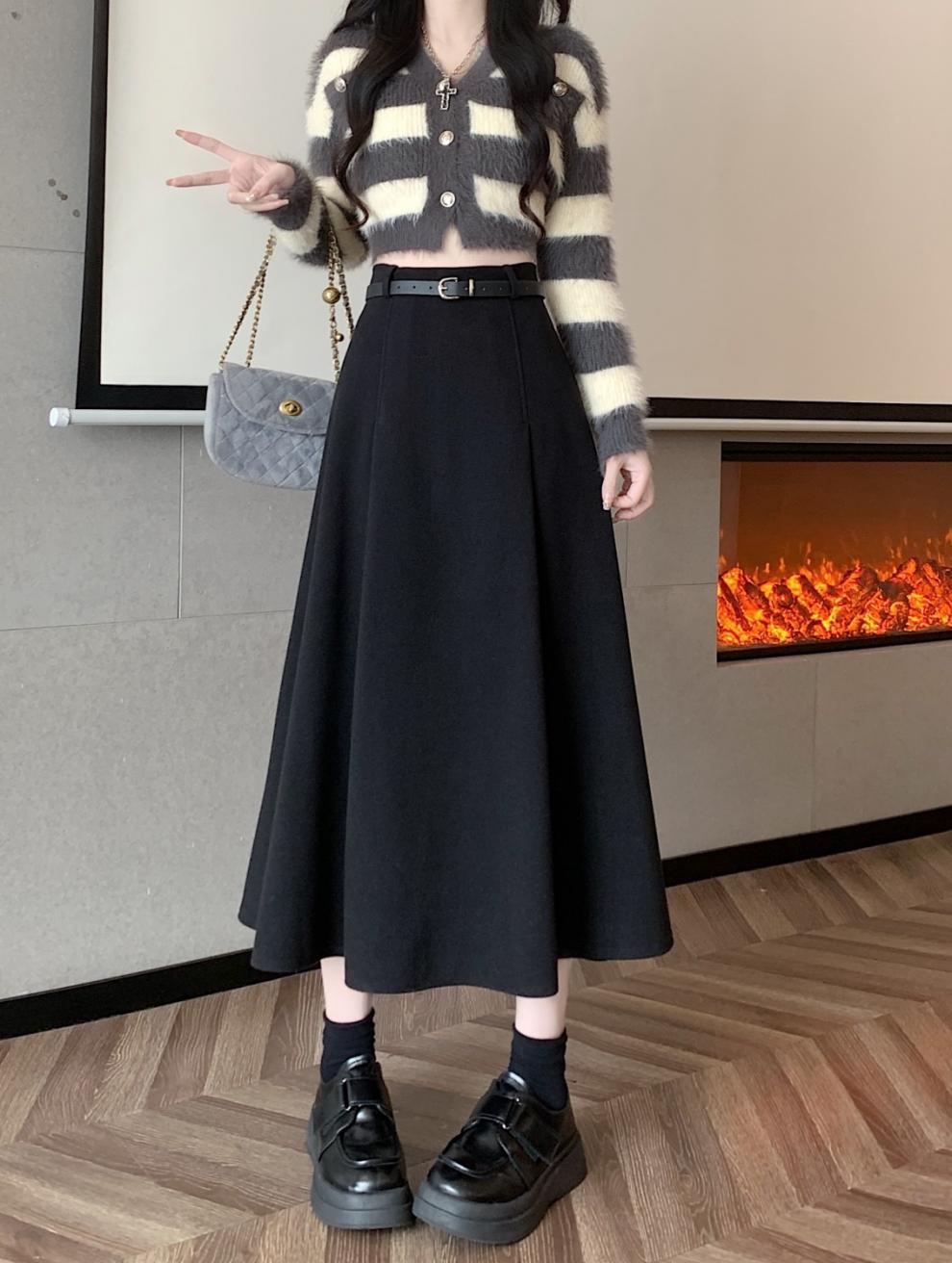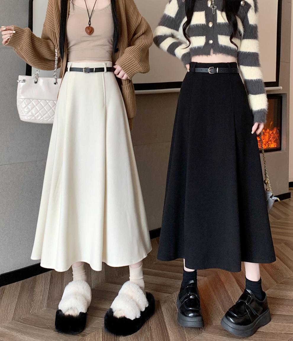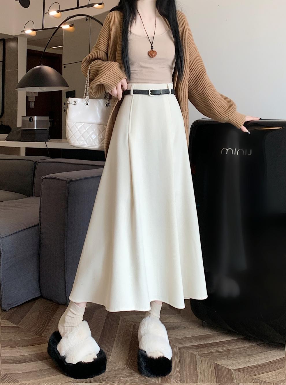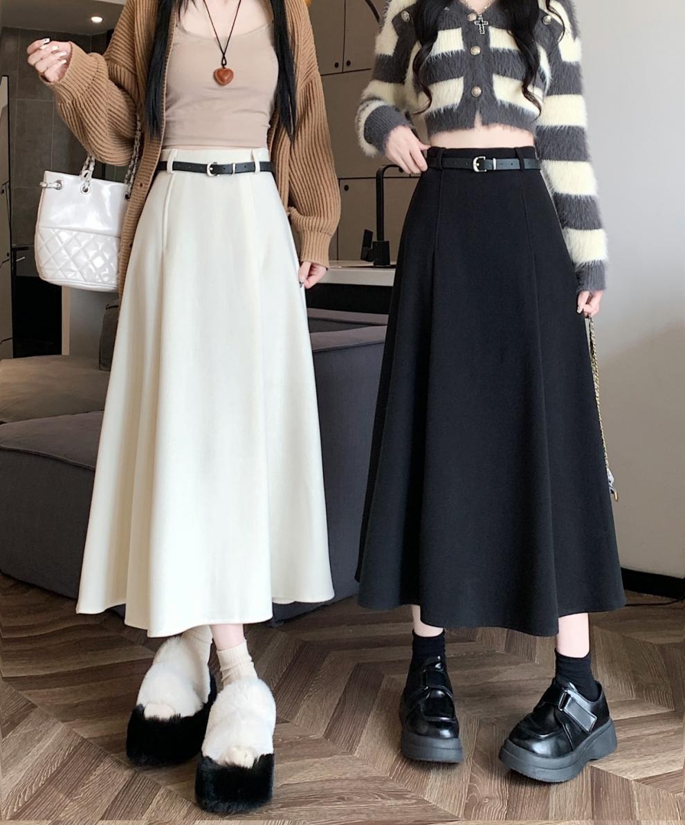 Falda Retro Francesa Hottie de Cintura Alta para Mujer Nueva Falda A-Line de Largo Medio para las Cuatro Estaciones