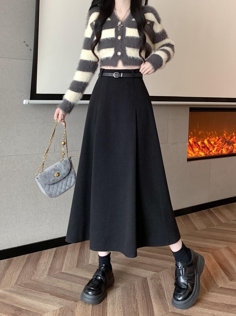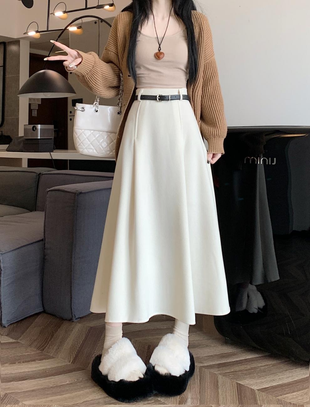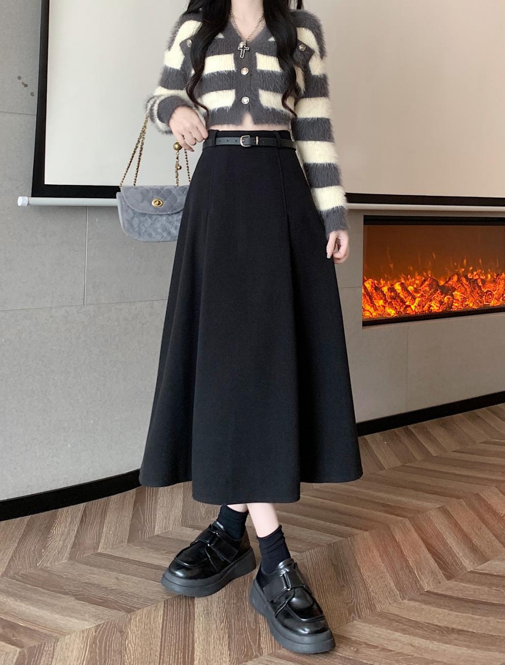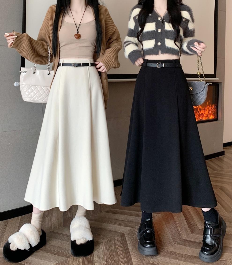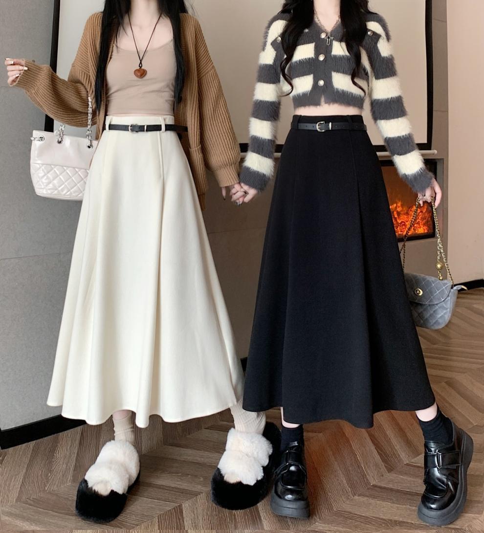 Falda Retro Francesa Hottie de Cintura Alta para Mujer Nueva Falda A-Line de Largo Medio para las Cuatro Estaciones