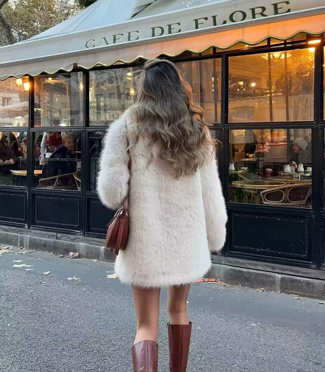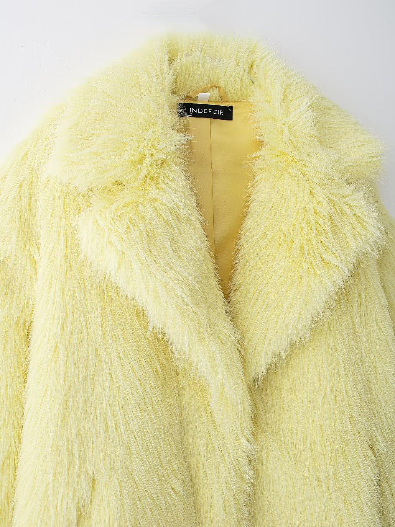 Abrigo cálido con efecto de piel artificial y solapa nueva de otoño e invierno de 2024 para mujer, comercio exterior transfronterizo, venta al por mayor
