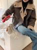 Mezcla de Lana Nueva Lana de Cordero Suave Piel de Ante Piel Integrada Cuello Alto Chaqueta Reversible Precio Original 320