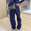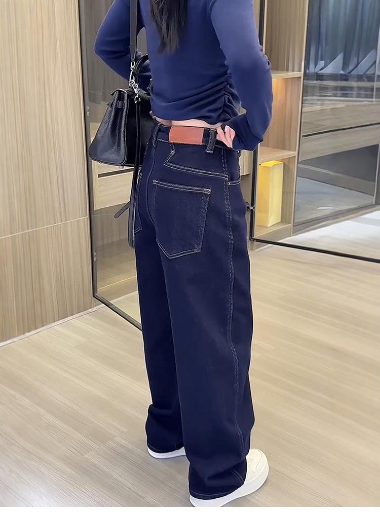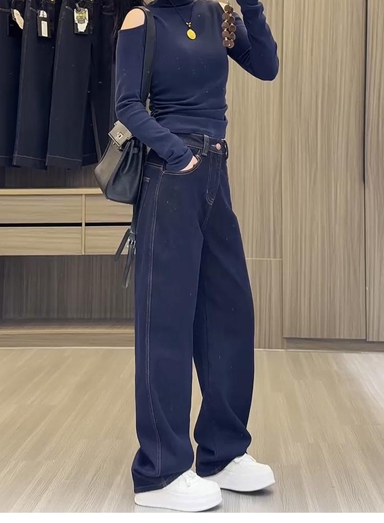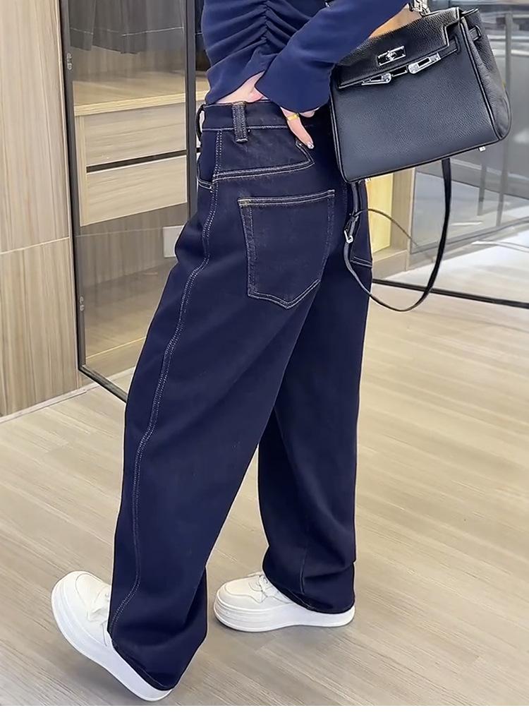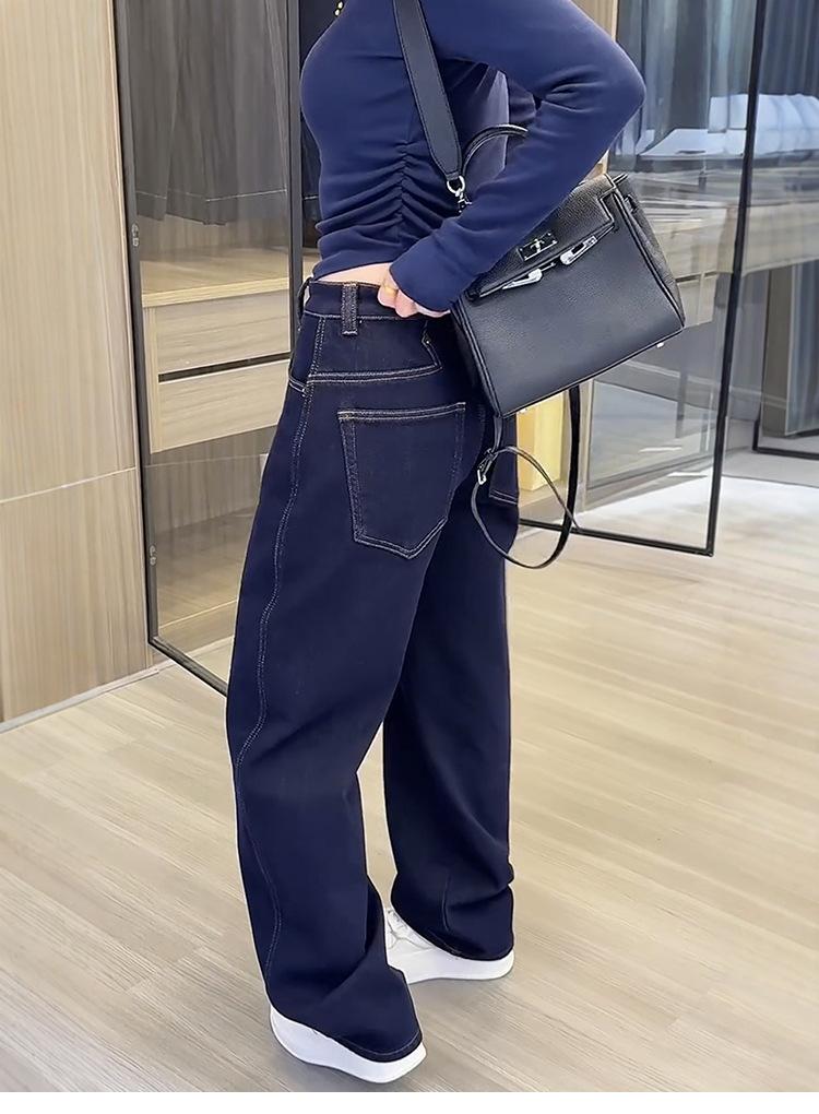 Jeans de pierna ancha de talla grande más terciopelo grueso para mujer otoño e invierno 2024 nuevos mm gorditos delgados holgados trapeadores pantalones rectos