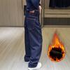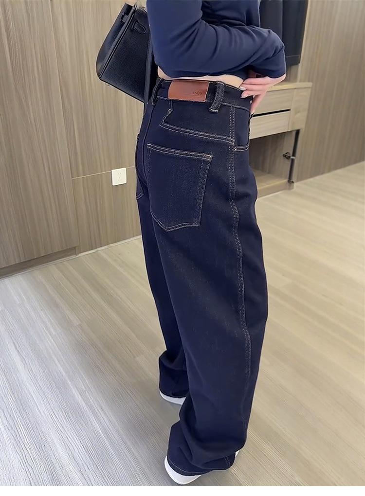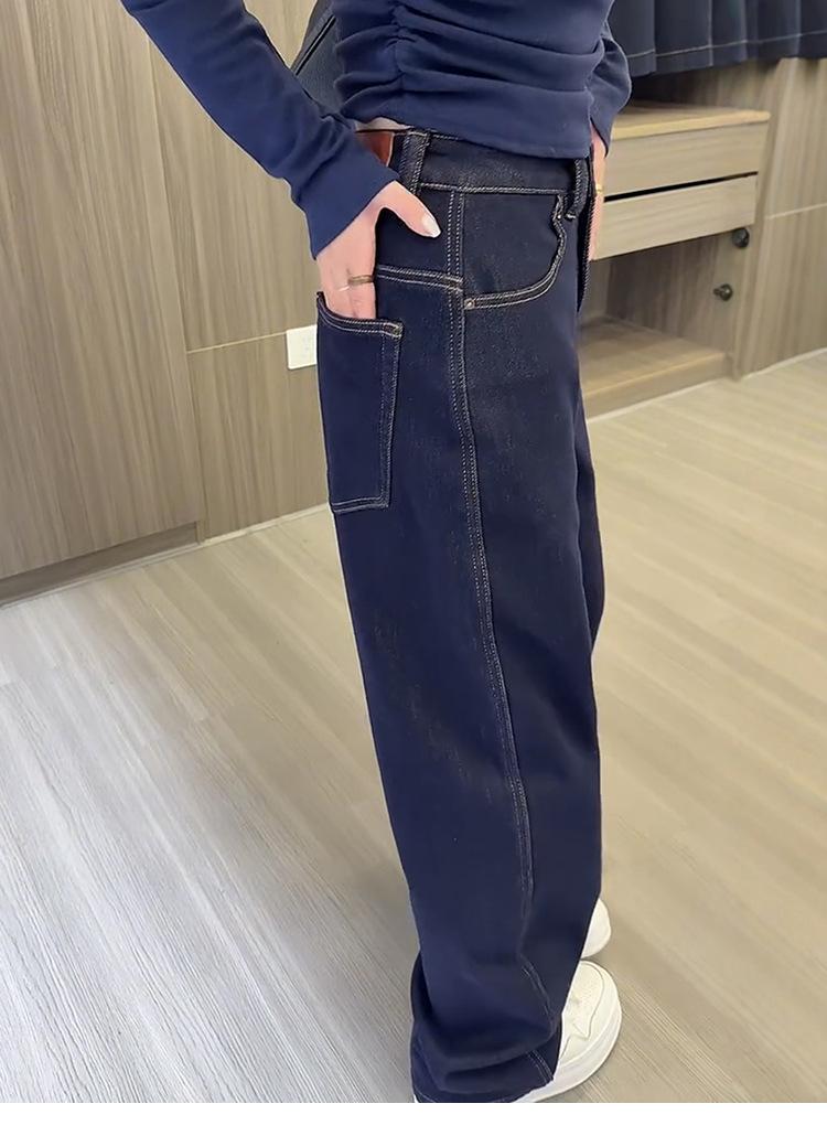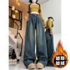 Pantalones vaqueros de pierna ancha gruesos con forro polar de talla grande para mujer, otoño e invierno 2024, nuevos pantalones rectos sueltos y adelgazantes para chica gordita