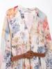 Comercio exterior al por mayor 2024 verano estilo europeo y americano nuevo vestido largo midi con estampado de flores y cinturón para mujer