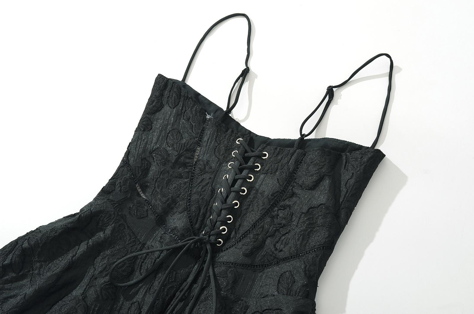 24103-2024 Nuevo vestido de tirantes de jacquard francés para mujer, temperamento puro, falda ajustada con tirantes en la cintura