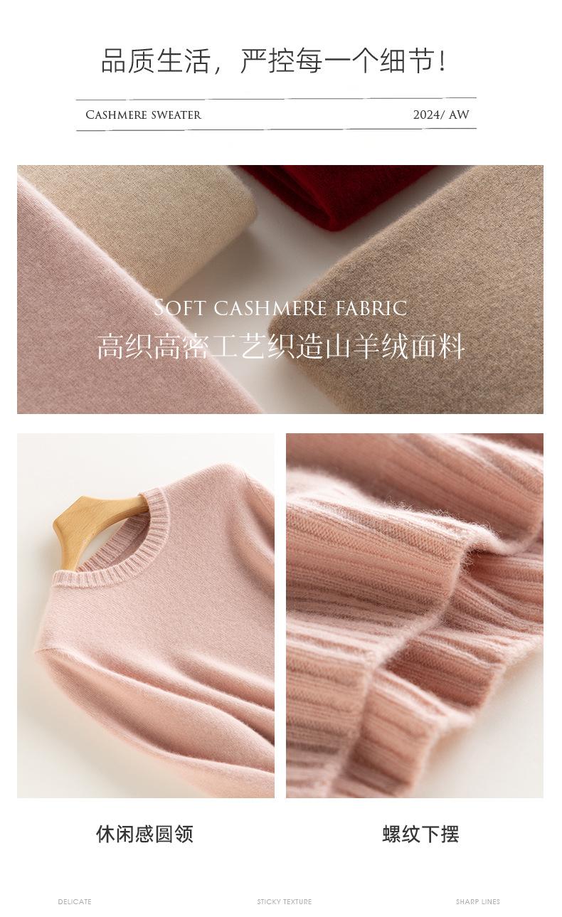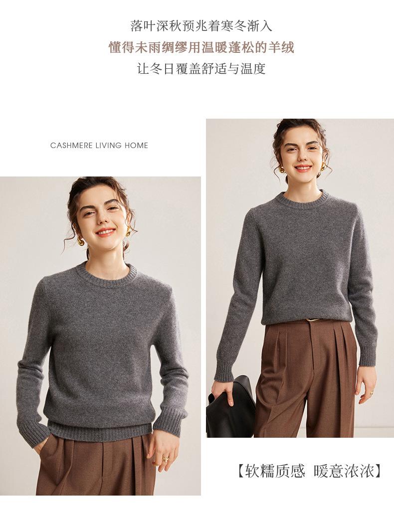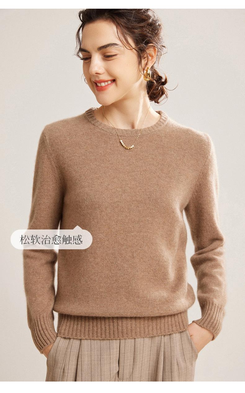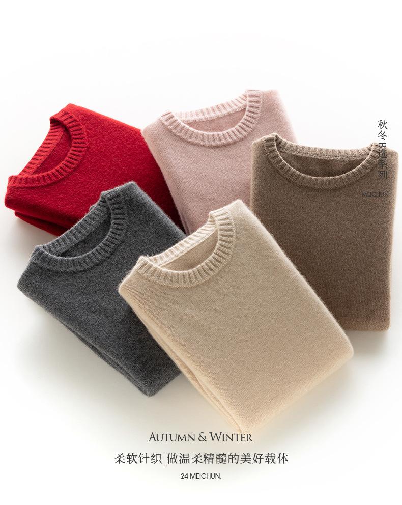 Suéter de cachemira de montaña 100% puro y grueso con cuello redondo y suave y encerado para mujer, suéter holgado de moda para otoño e invierno, camisa de base de punto para mujer