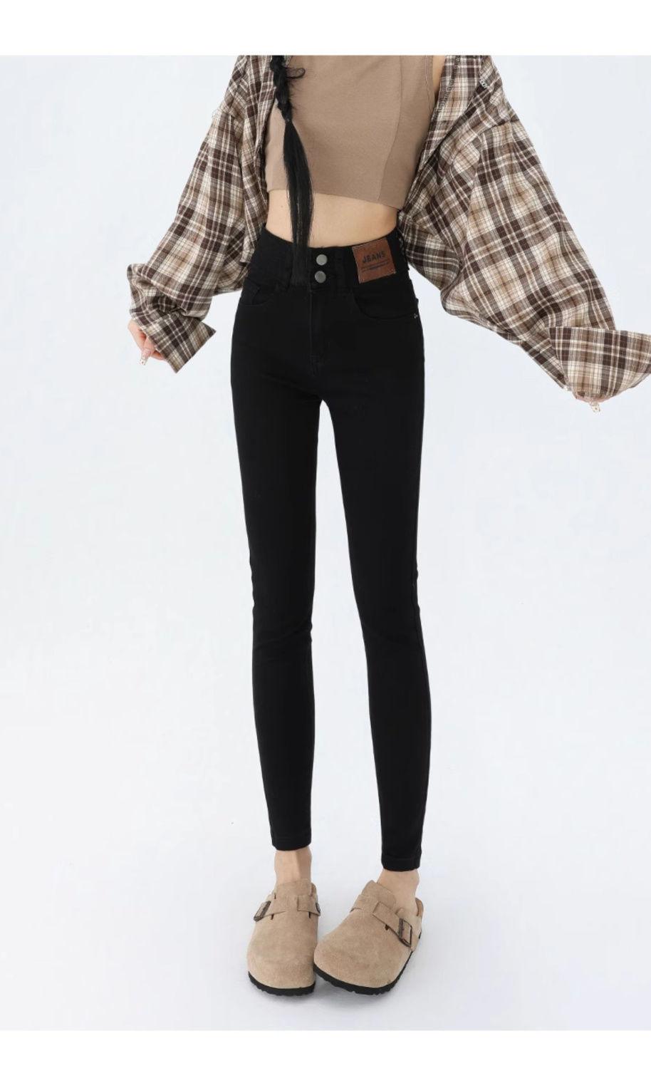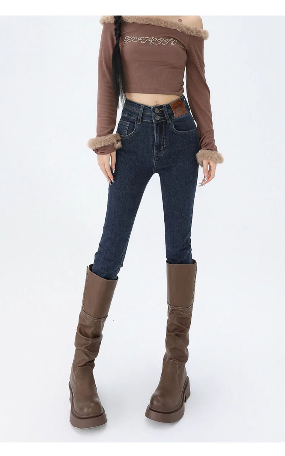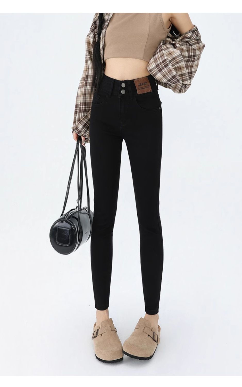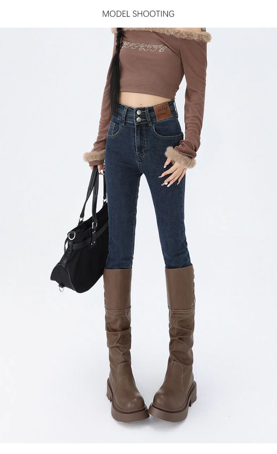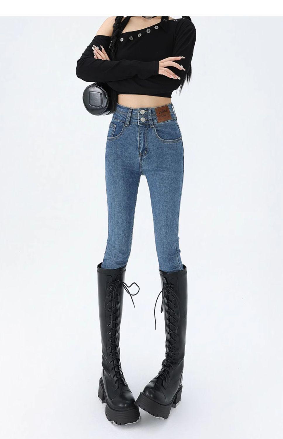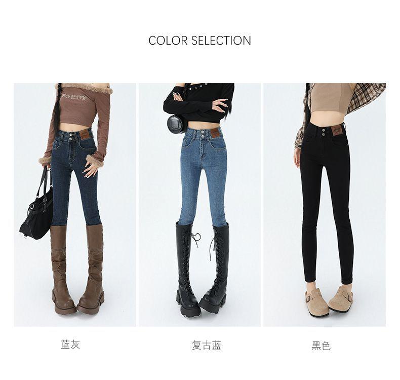 Vaqueros ajustados de cintura alta para mujer, otoño e invierno 2024, nuevos pantalones pitillo elásticos ajustados con forro polar
