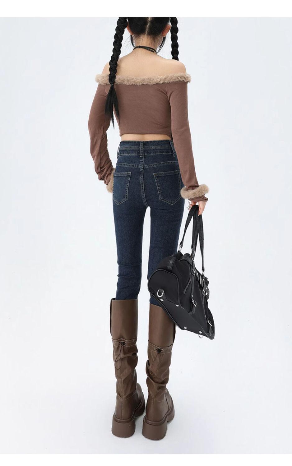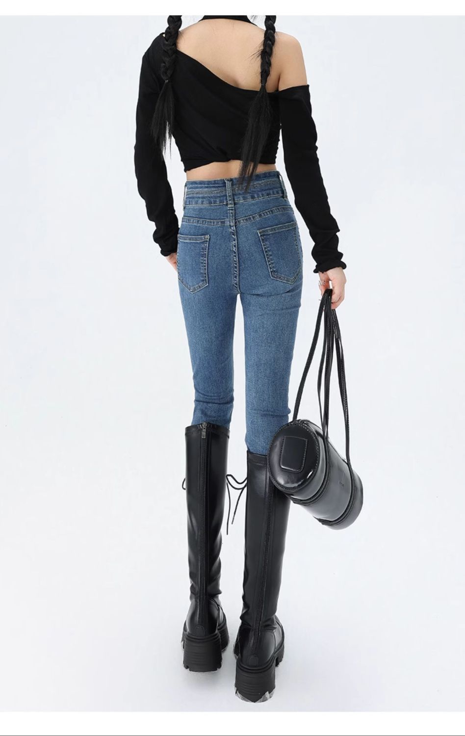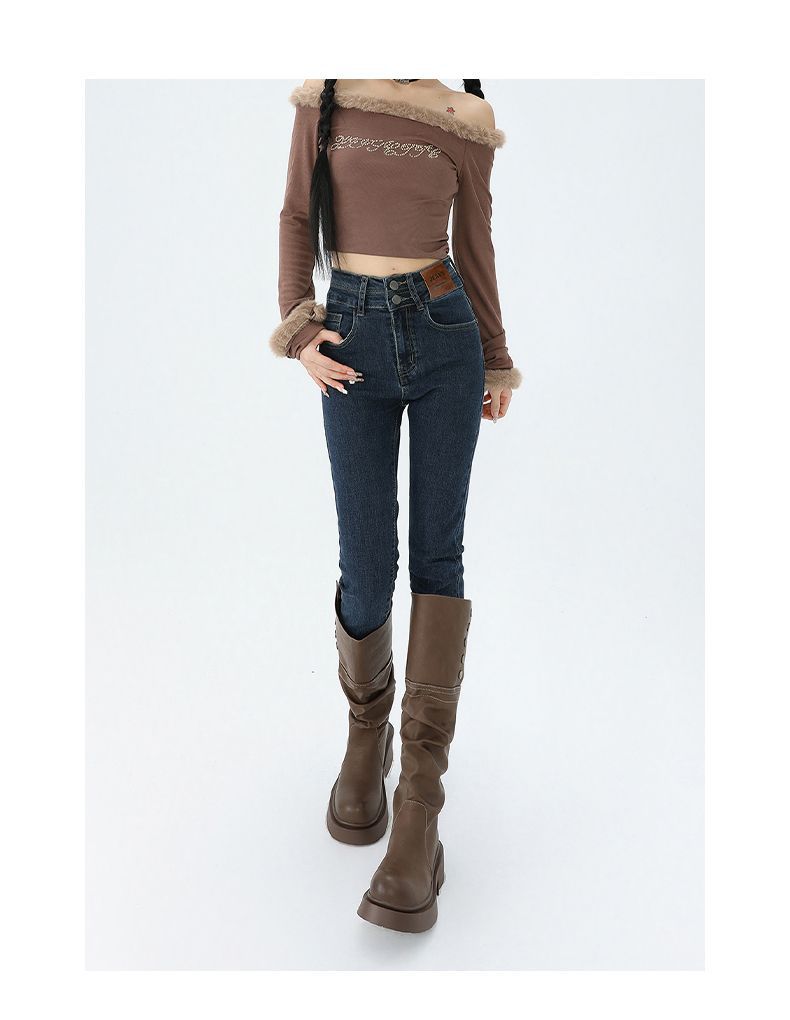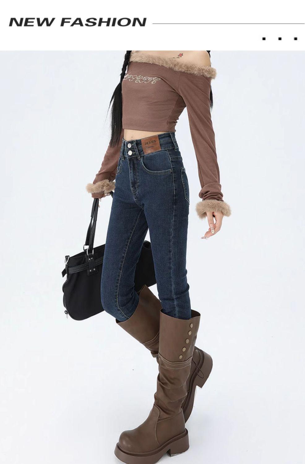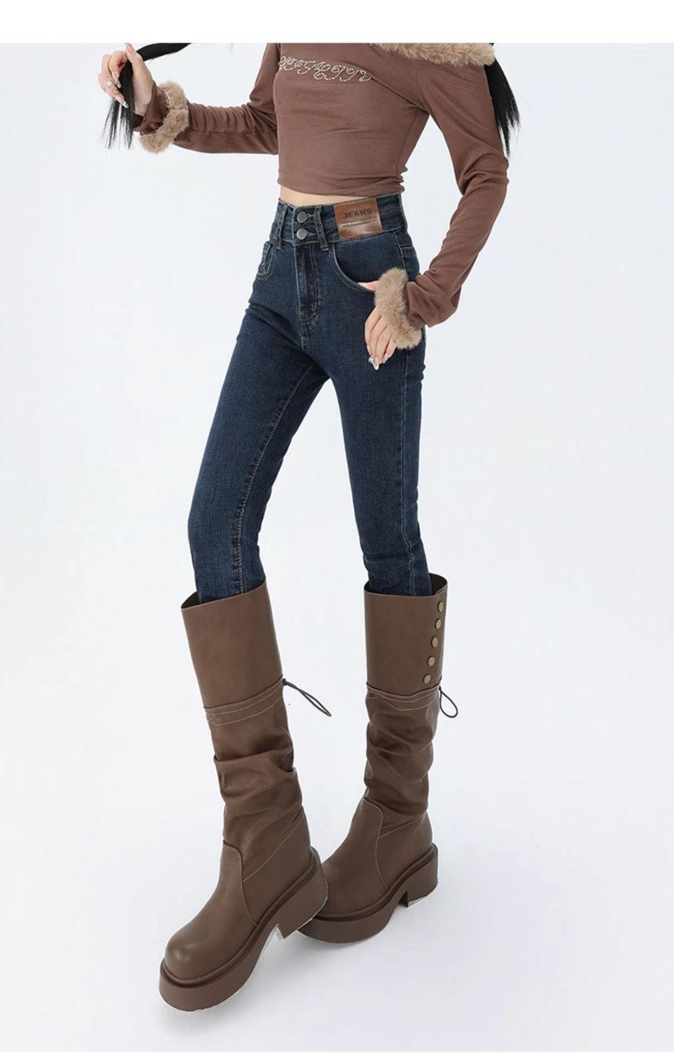Vaqueros ajustados de cintura alta para mujer, otoño e invierno 2024, nuevos pantalones pitillo elásticos ajustados con forro polar