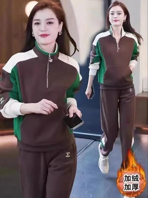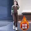 Conjunto deportivo informal de moda para mujer, otoño e invierno 2025, forro polar grueso, estilo occidental, conjunto de dos piezas para mujer
