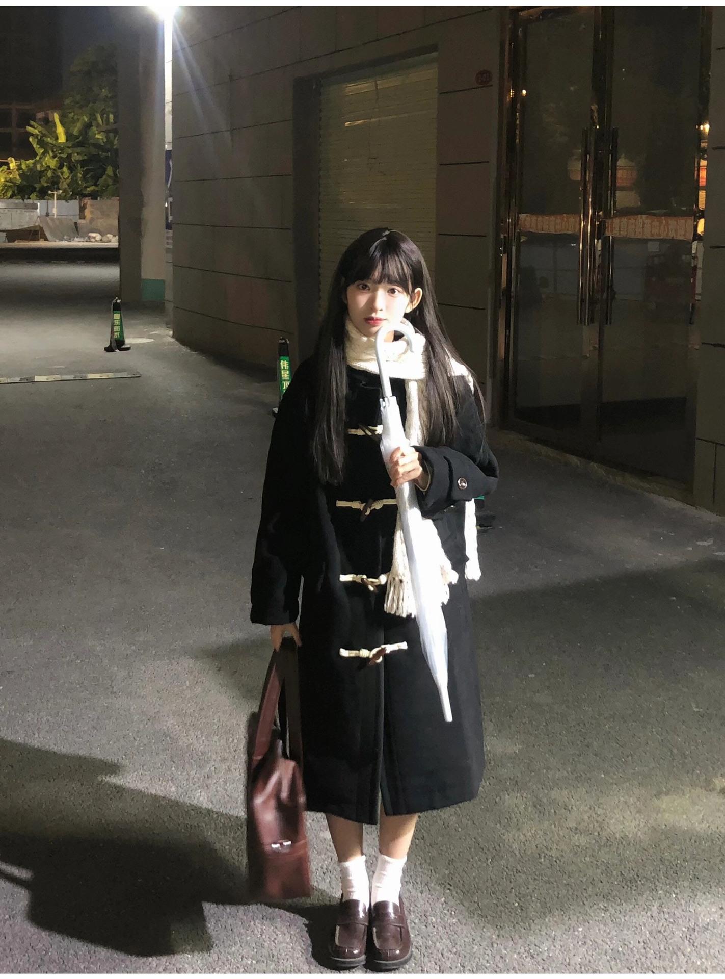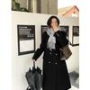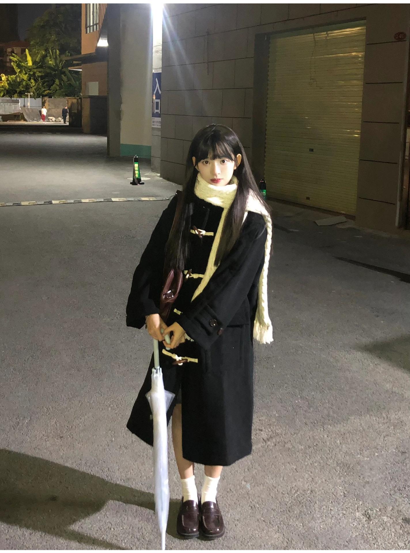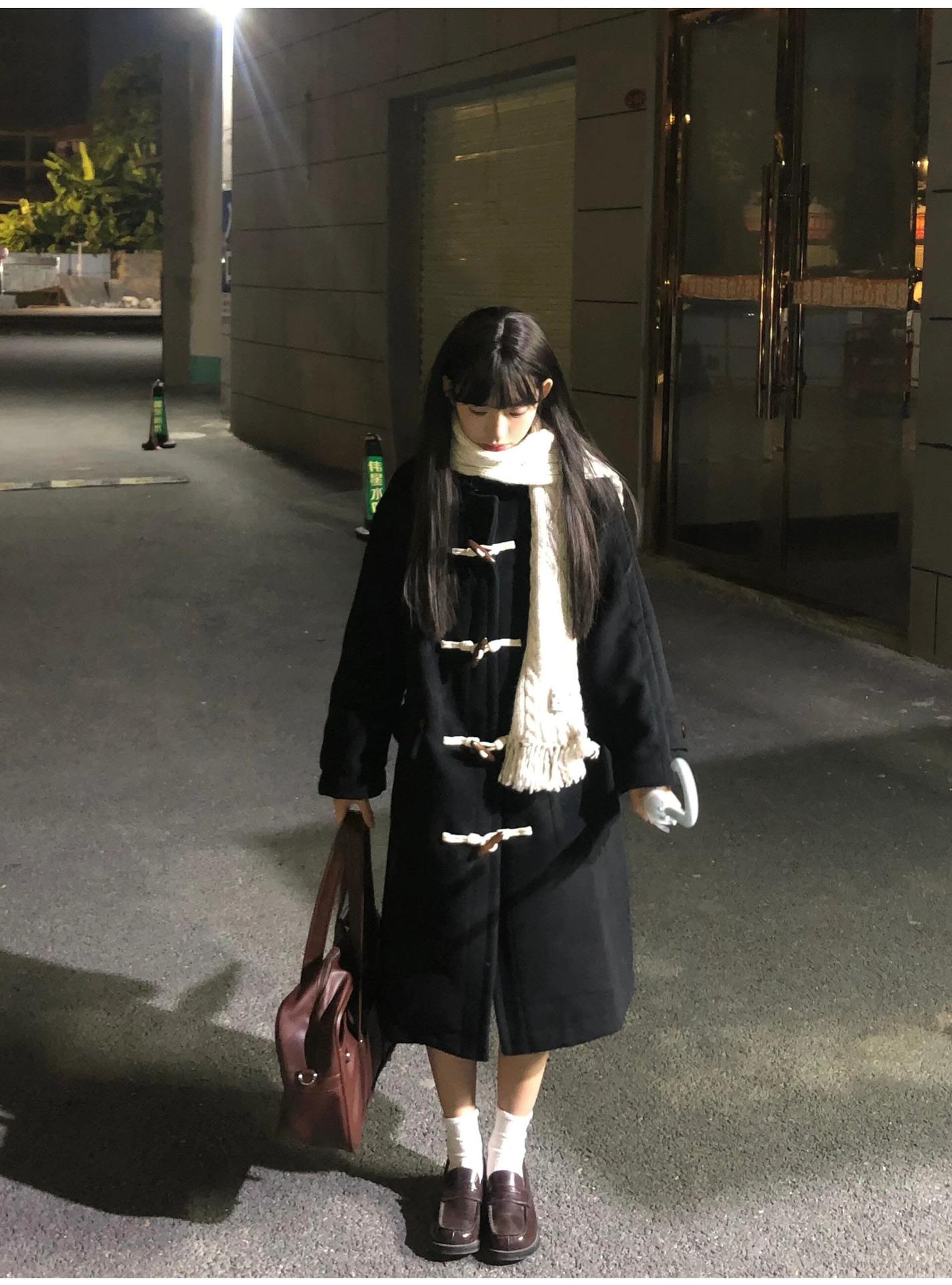 Abrigo de Lana con Botones de Cuerno Negros para Mujer Otoño e Invierno 2025 Nuevo Abrigo de Gama Alta Lana Estilo Pequeño Mediano