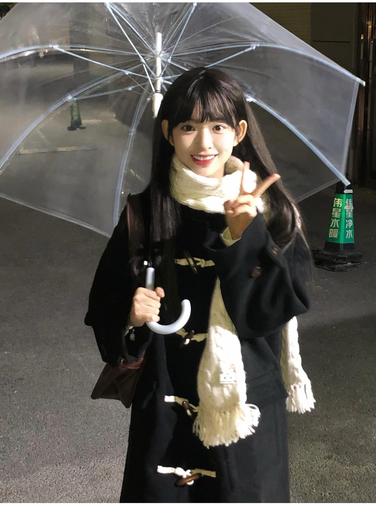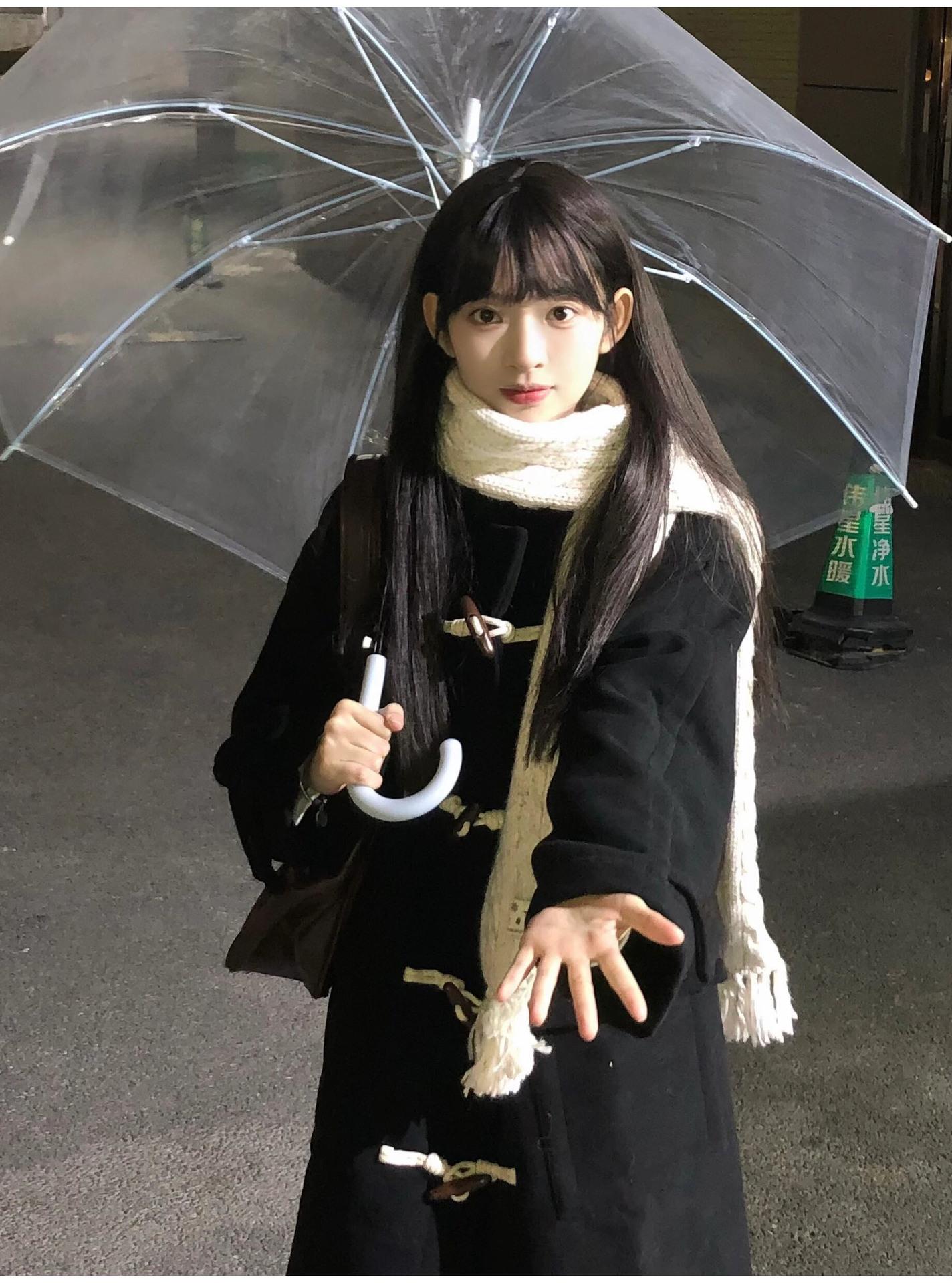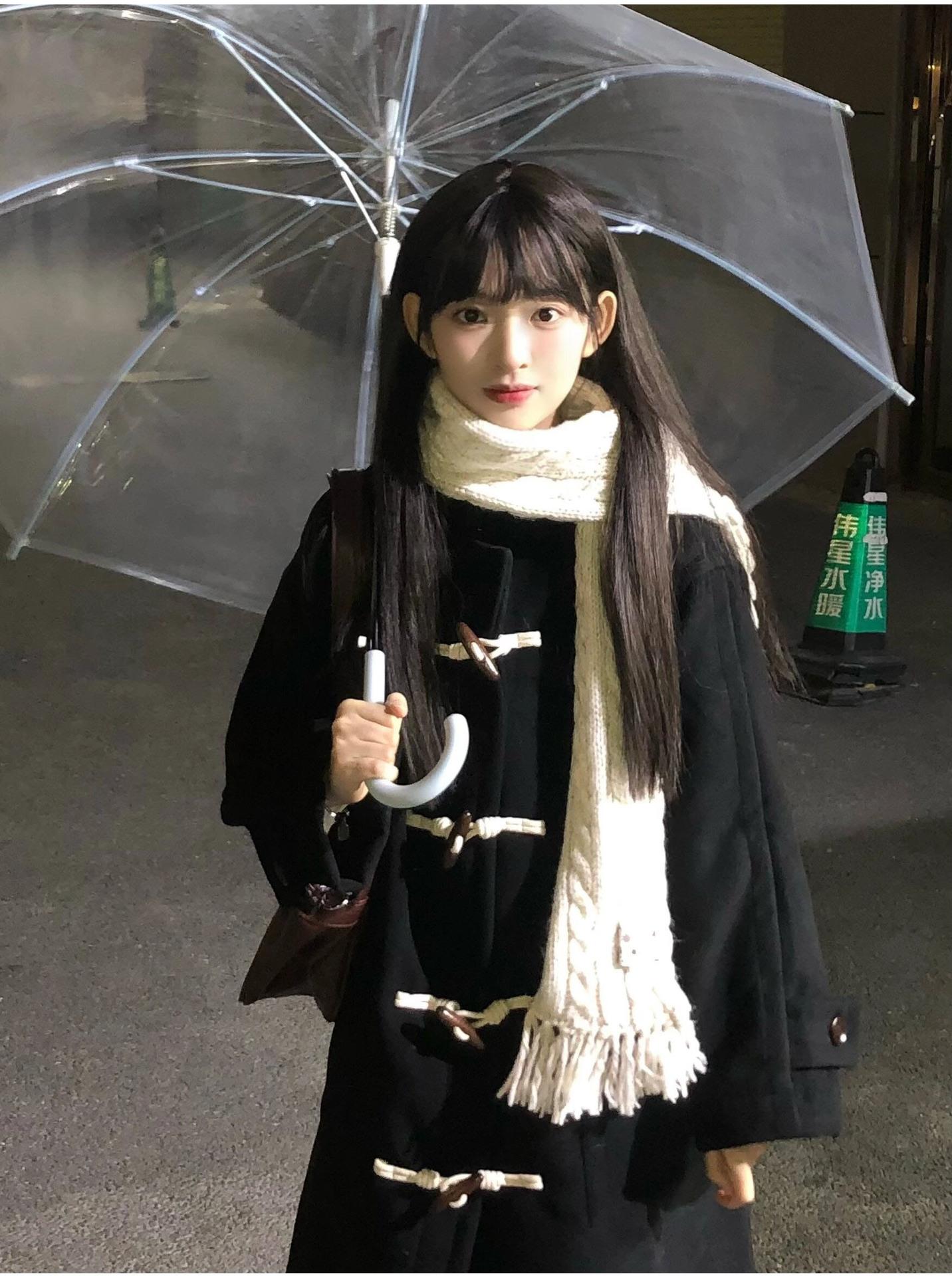 Abrigo de Lana con Botones de Cuerno Negros para Mujer Otoño e Invierno 2025 Nuevo Abrigo de Gama Alta Lana Estilo Pequeño Mediano
