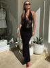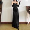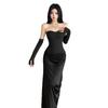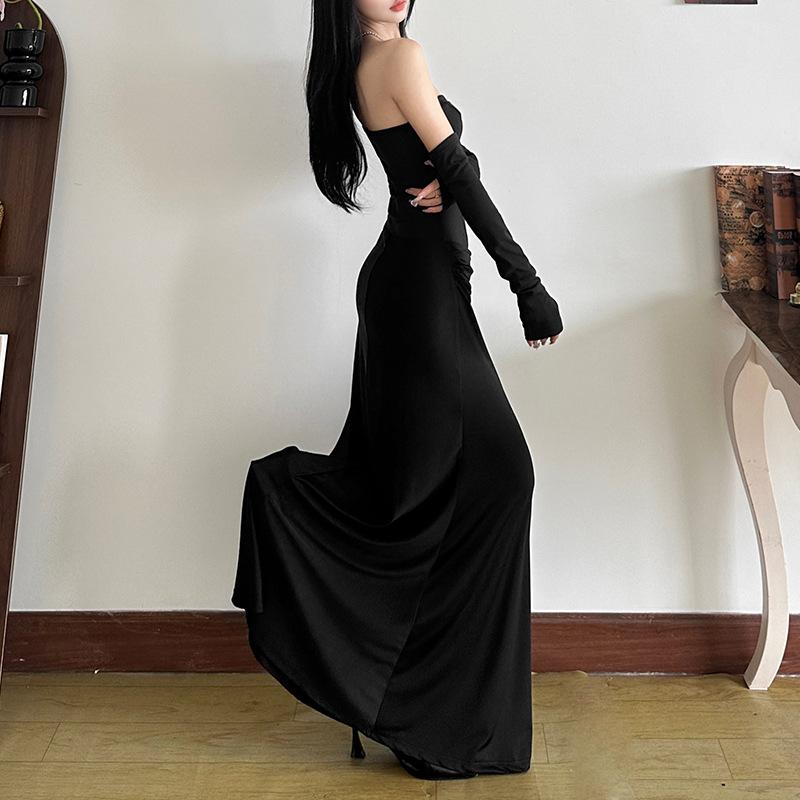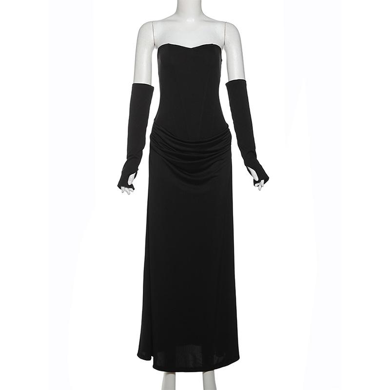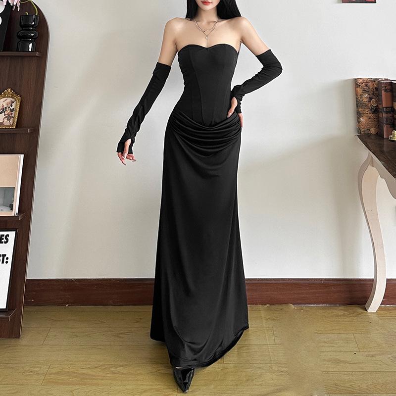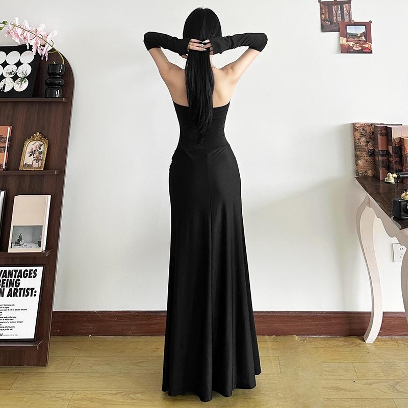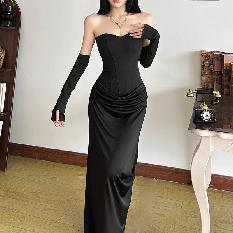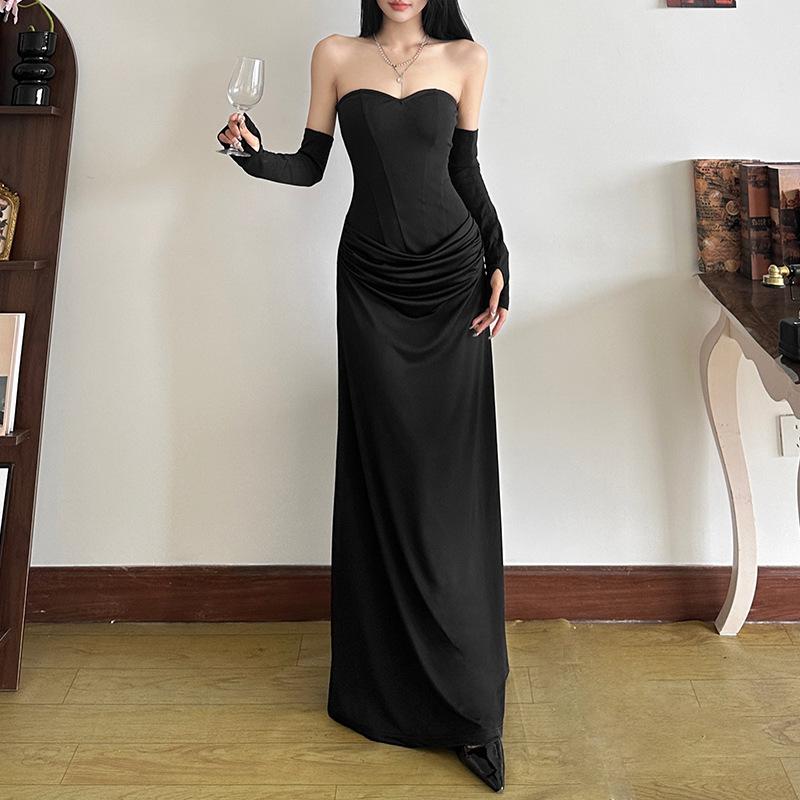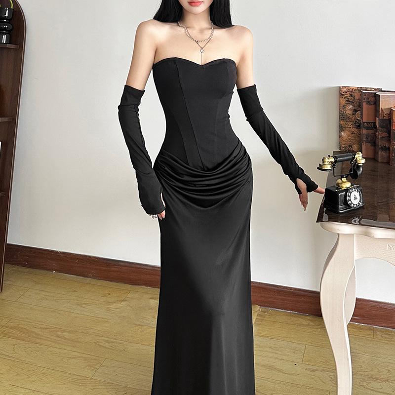 Vestido de estilo europeo y americano de invierno 2024, nuevo, sexy, ajustado, con escote en el pecho y espalda descubierta, de moda, con temperamento plisado, de color sólido