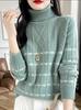 Suéter nuevo de otoño e invierno 2024 para mujer, jersey de manga larga gruesa con solapa y cuello alto, diseño holgado con combinación de colores, camisa base