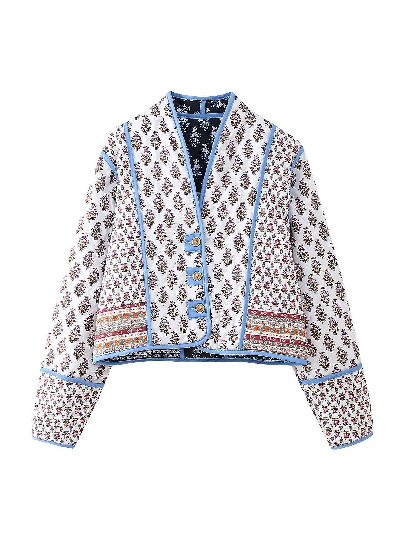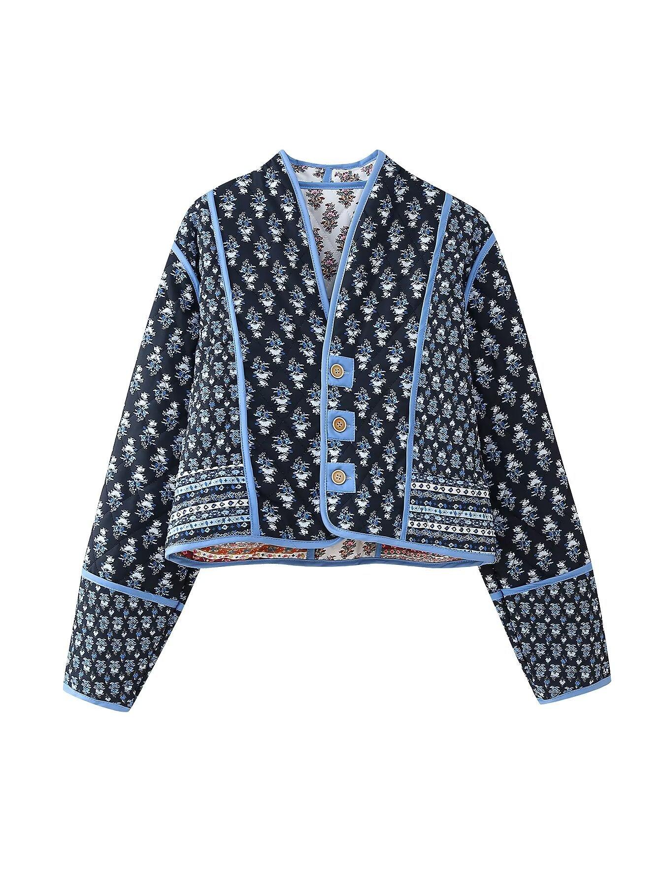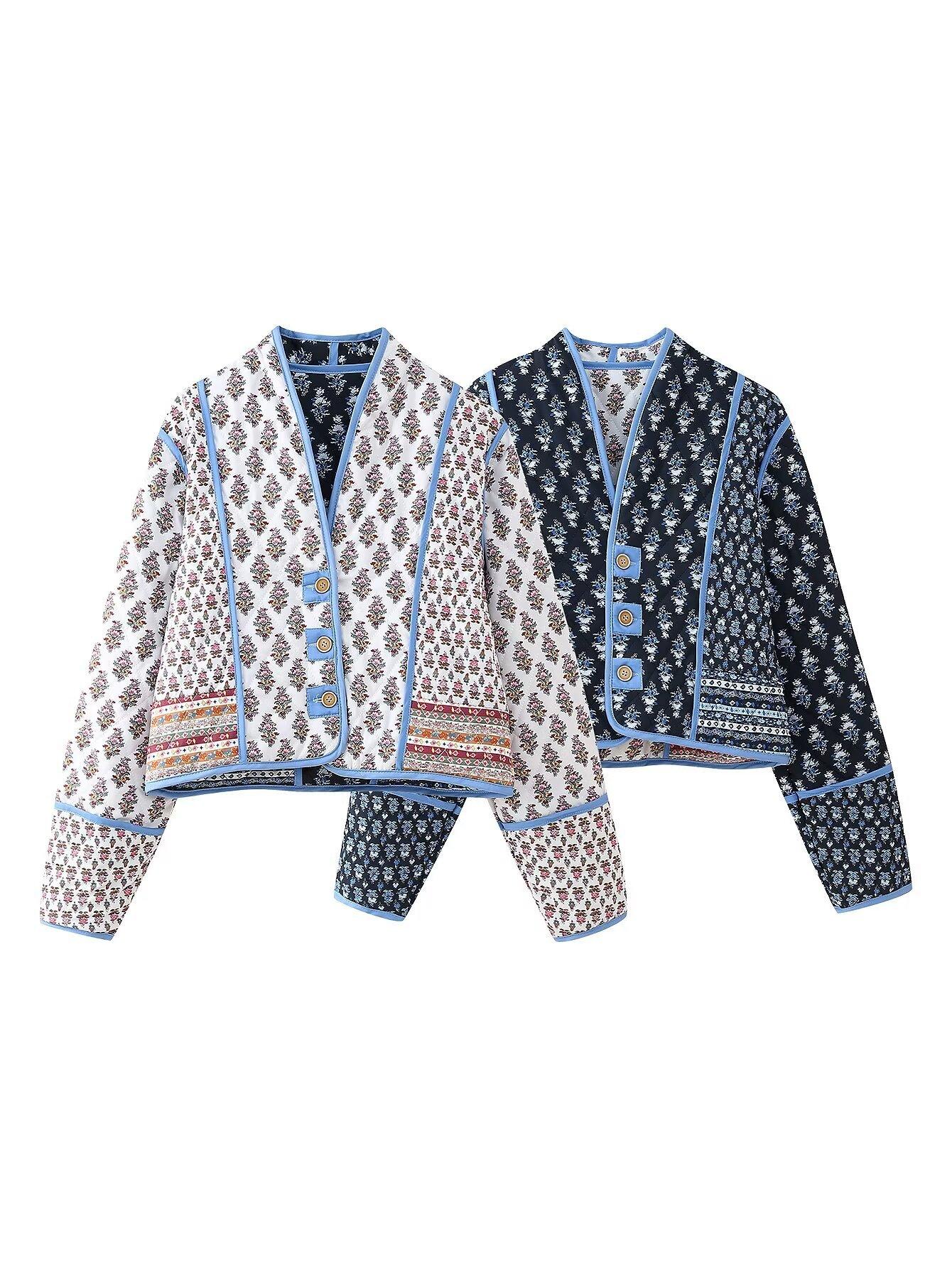 Venta al por mayor de fábrica en Europa y Estados Unidos, otoño e invierno 2024, nueva impresión informal, contraste de dos caras, ropa de algodón acolchado de manga larga para mujer