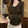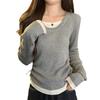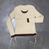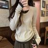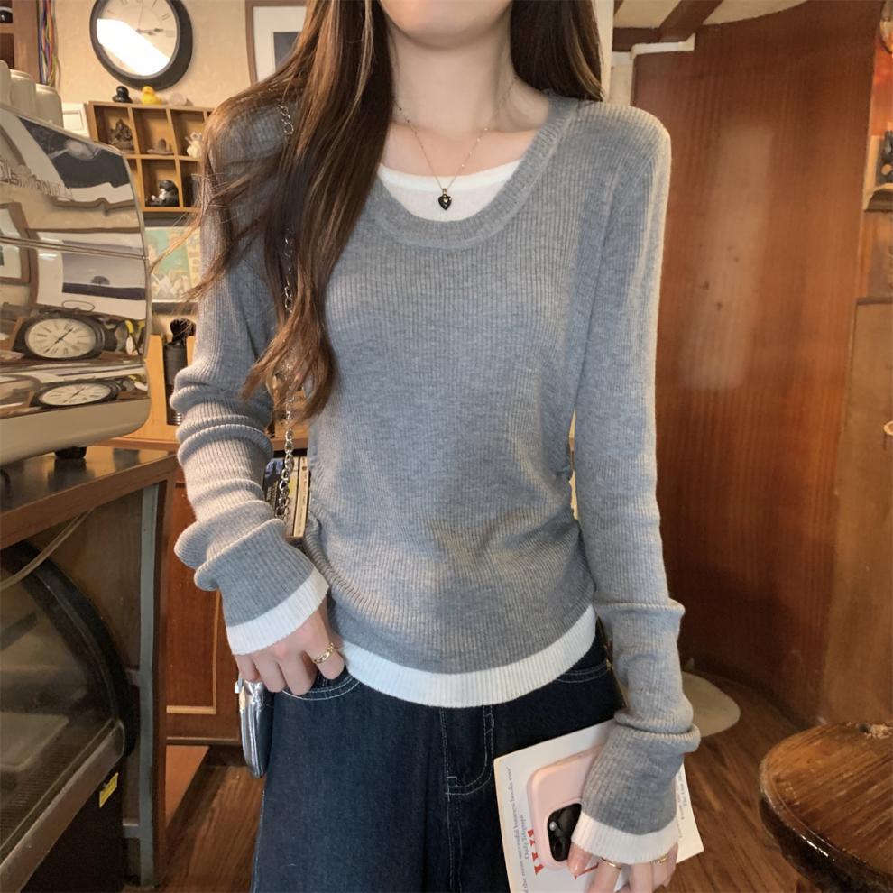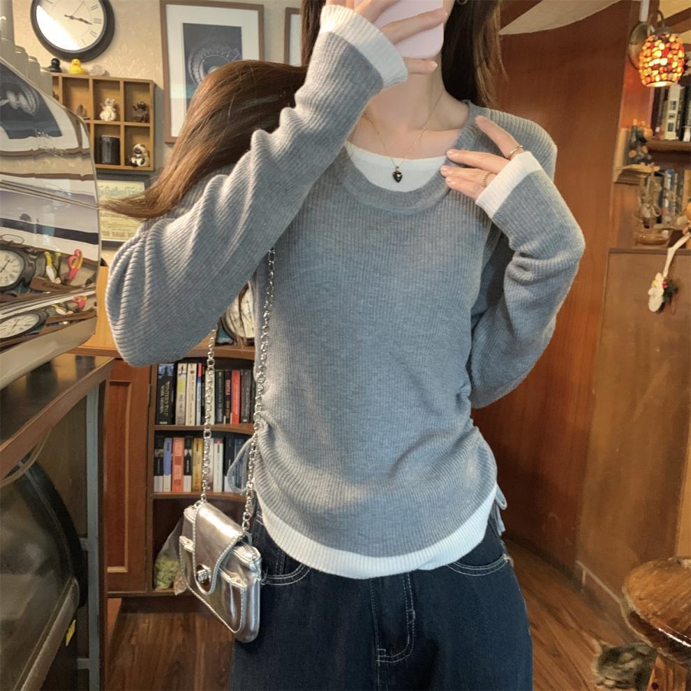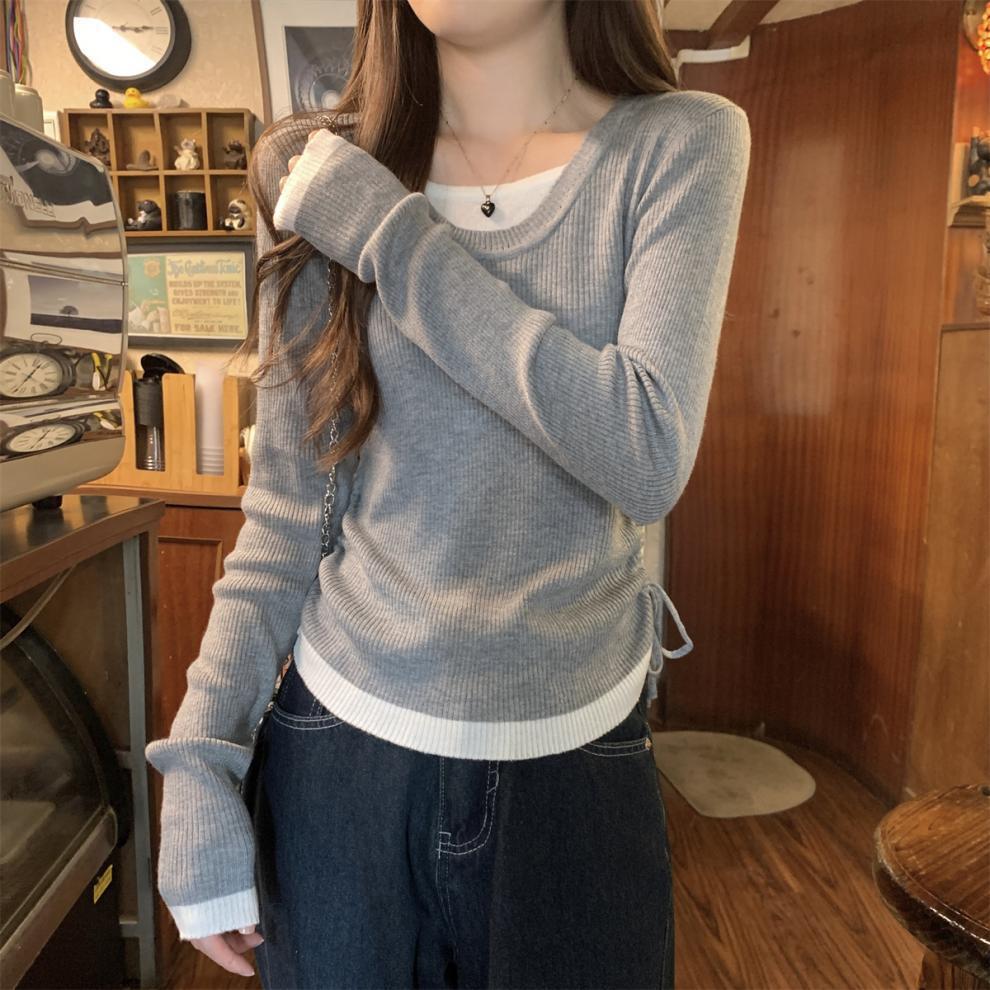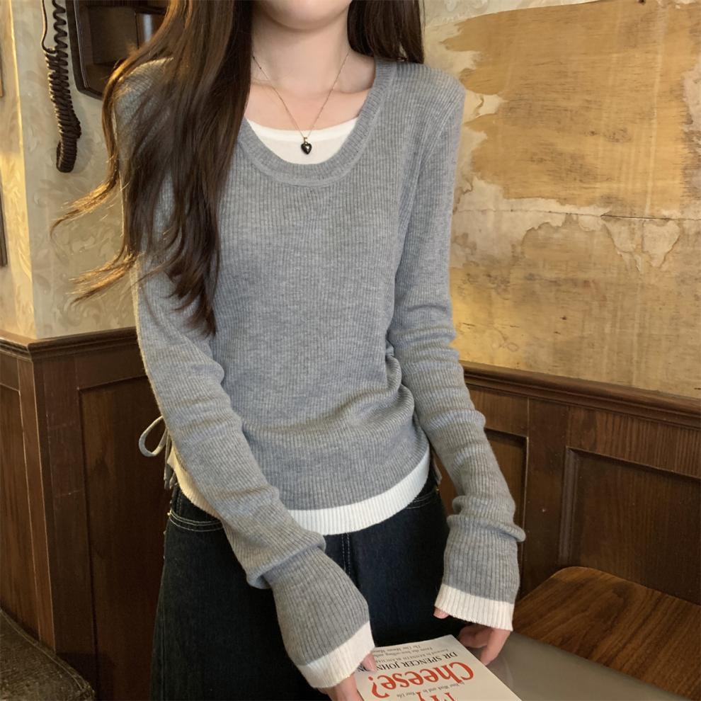 Otoño e invierno 2025 estilo coreano temperamento color contraste cuello U cordón falso dos piezas punto fondo manga larga top