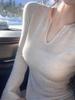 Compra [Ligeramente Translúcida] Camiseta Básica de Punto de Manga Campana con Cuello en V Suave y Ceroso para Mujer, Top de Punto Ajustado al por mayor en Joom.pro