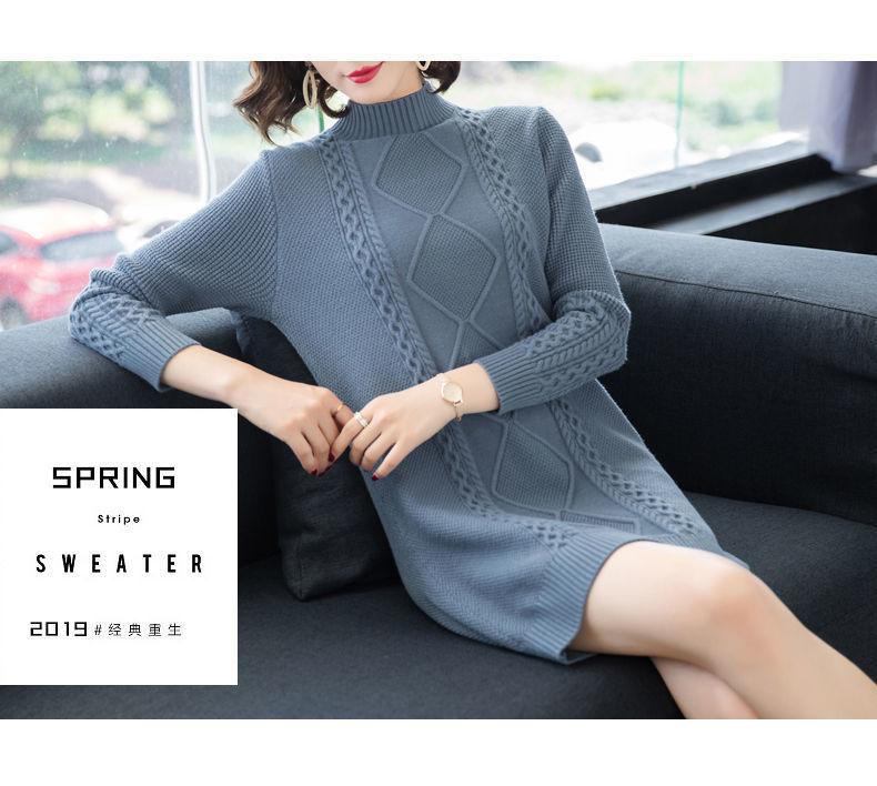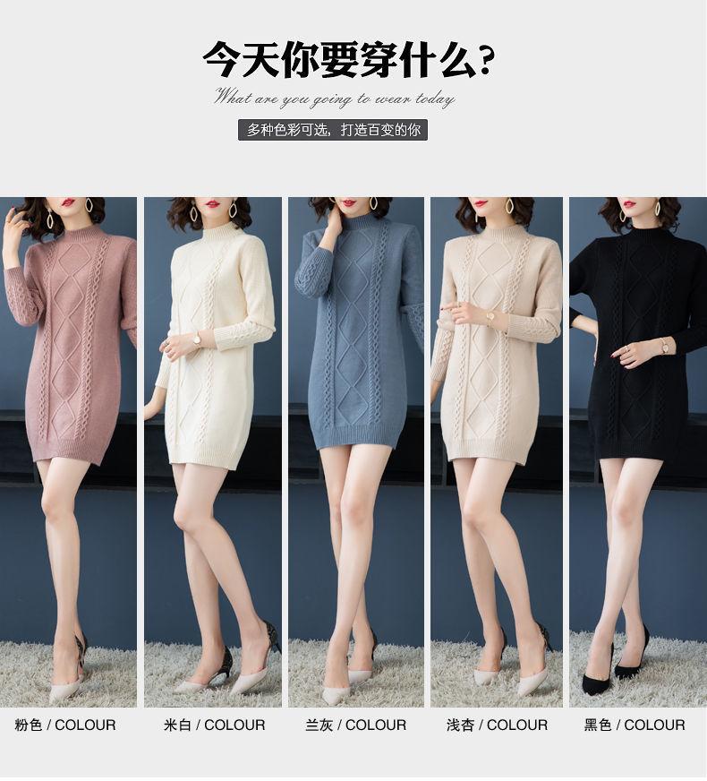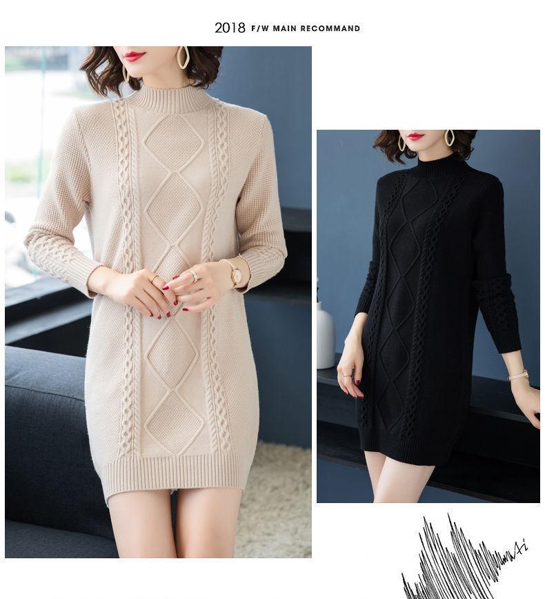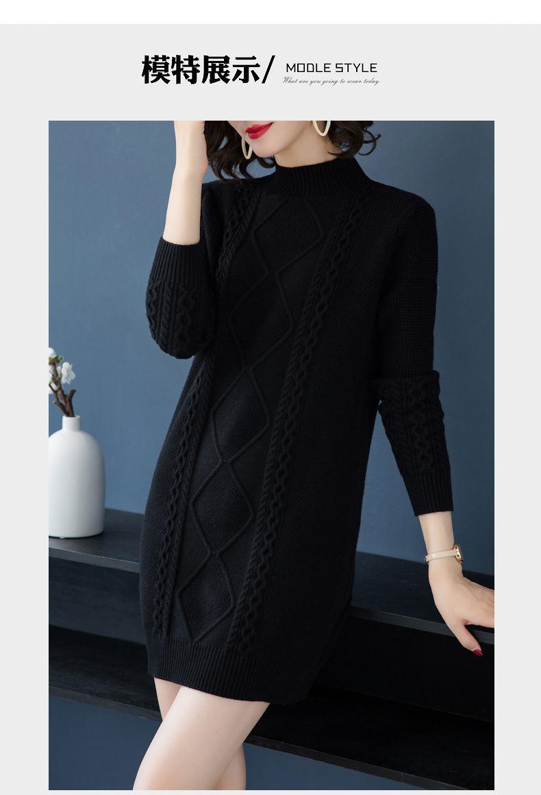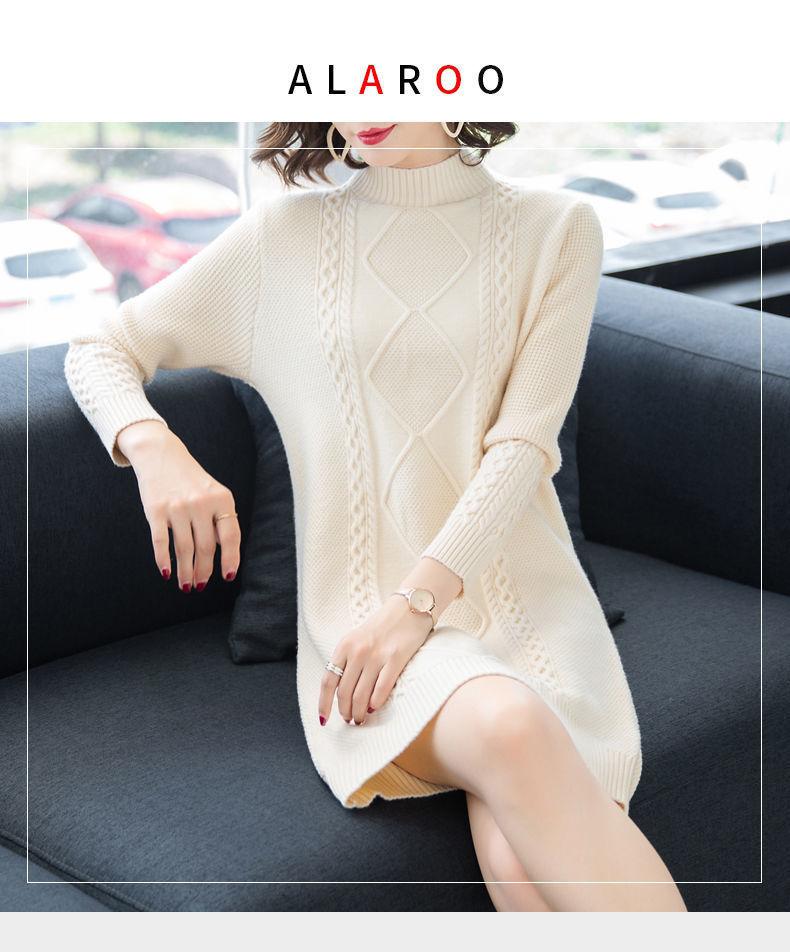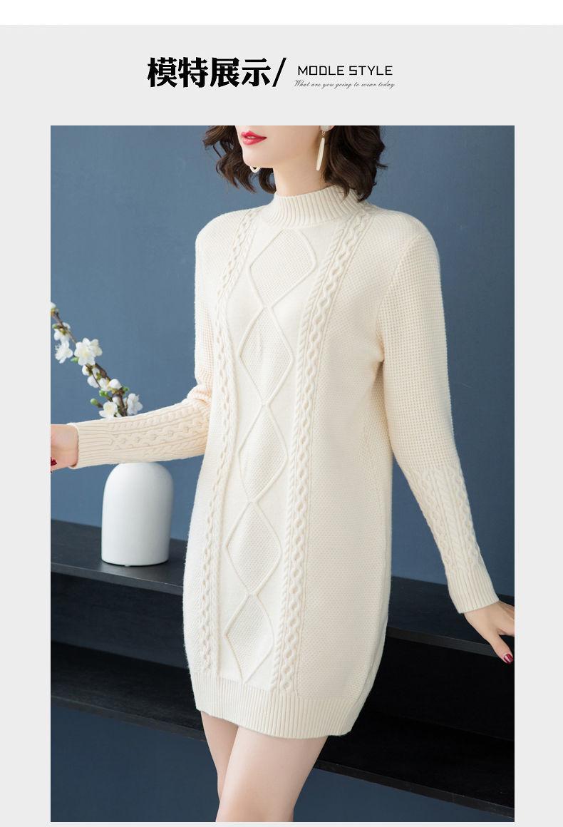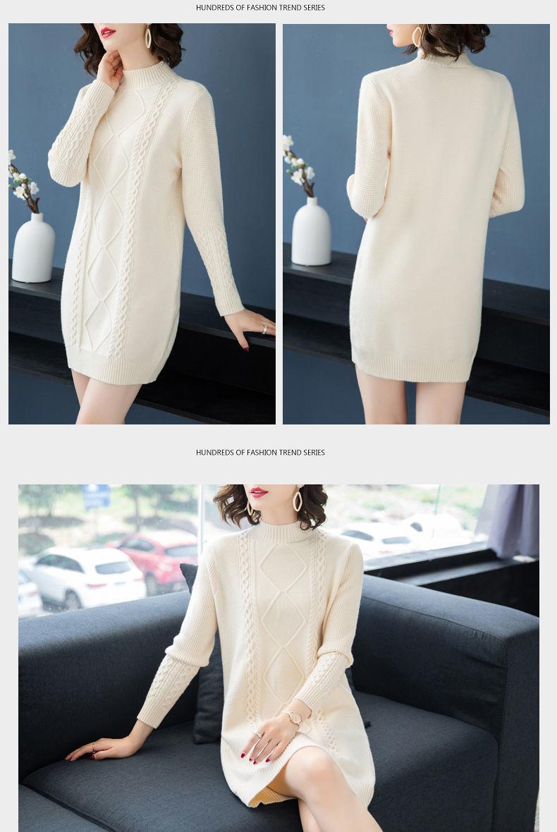 Suéter Blanco de Otoño e Invierno para Mujer Nuevo Estilo Coreano Holgado de Cuello Medio Alto Tejido Camiseta Base Suéter Grueso de Largo Medio Estilo Coreano
