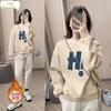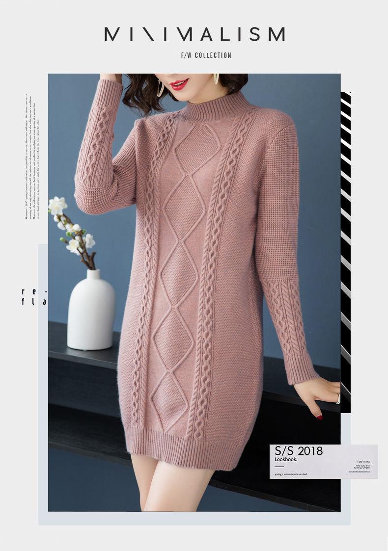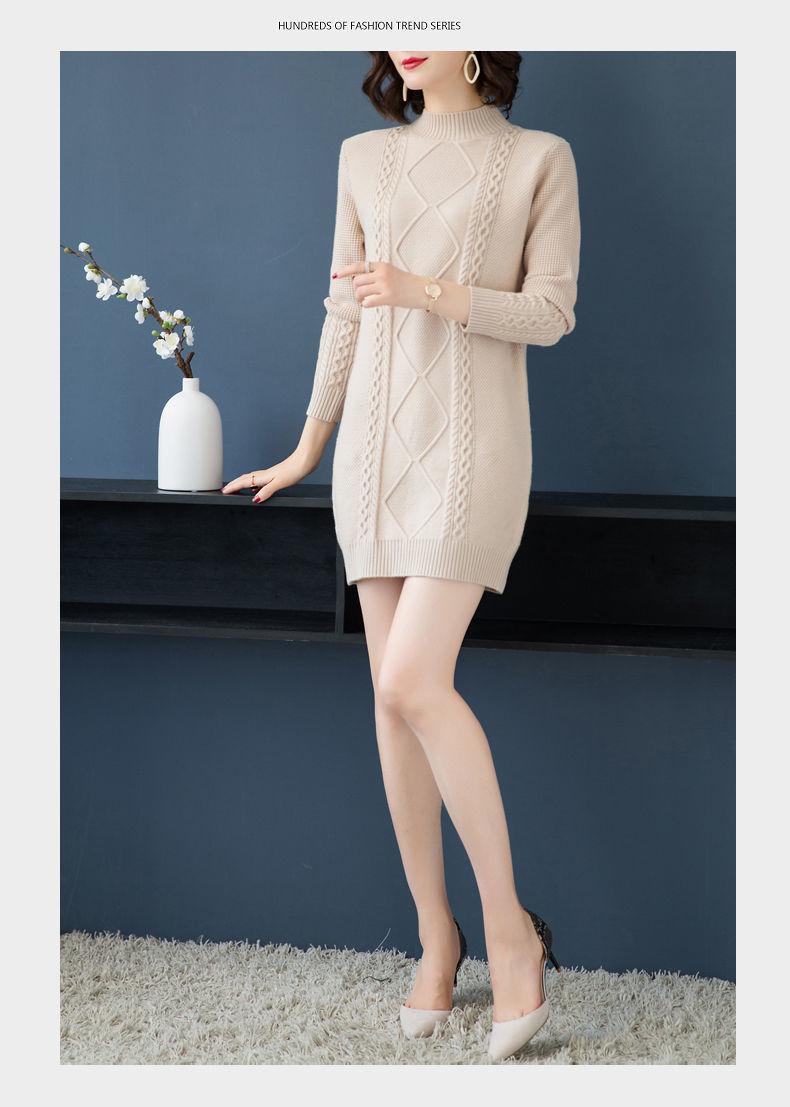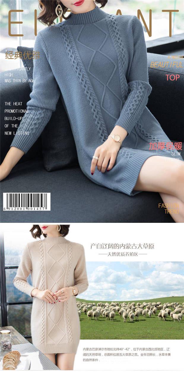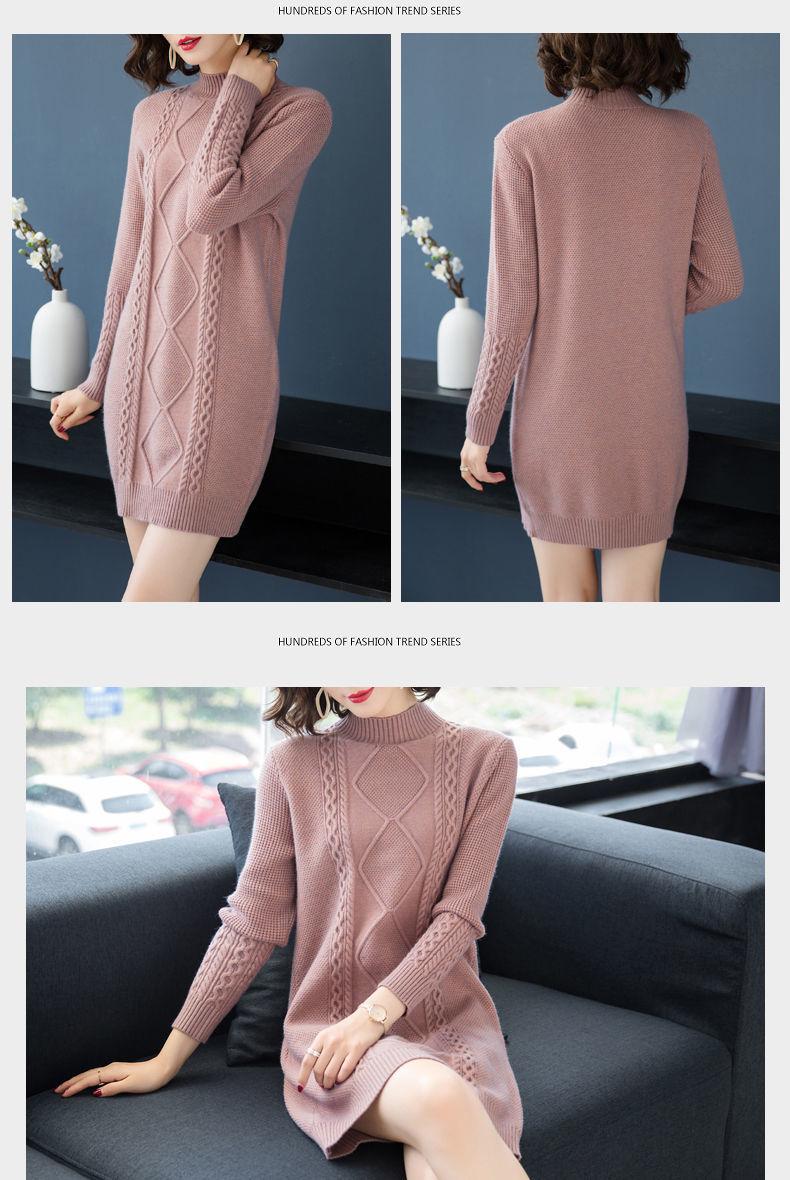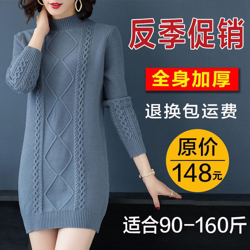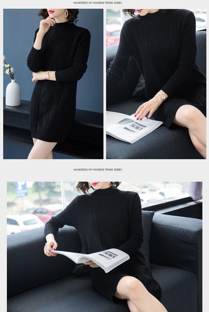 Suéter Blanco de Otoño e Invierno para Mujer Nuevo Estilo Coreano Holgado de Cuello Medio Alto Tejido Camiseta Base Suéter Grueso de Largo Medio Estilo Coreano