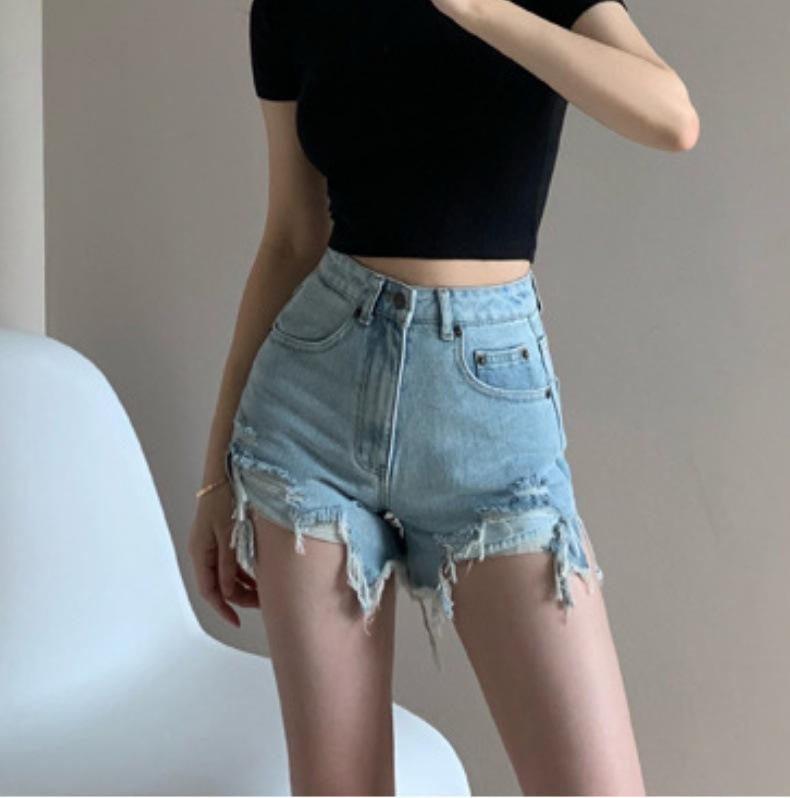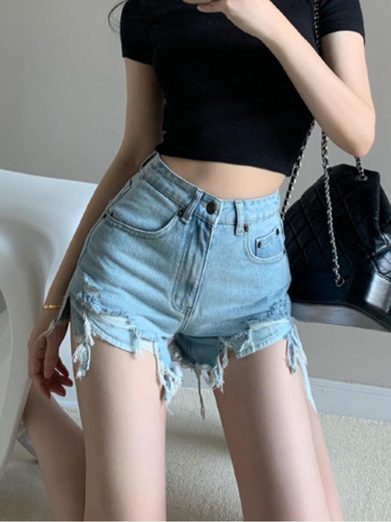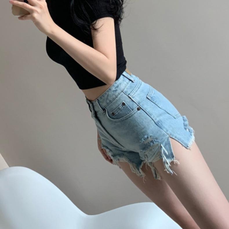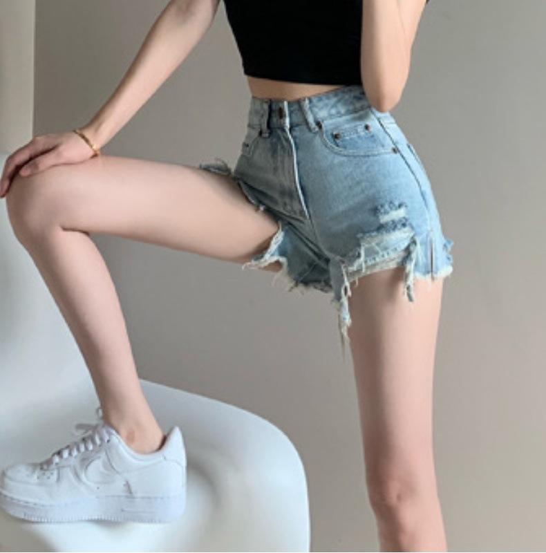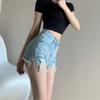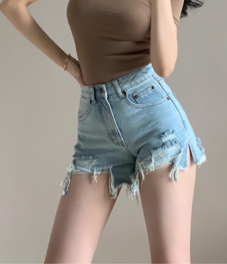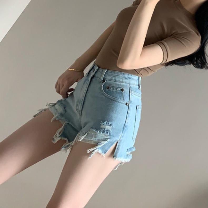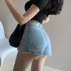 Pantalones cortos vaqueros rasgados y de cintura alta para mujer, de verano, holgados, con pierna ancha y corte en A.
