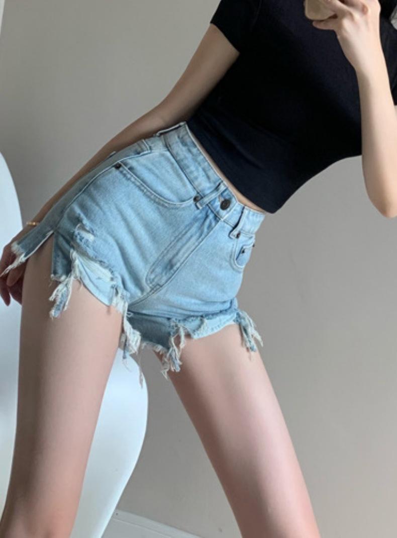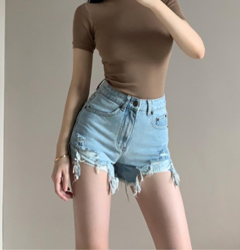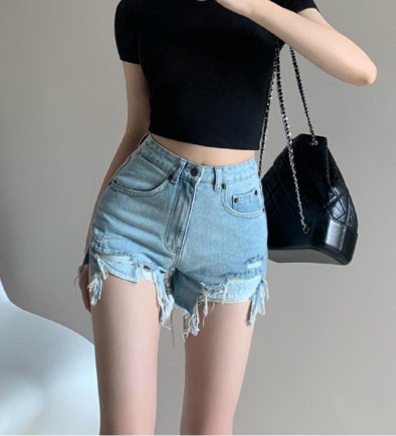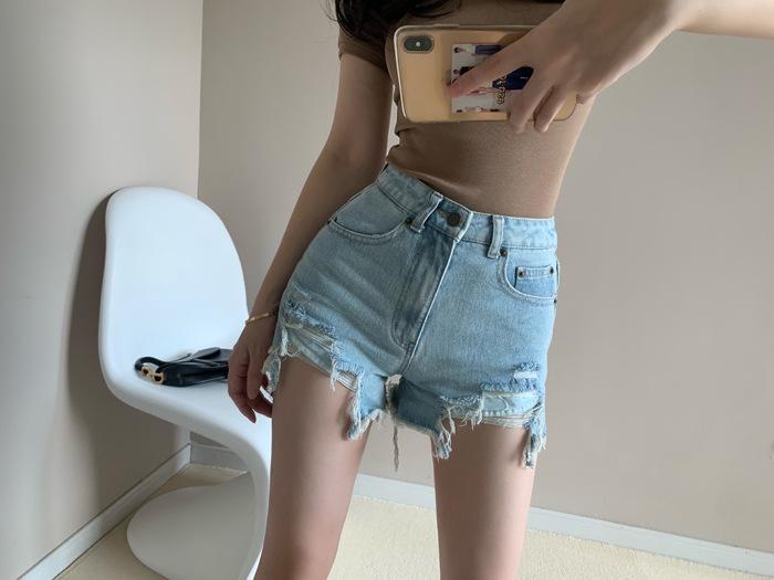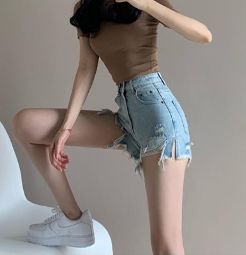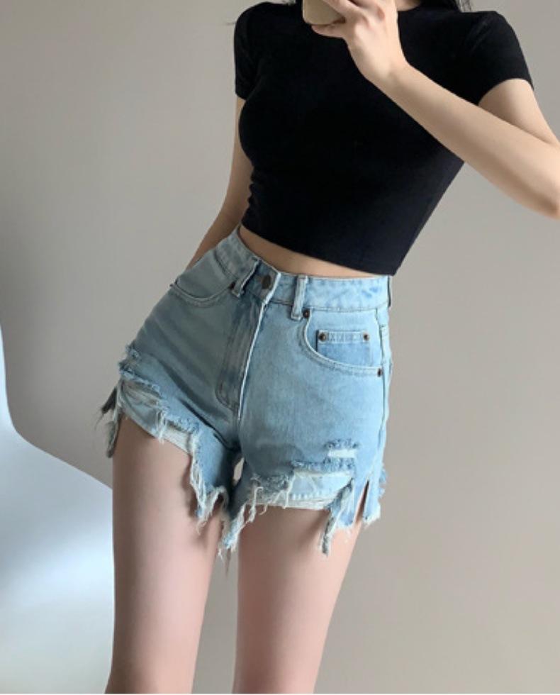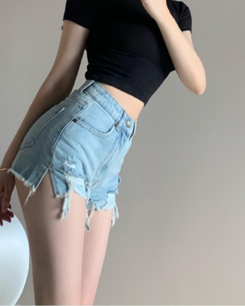 Pantalones cortos vaqueros rasgados y de cintura alta para mujer, de verano, holgados, con pierna ancha y corte en A.