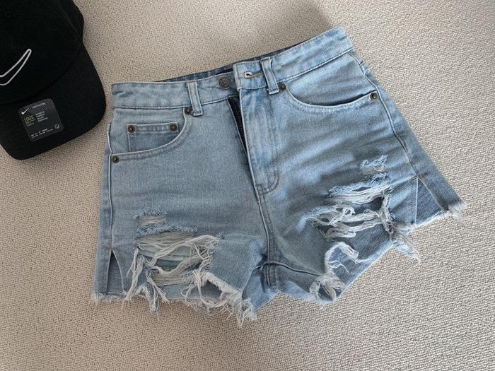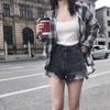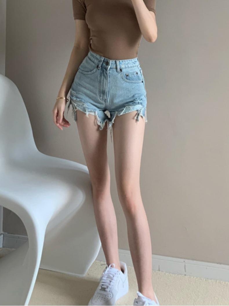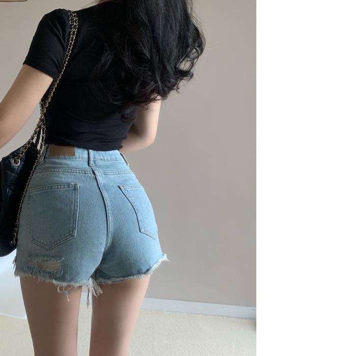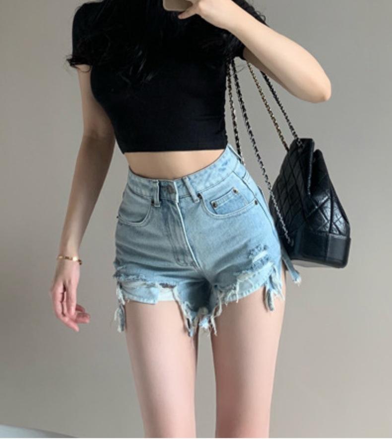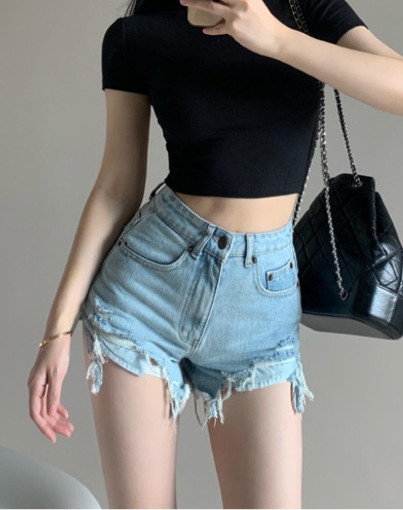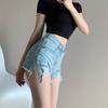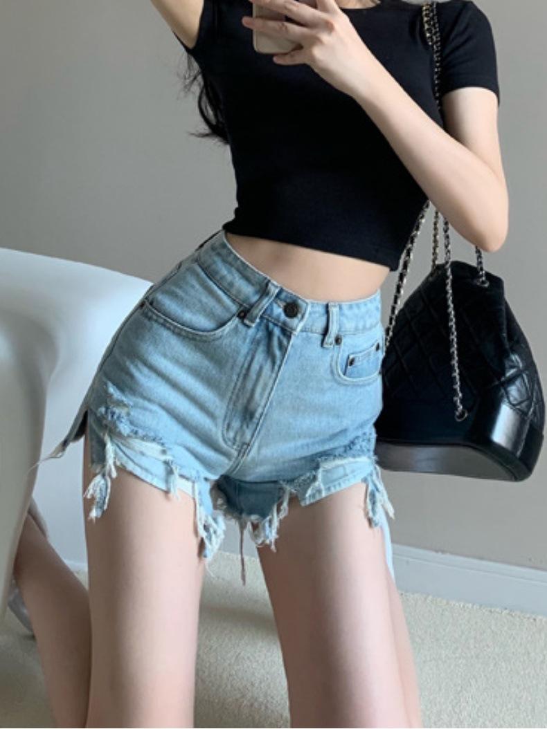 Pantalones cortos vaqueros rasgados y de cintura alta para mujer, de verano, holgados, con pierna ancha y corte en A.