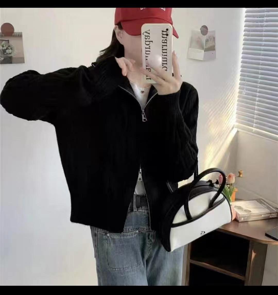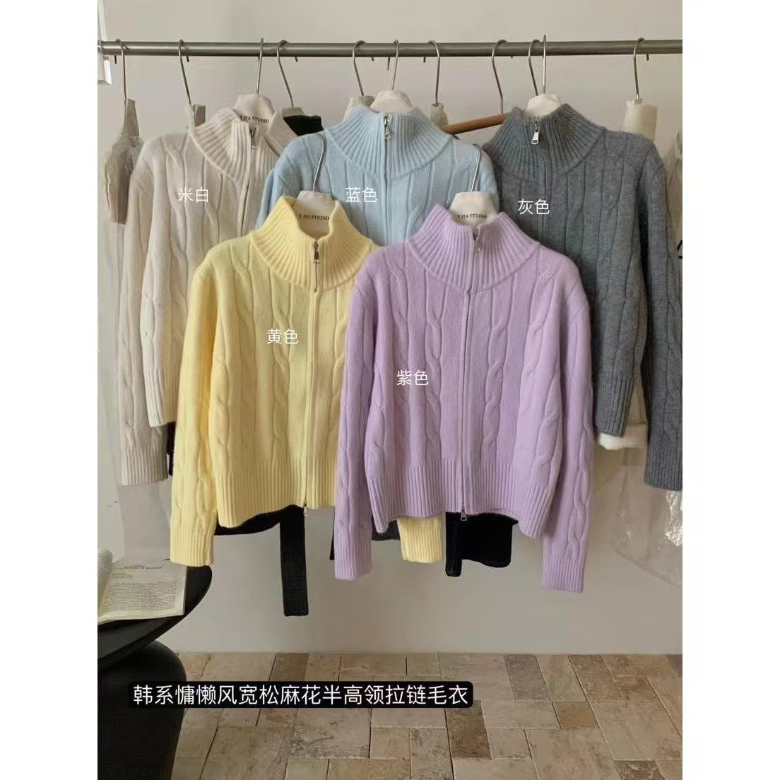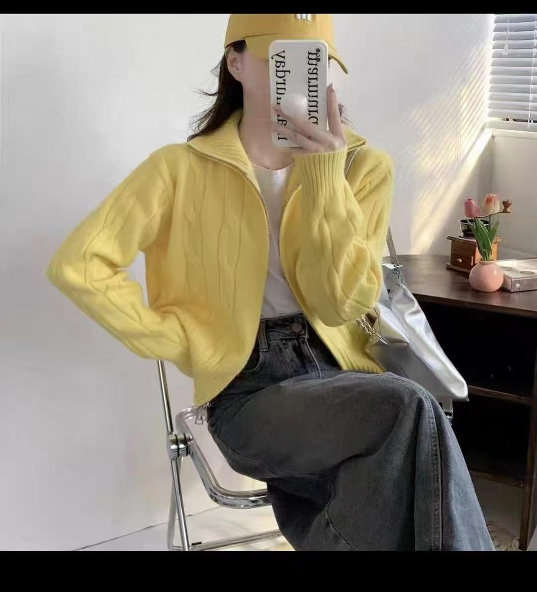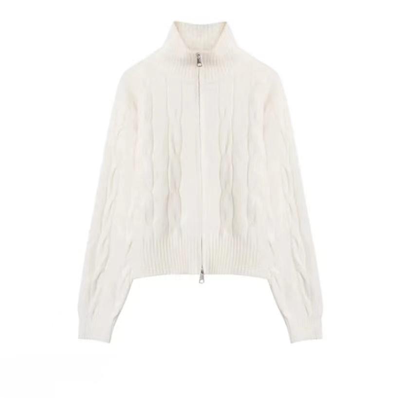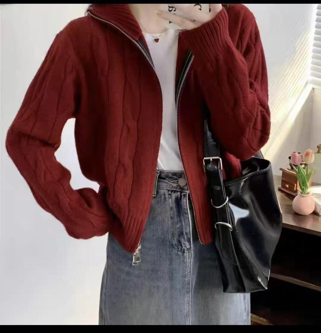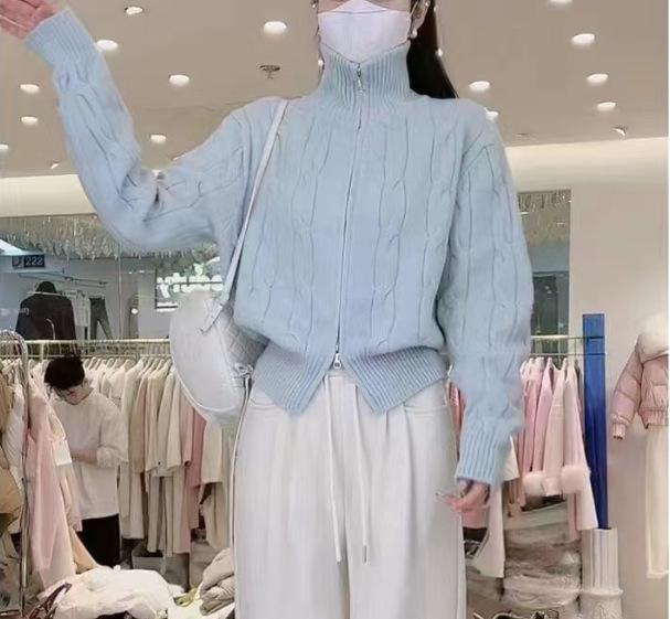 Cárdigan de punto con doble cremallera y diseño versátil para mujer, estilo coreano, estilo perezoso, otoño e invierno