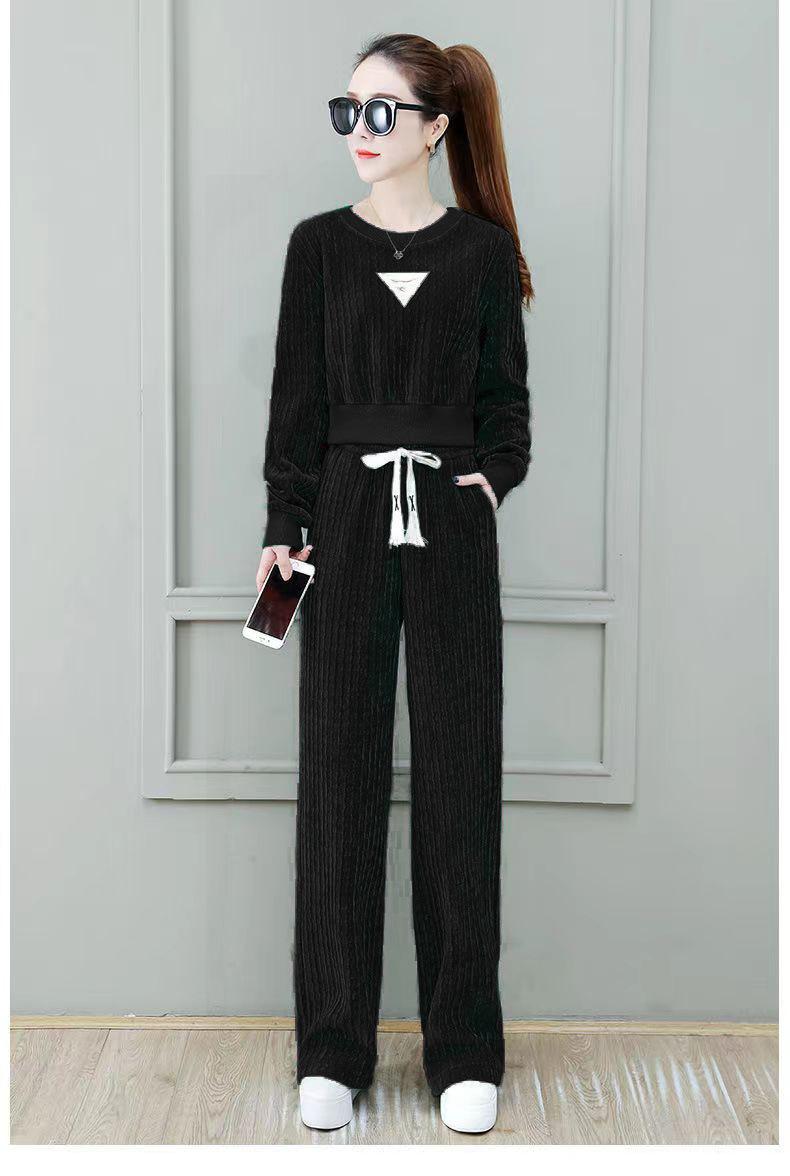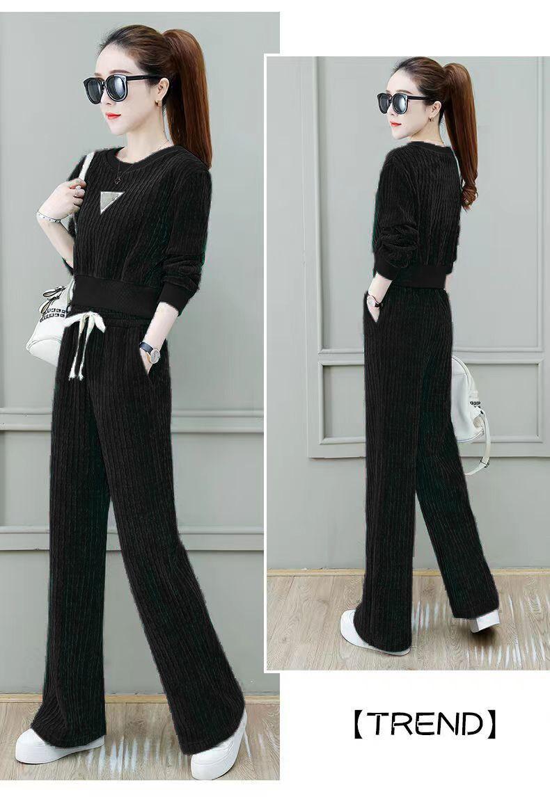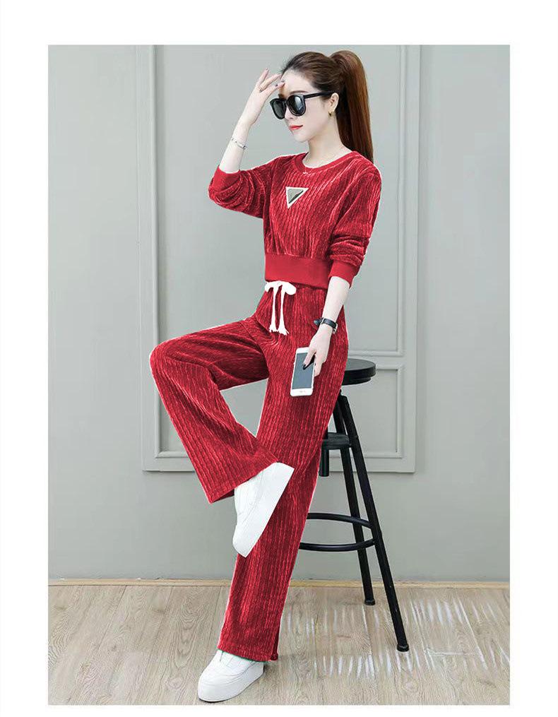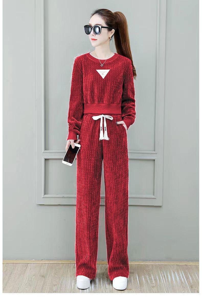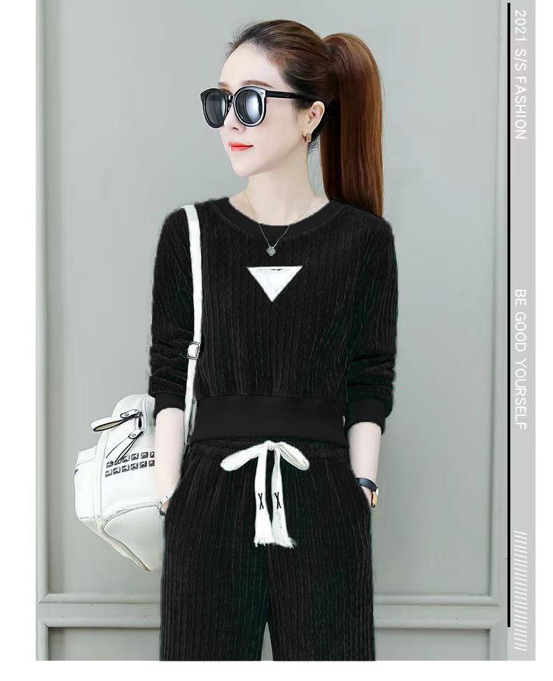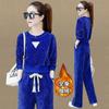 Ropa de mujer blanca fina con forro polar, traje deportivo informal de primavera y otoño, nuevo, de moda, holgado, de invierno, grueso, de dos piezas