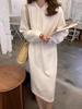Otoño e Invierno Nuevo Tejido de Lana Pura para Mujer Sudadera con Capucha de Color Sólido de Longitud Media Suave y Cerosa Casual Cálida Base Suéter