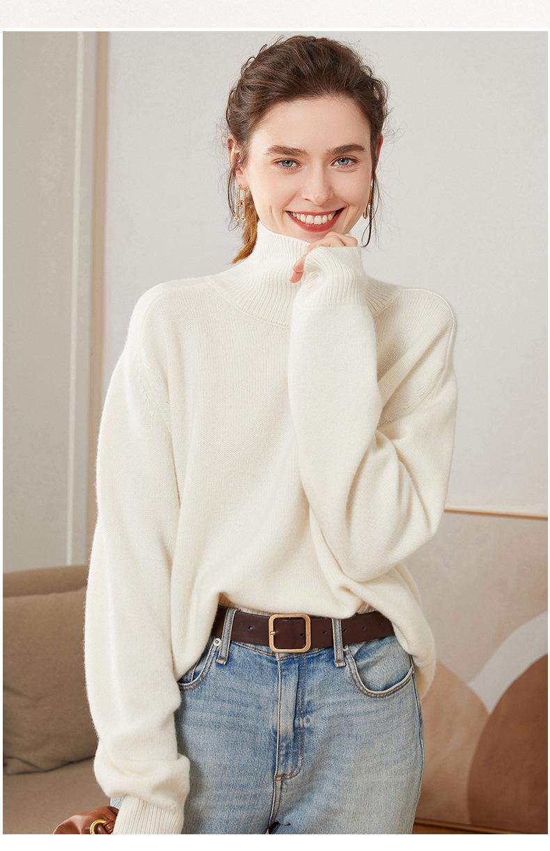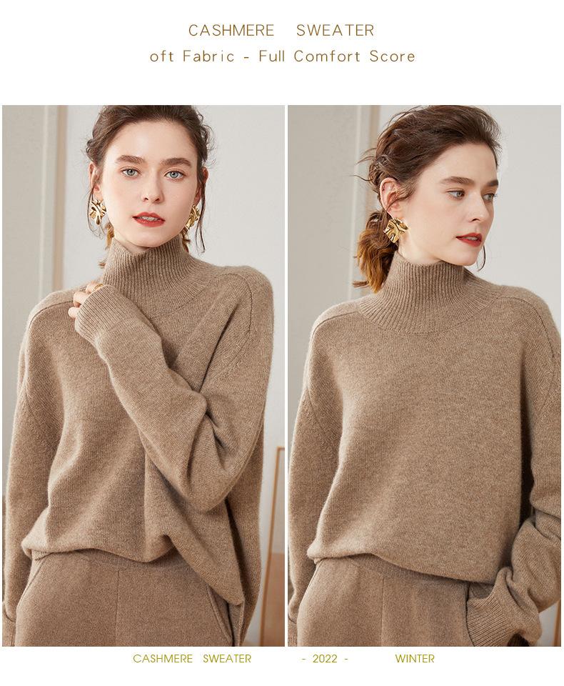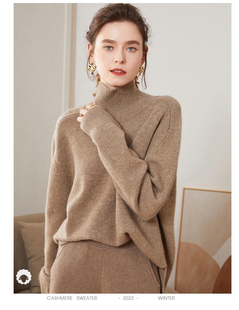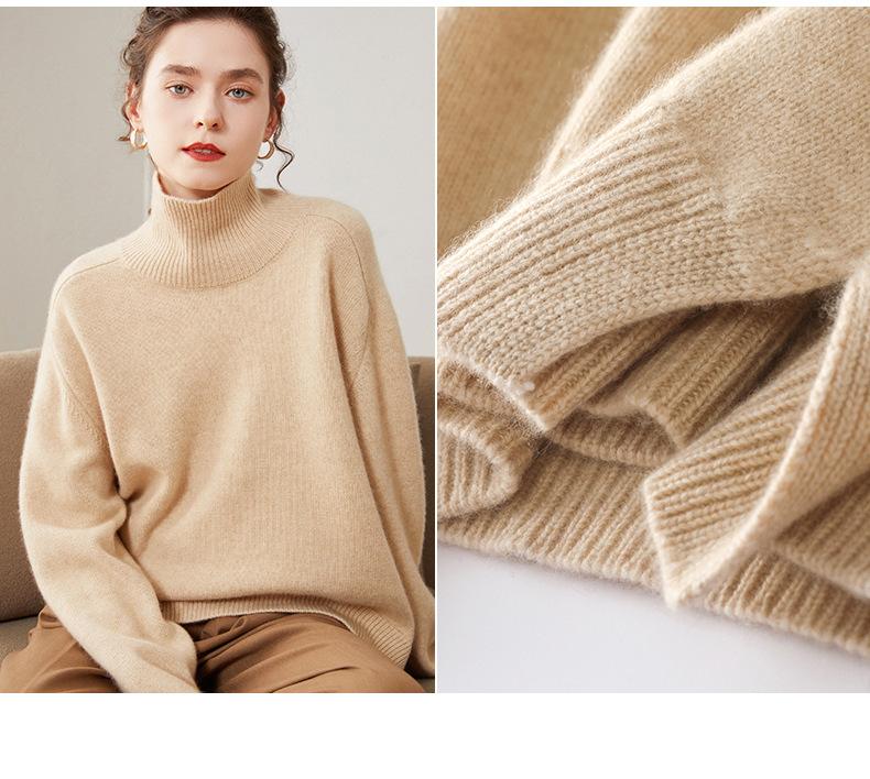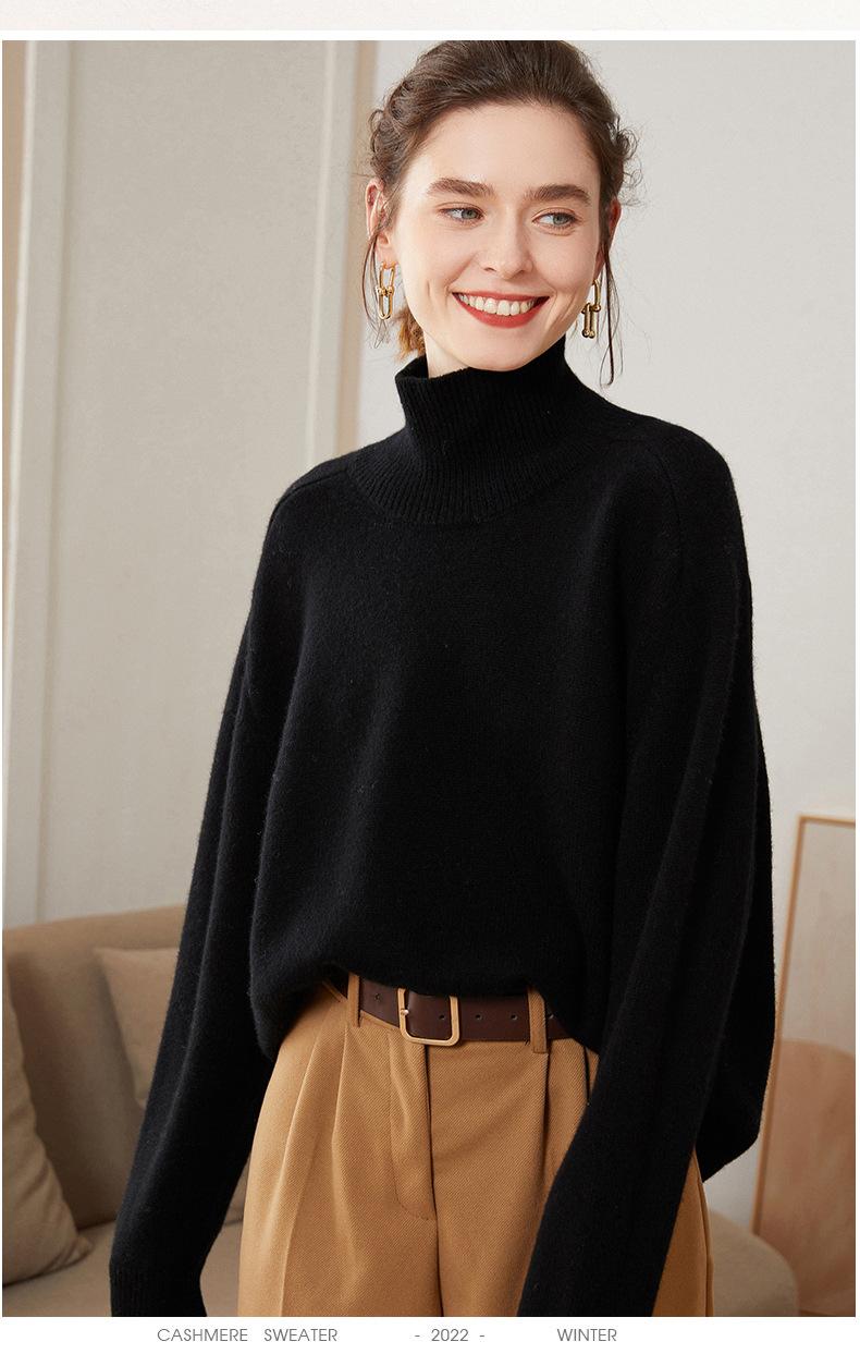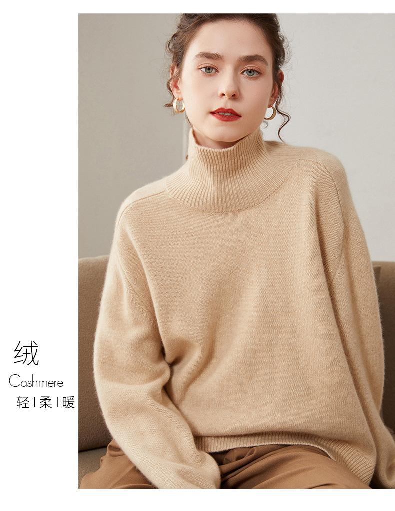 Nuevo suéter de punto de cachemira de cuello alto para otoño e invierno para mujer, de manga larga, holgado, cálido, top, estilo slim lazy