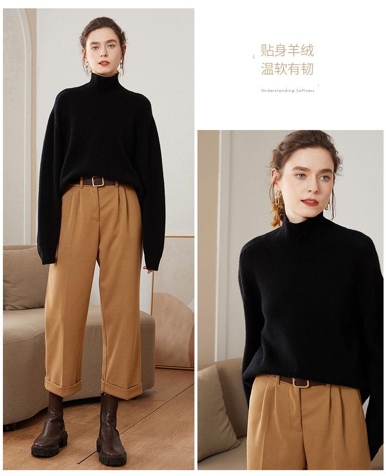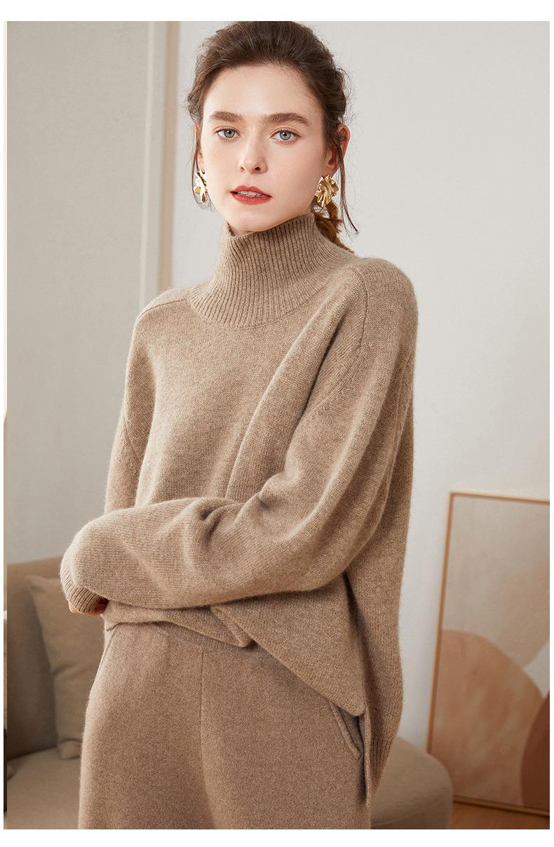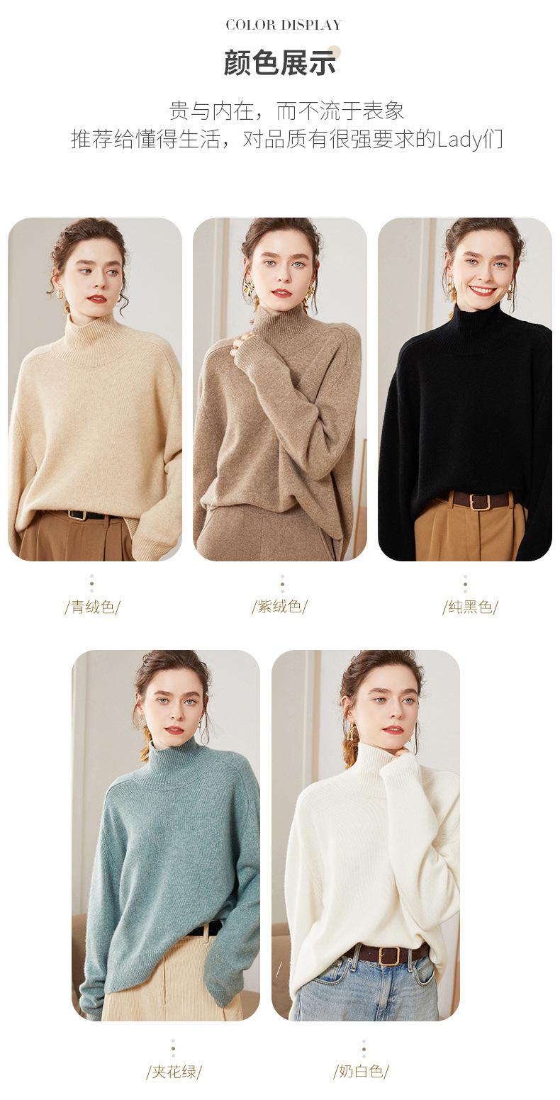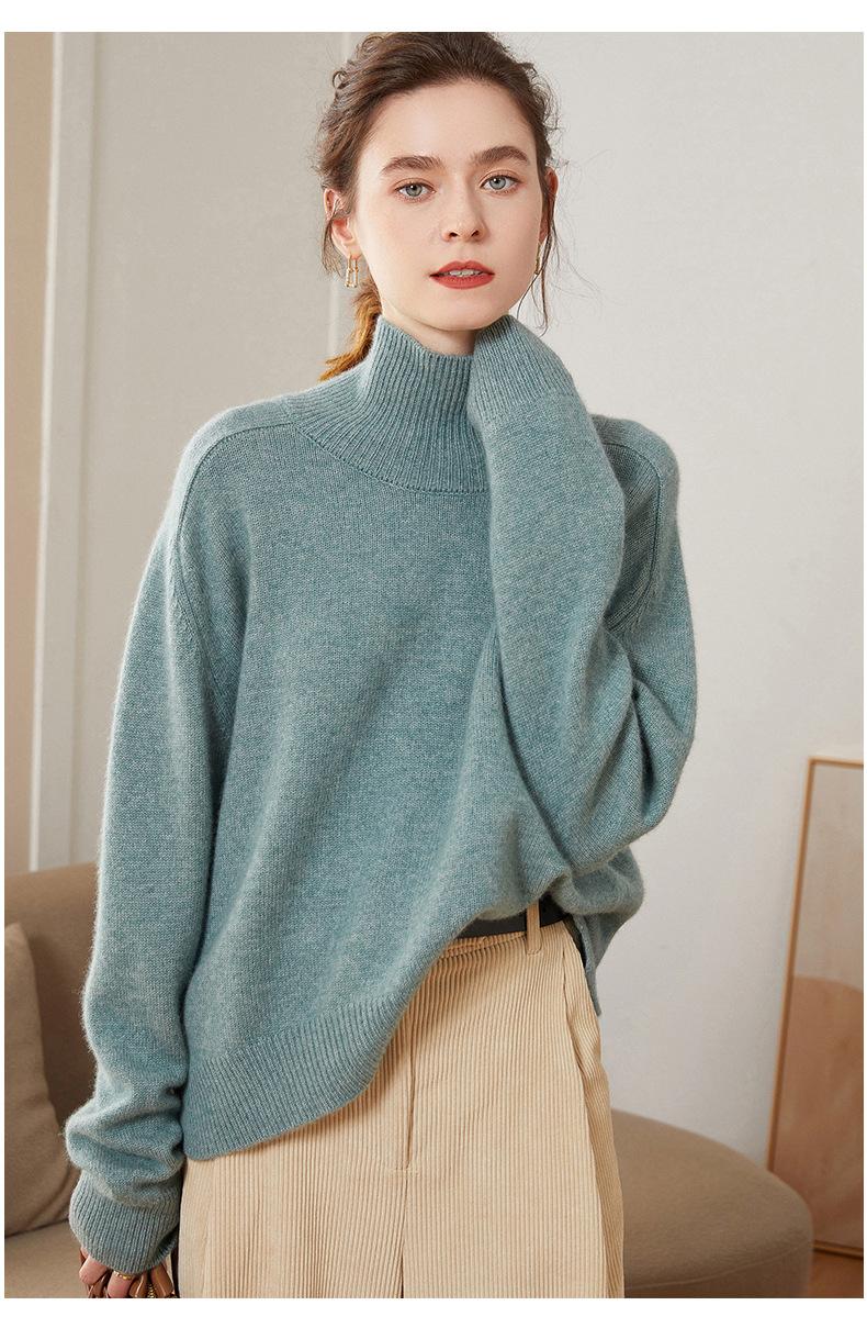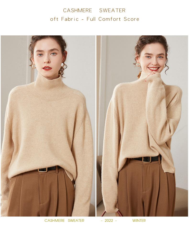 Nuevo suéter de punto de cachemira de cuello alto para otoño e invierno para mujer, de manga larga, holgado, cálido, top, estilo slim lazy