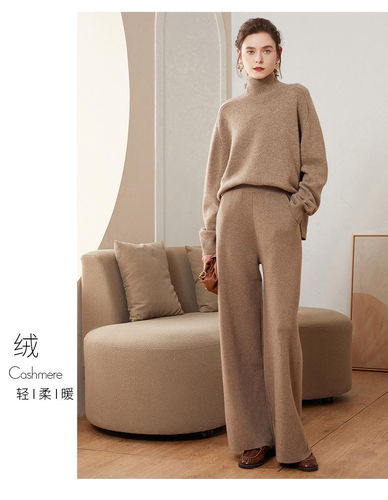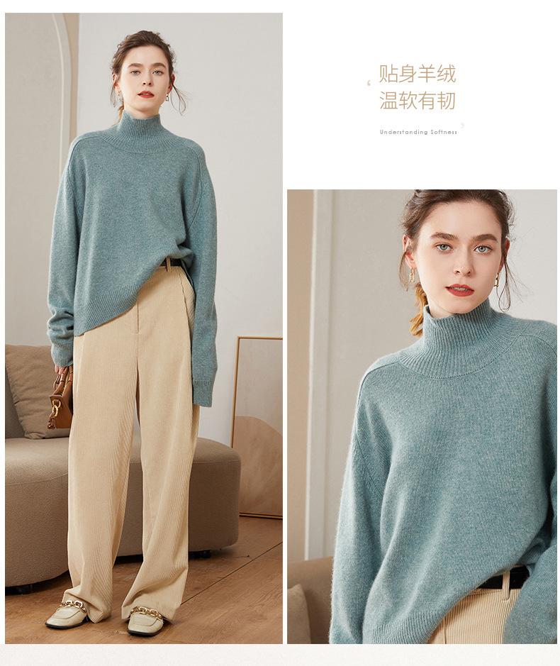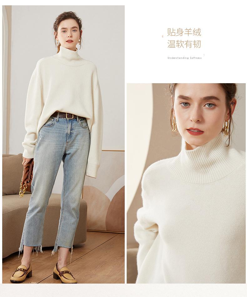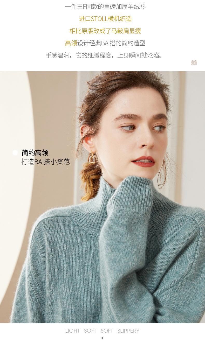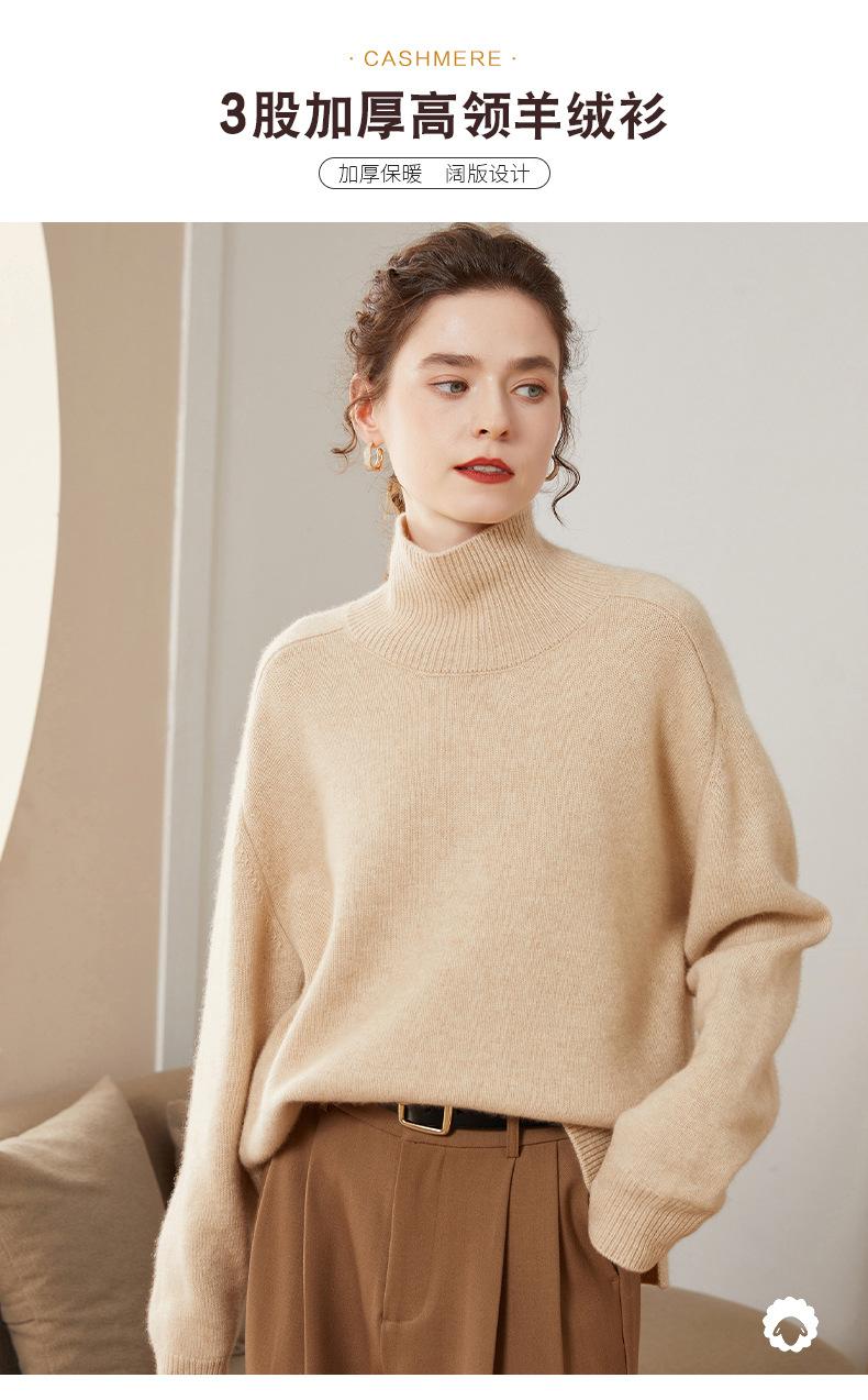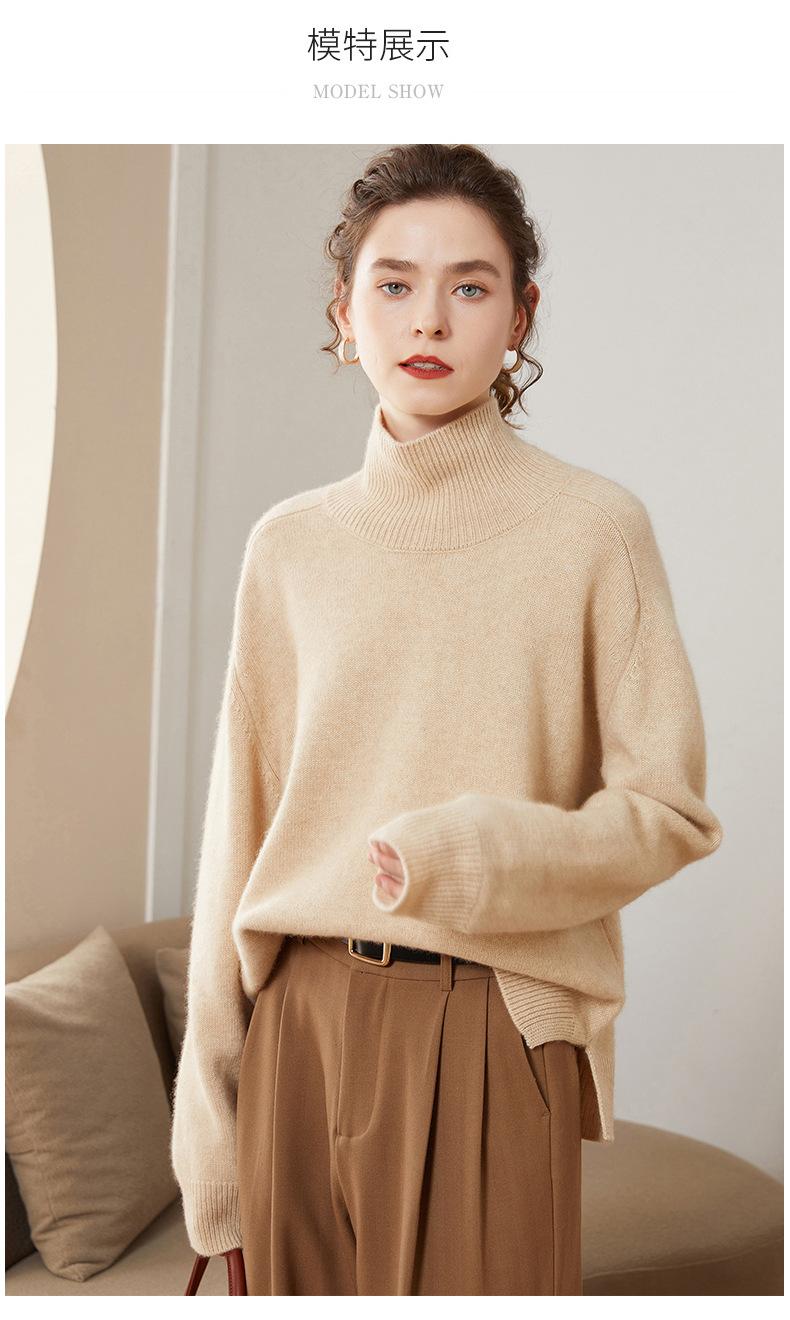 Nuevo suéter de punto de cachemira de cuello alto para otoño e invierno para mujer, de manga larga, holgado, cálido, top, estilo slim lazy