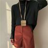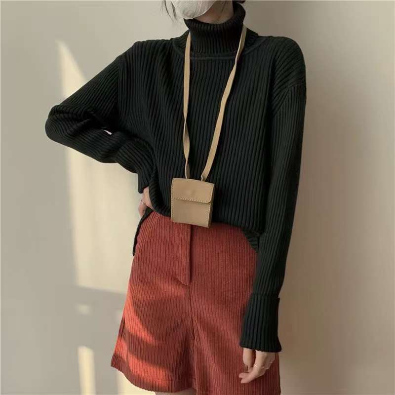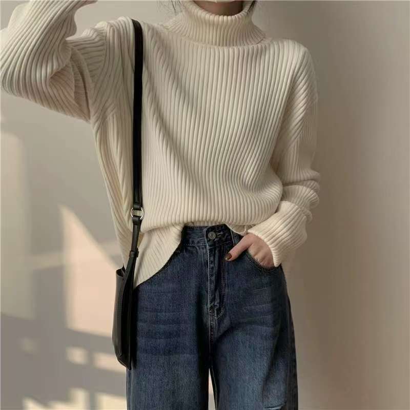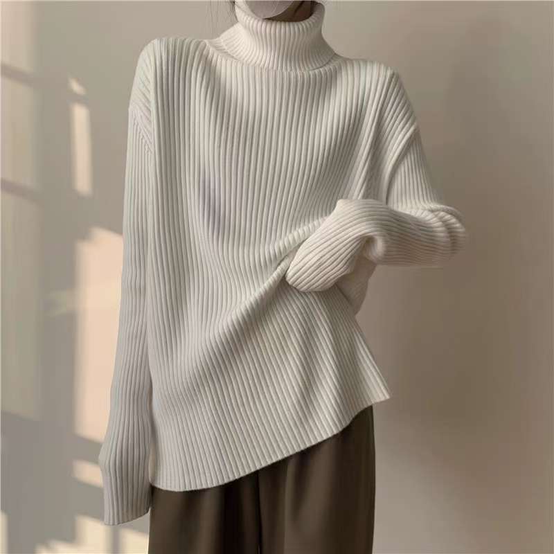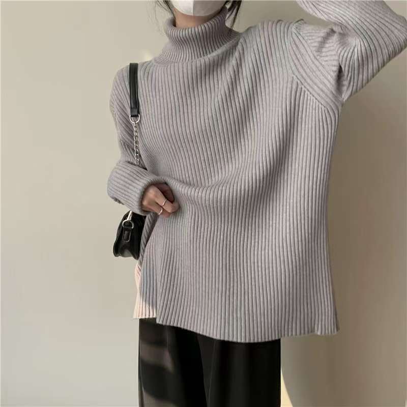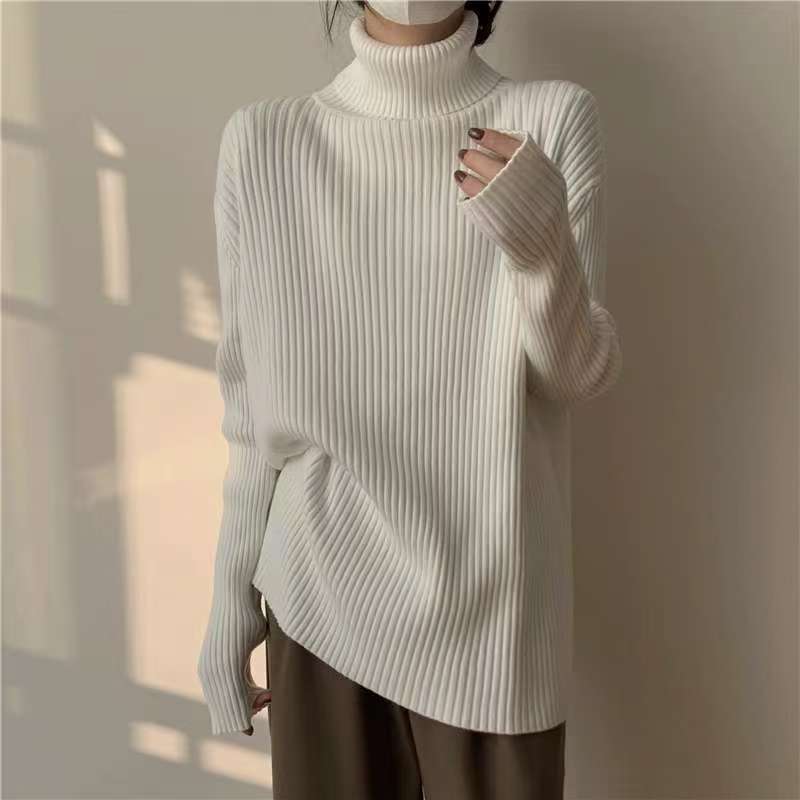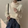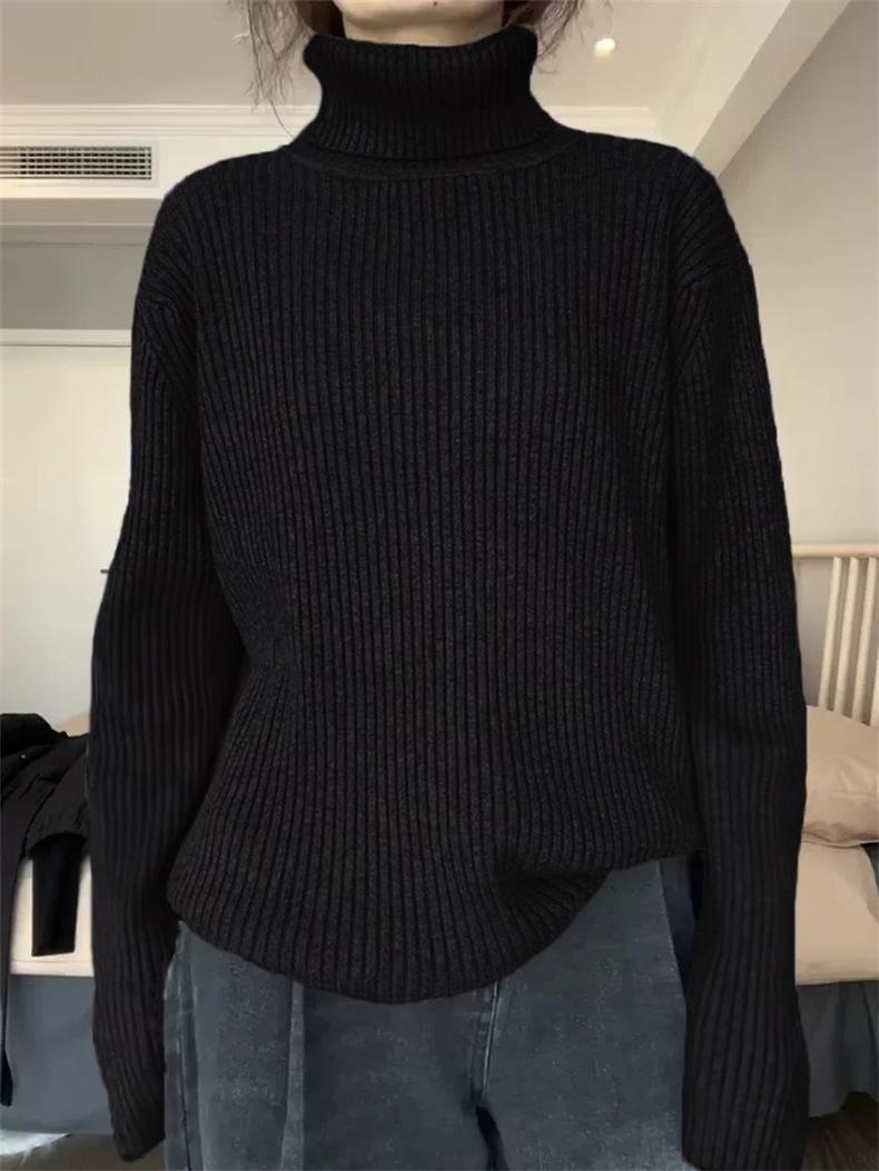 Suéter de cuello alto y color sólido de estilo coreano para mujer, jersey interior holgado de estilo perezoso, camisa de manga larga de punto, otoño e invierno