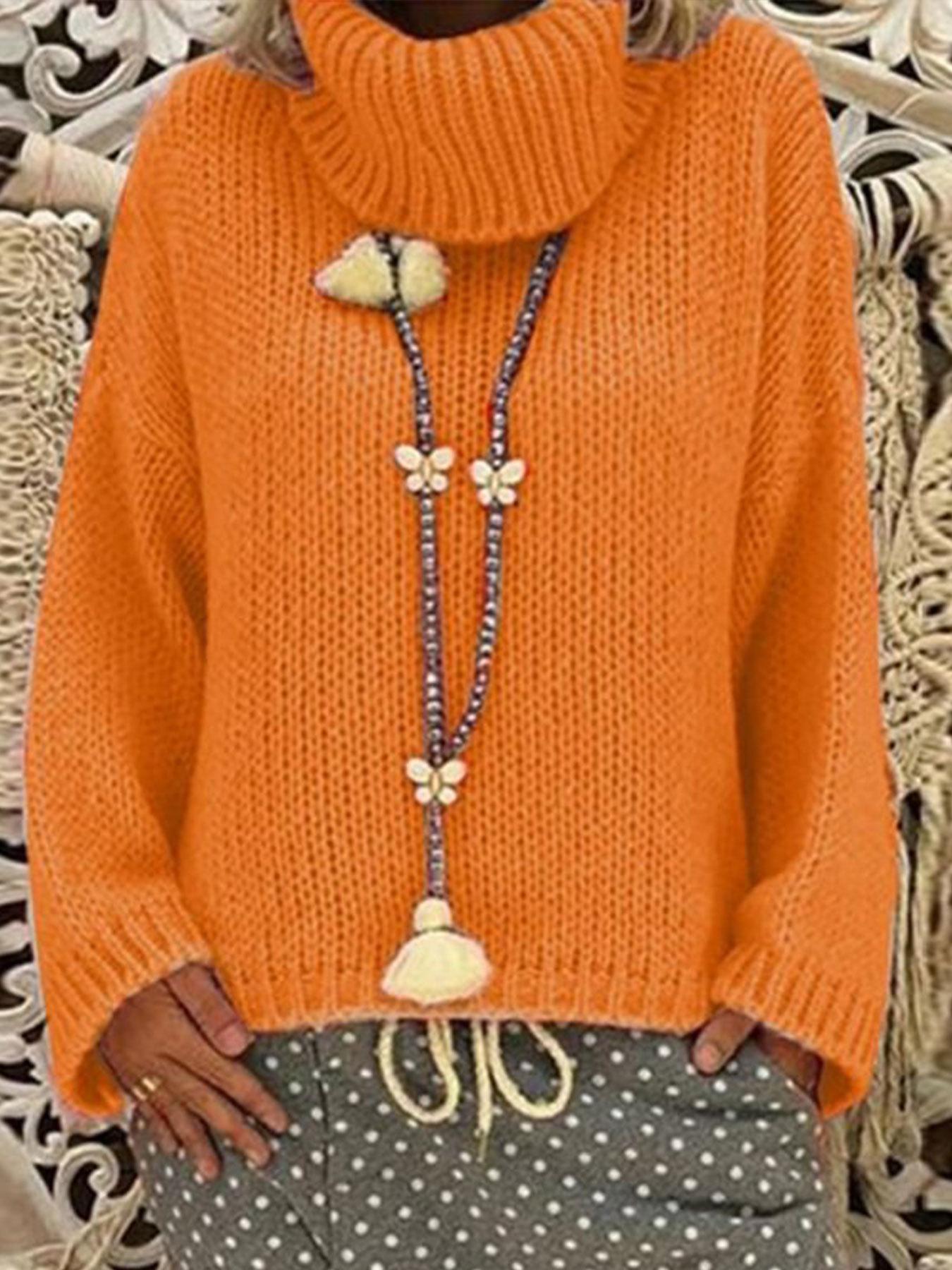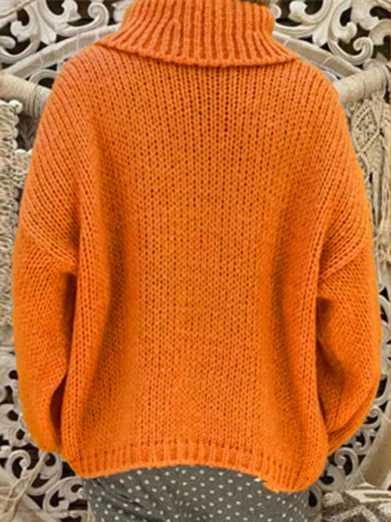 Suéter de Punto Holgado de Cuello Alto de Color Sólido de Estilo Simple Transfronterizo Europeo y Americano para Otoño e Invierno, Estilo Versátil para el Día a Día, Suéter de Moda Casual