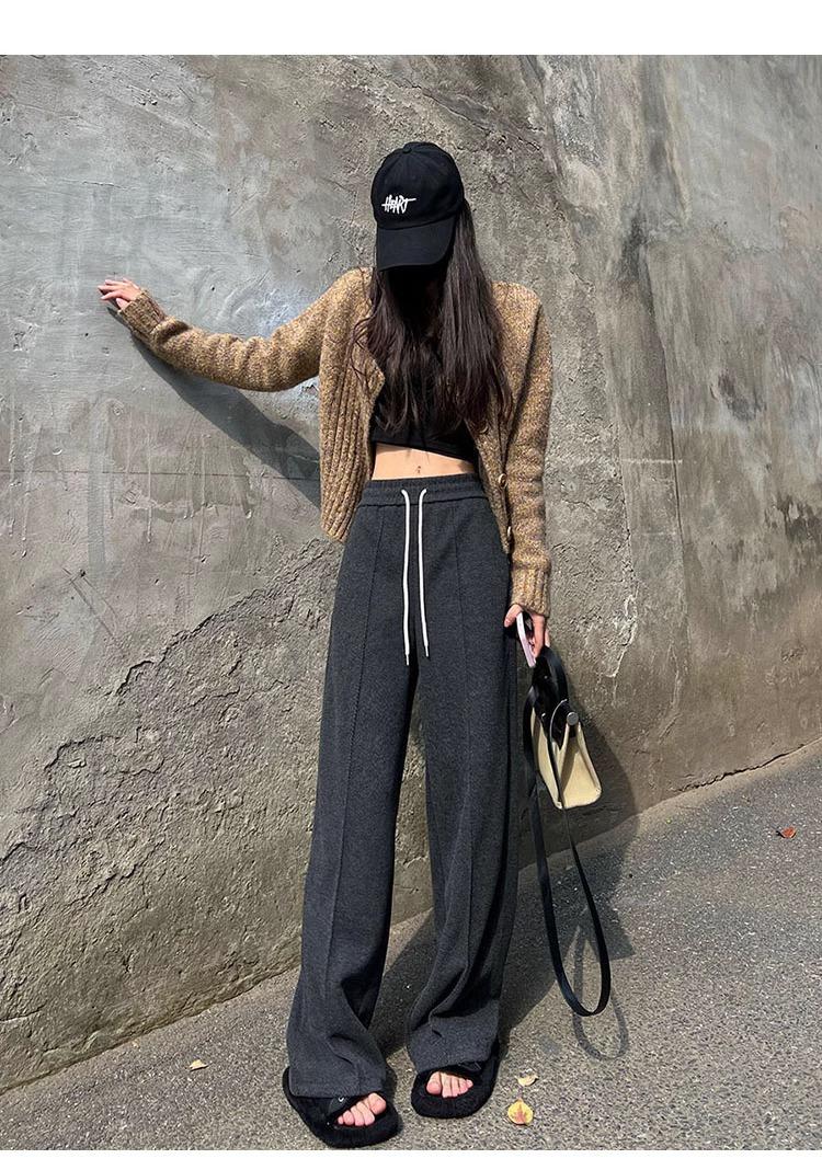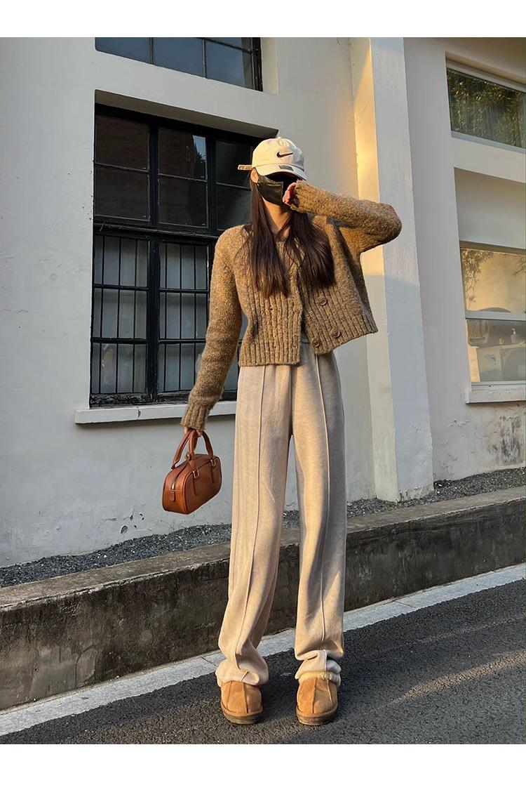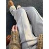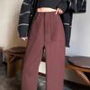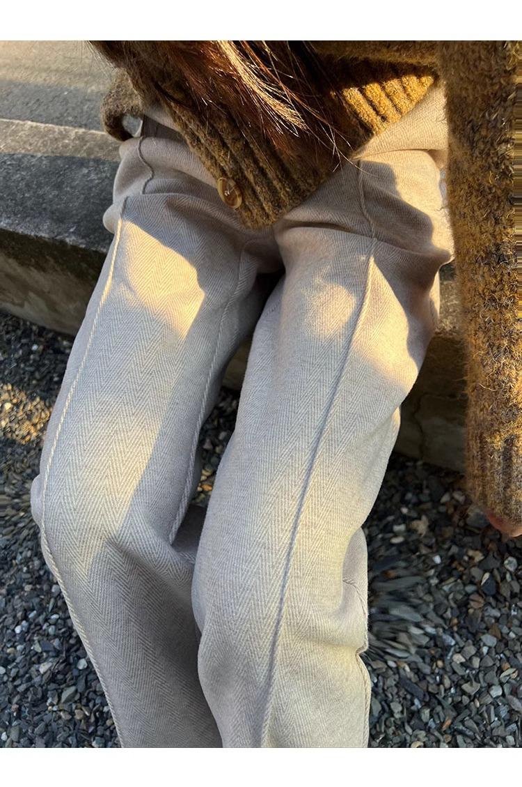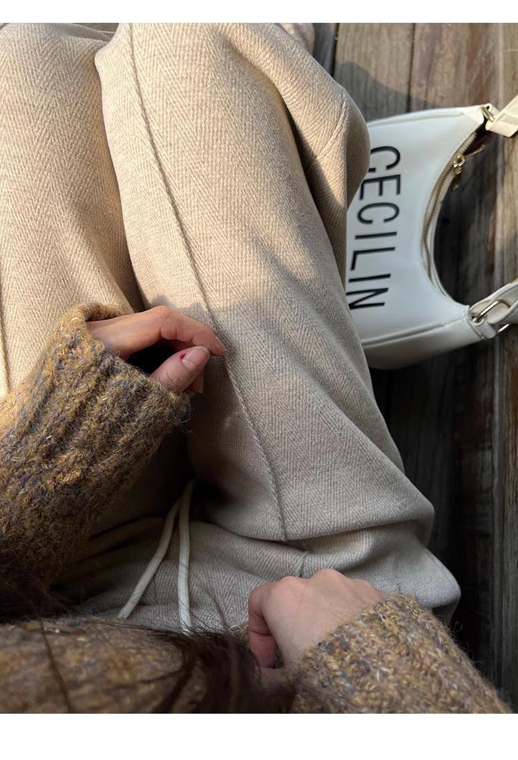 Pantalones de lana forrados de vellón de pierna estrecha ancha para mujer Invierno 2024 Nuevos Cintura alta Espiga Engrosados Rectos Traje Pantalones de moda