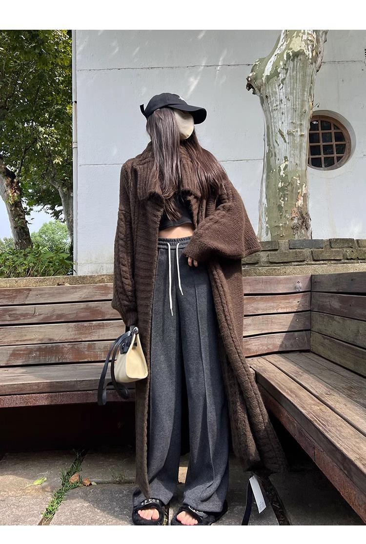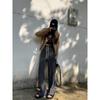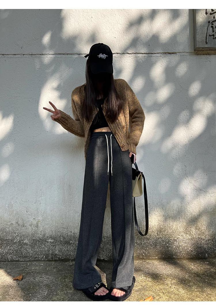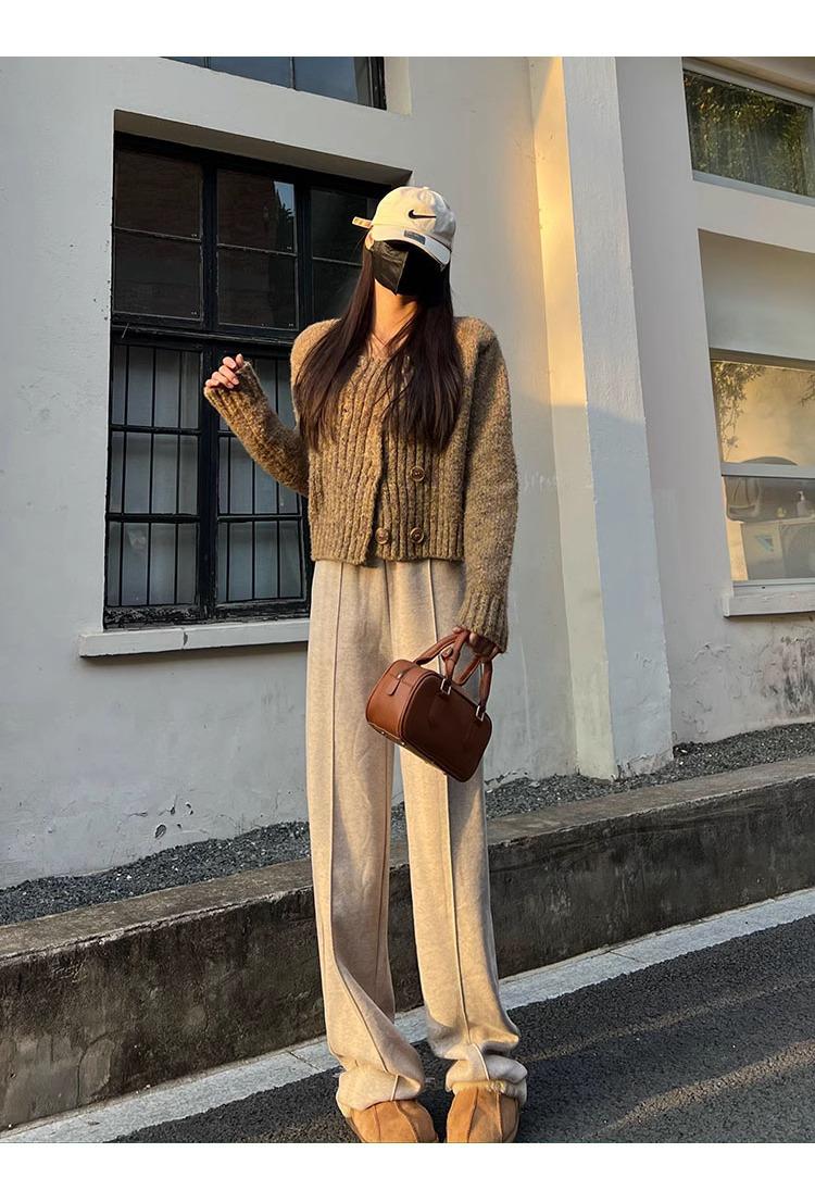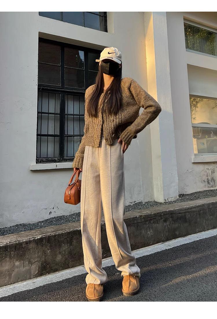 Pantalones de lana forrados de vellón de pierna estrecha ancha para mujer Invierno 2024 Nuevos Cintura alta Espiga Engrosados Rectos Traje Pantalones de moda