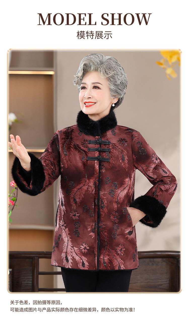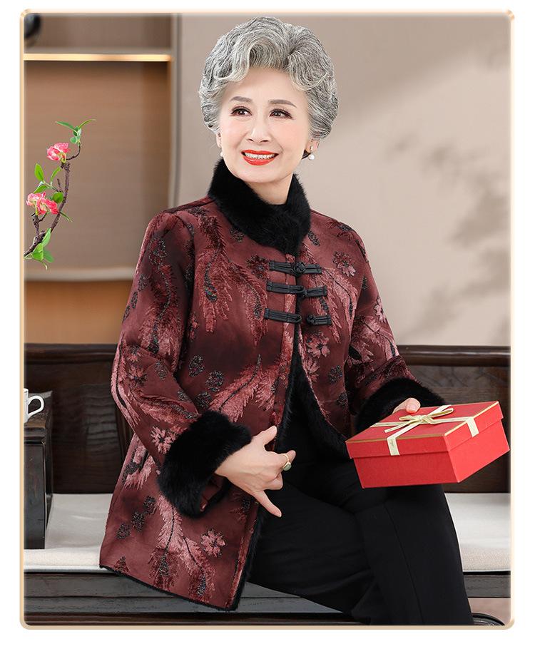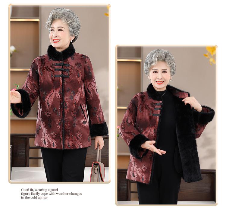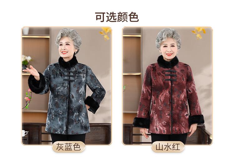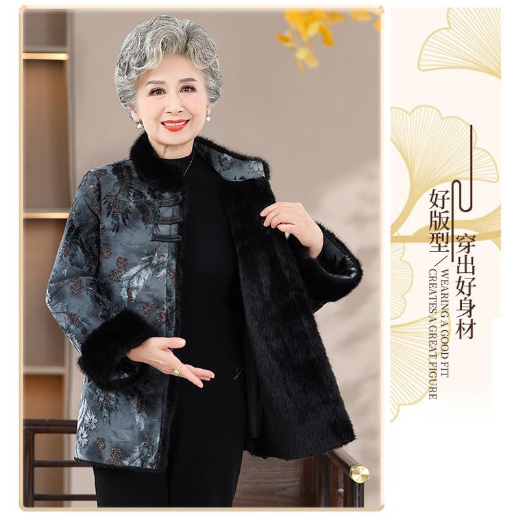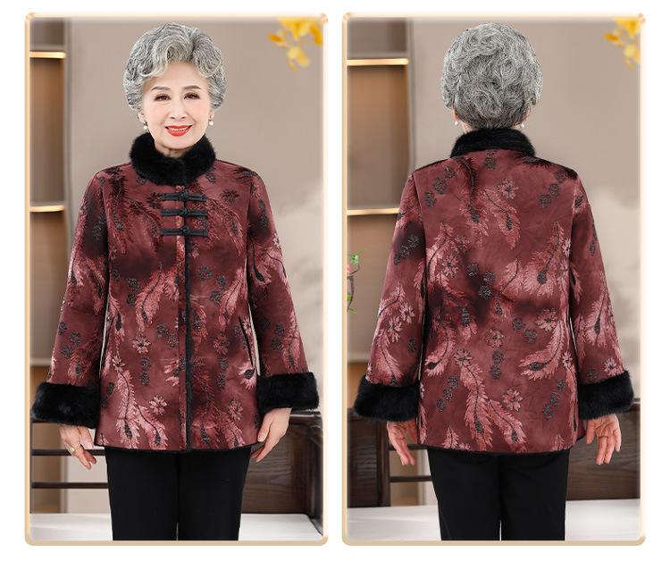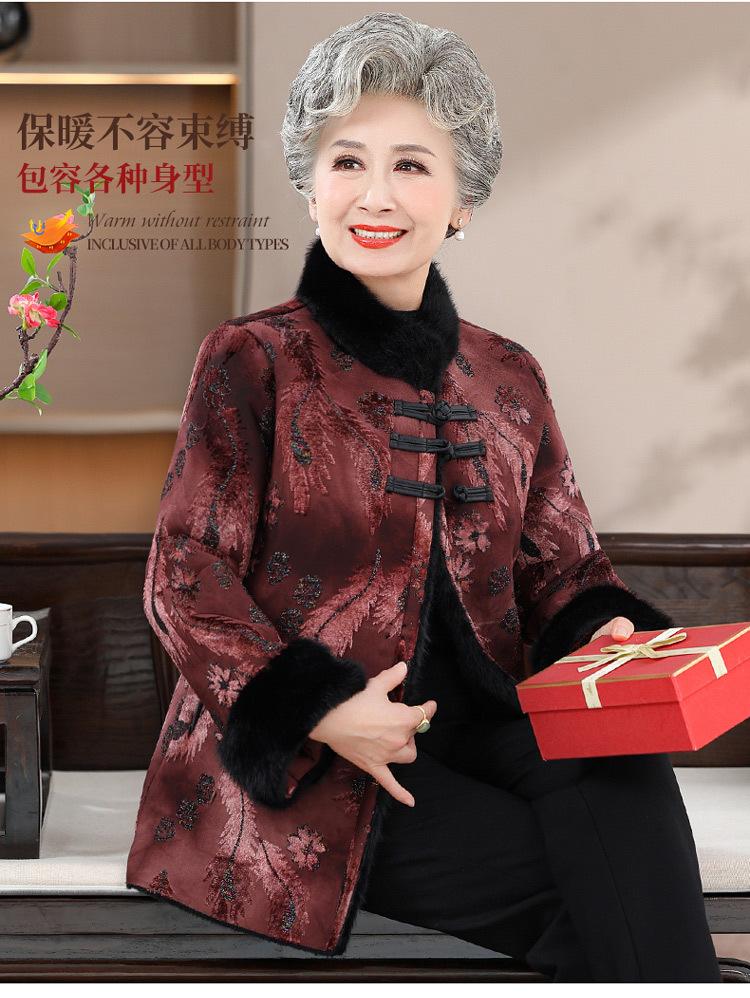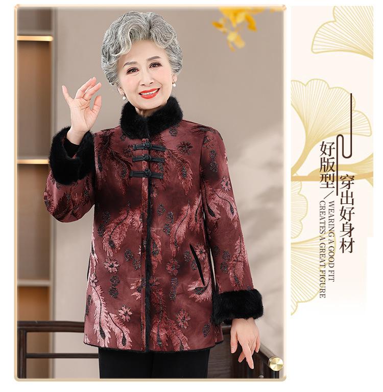 Ropa de invierno para ancianas, abrigo acolchado de algodón para mujeres, abrigo acolchado Tang de abuela, abrigo polar de una pieza de piel de anciana estilo chino