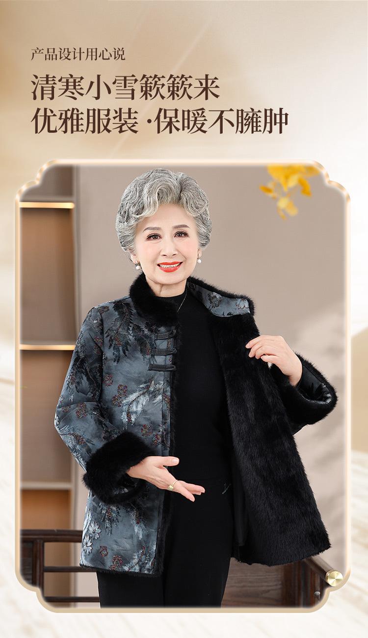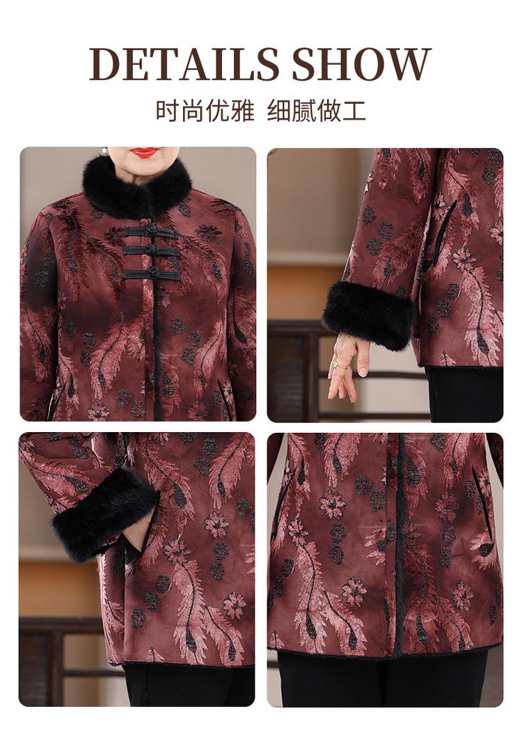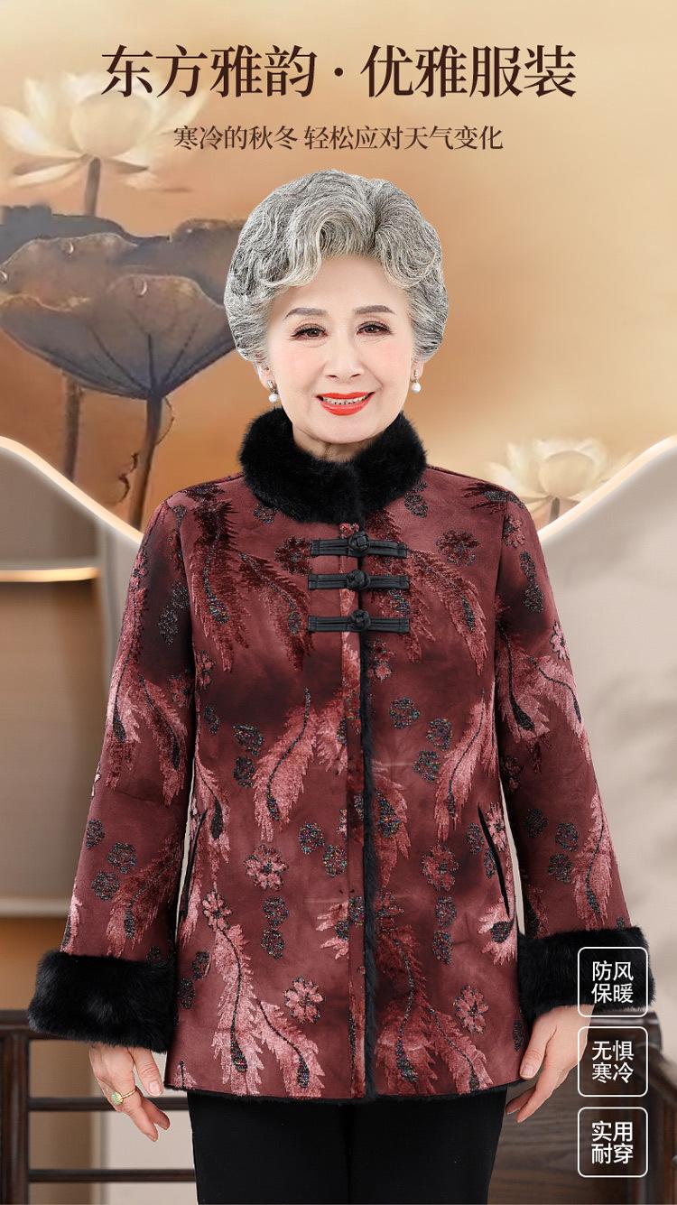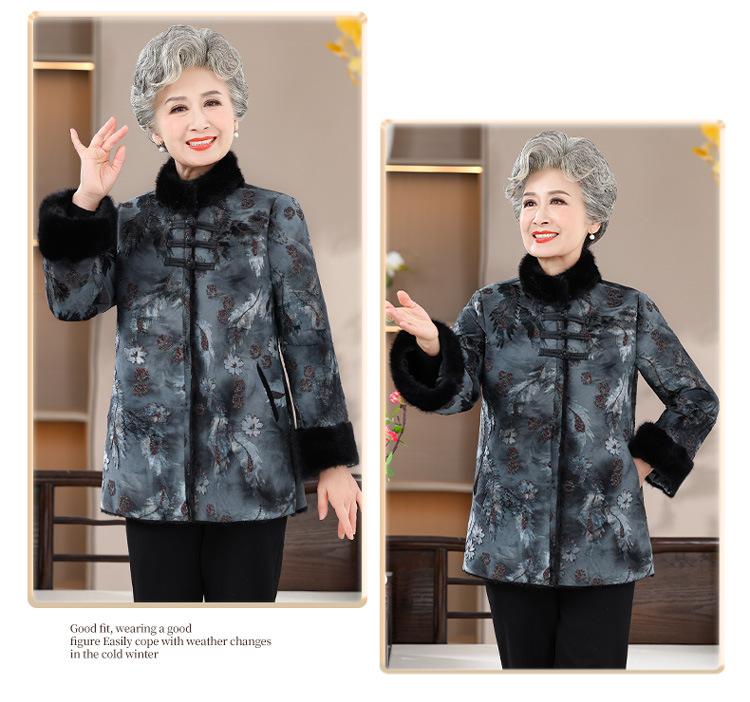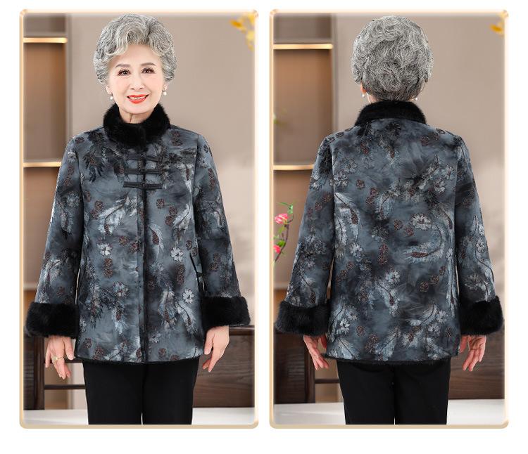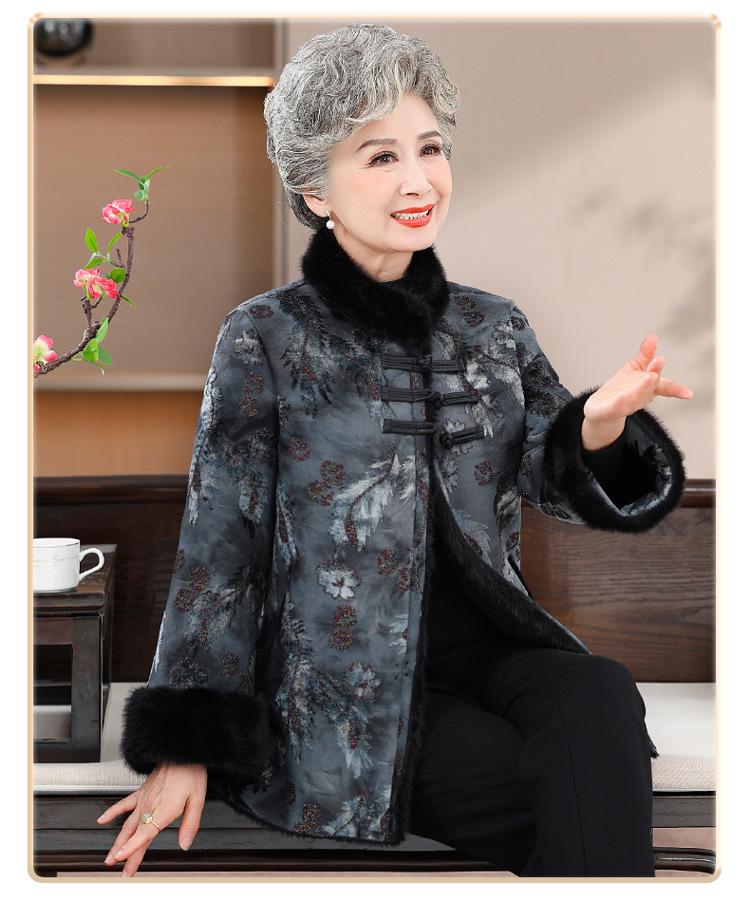 Ropa de invierno para ancianas, abrigo acolchado de algodón para mujeres, abrigo acolchado Tang de abuela, abrigo polar de una pieza de piel de anciana estilo chino