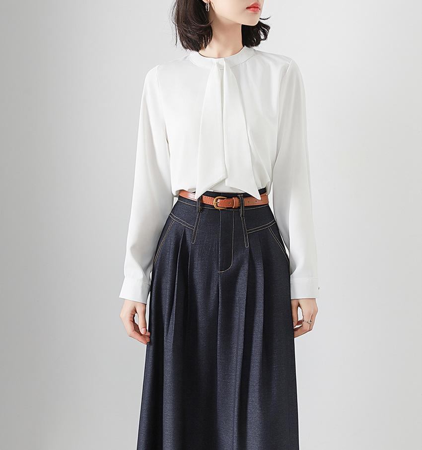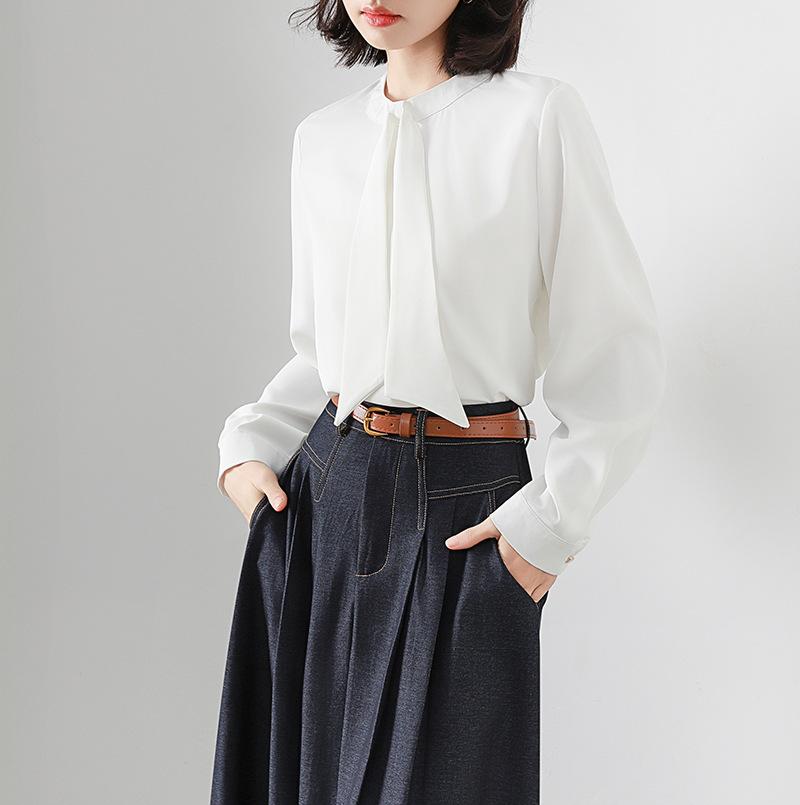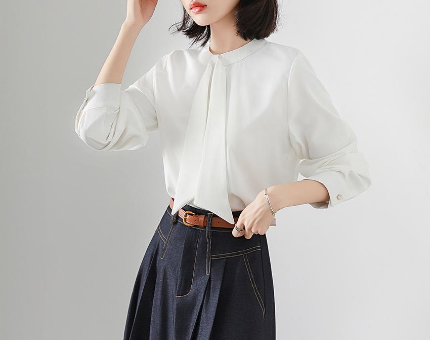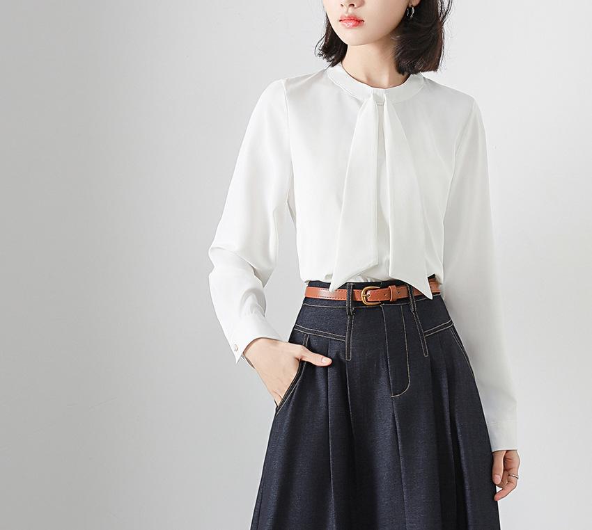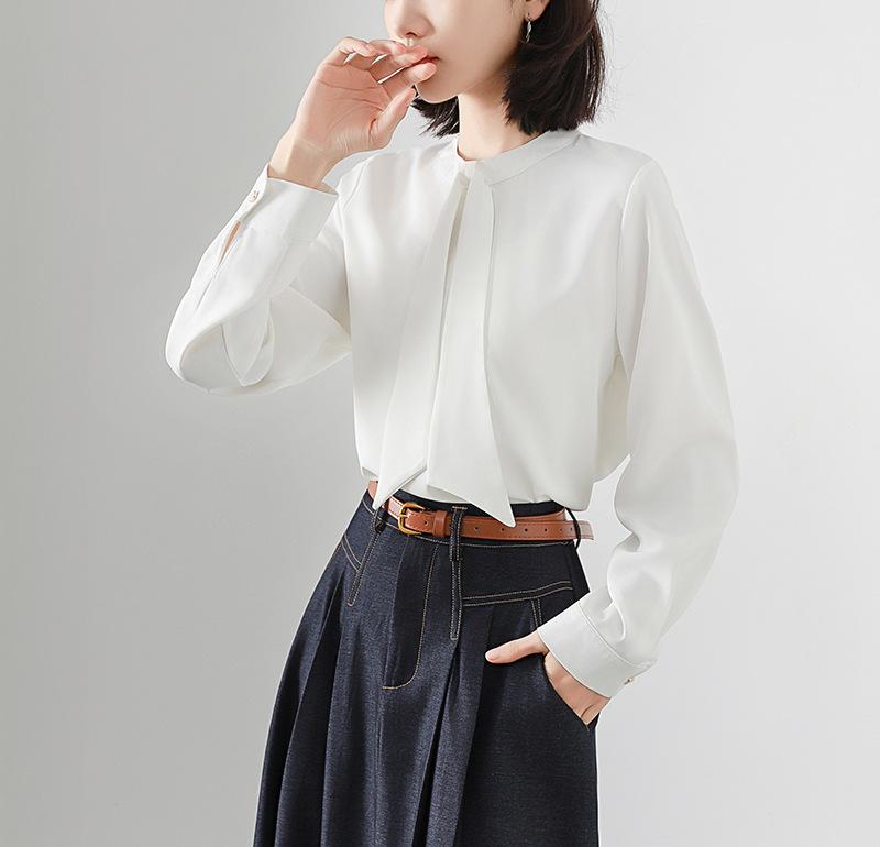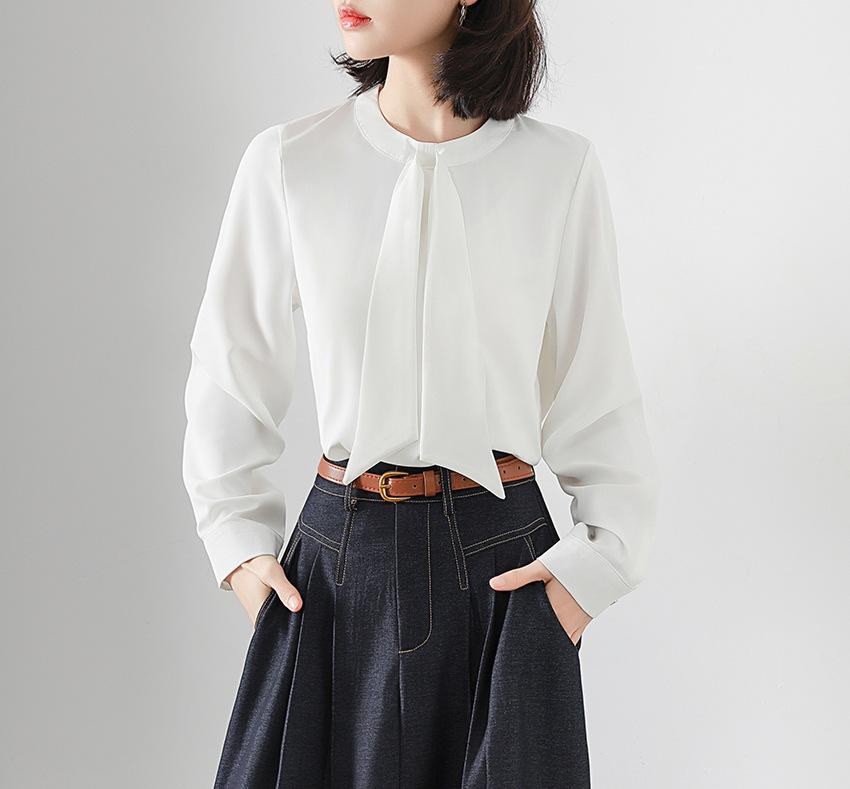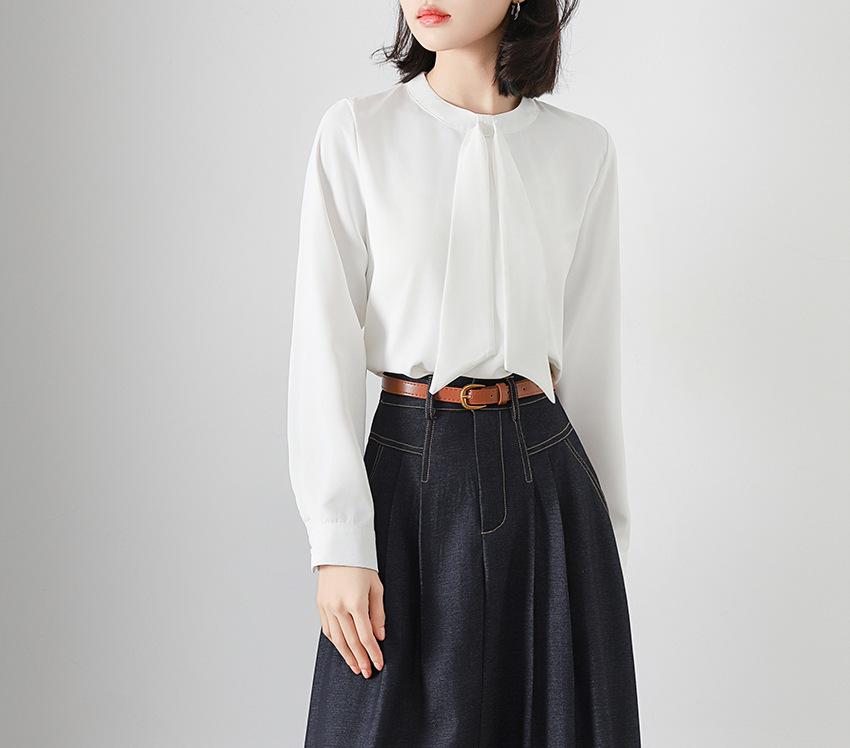 Camisa blanca de gasa para mujer, primavera 2025, diseño Sense Niche, ligera, madura, estilo Hong Kong, cinturón, profesional, para uso diario, camisa para todo tipo de combinaciones.