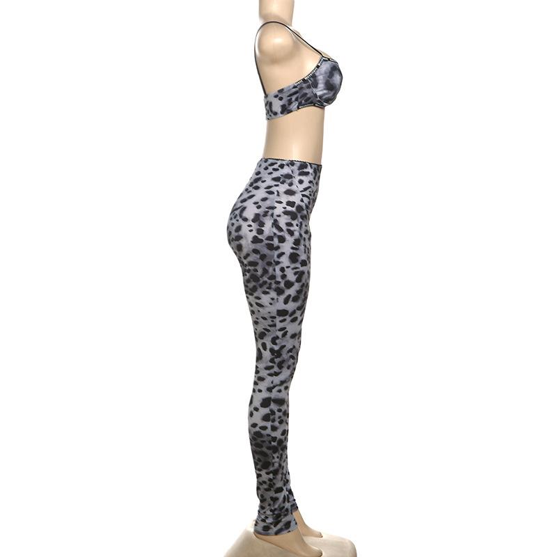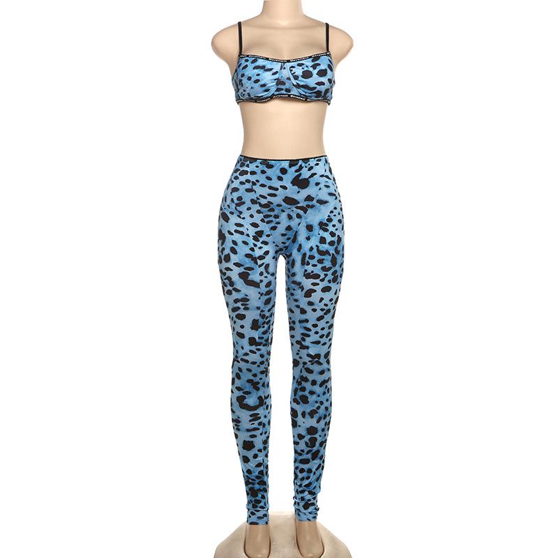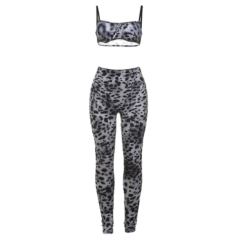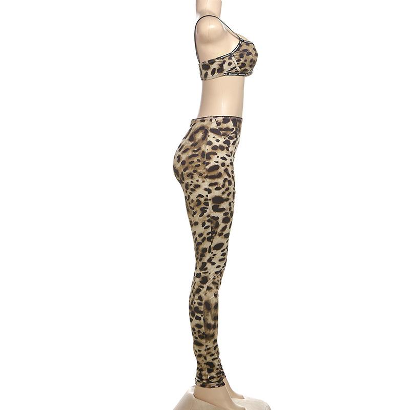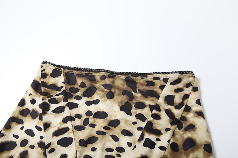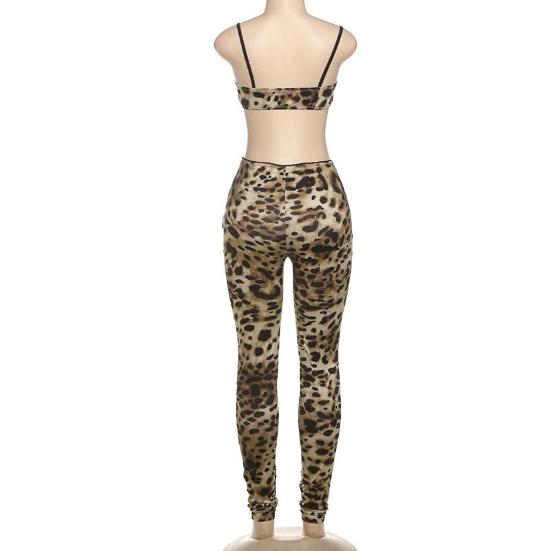 Conjunto de dos piezas de estilo europeo y americano para mujer, con estampado de leopardo, tirantes y cintura alta, ajustado y sexy, para primavera de 2025