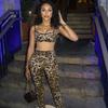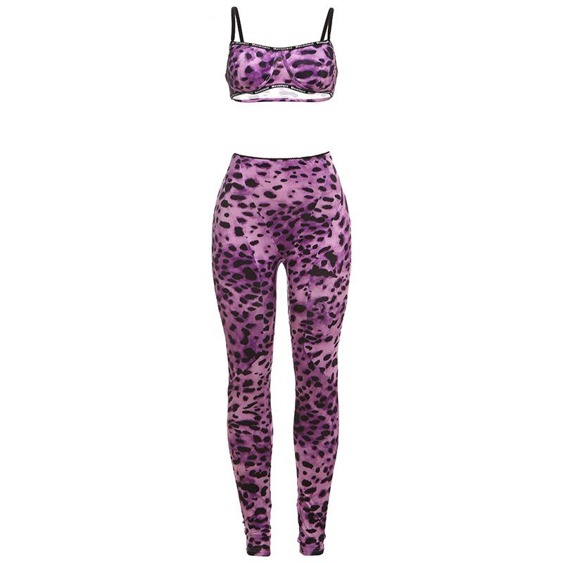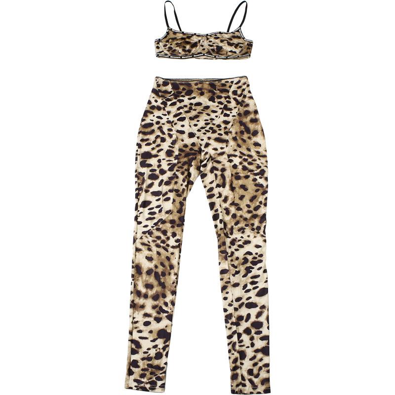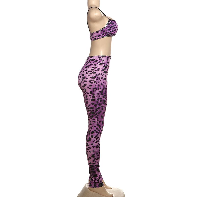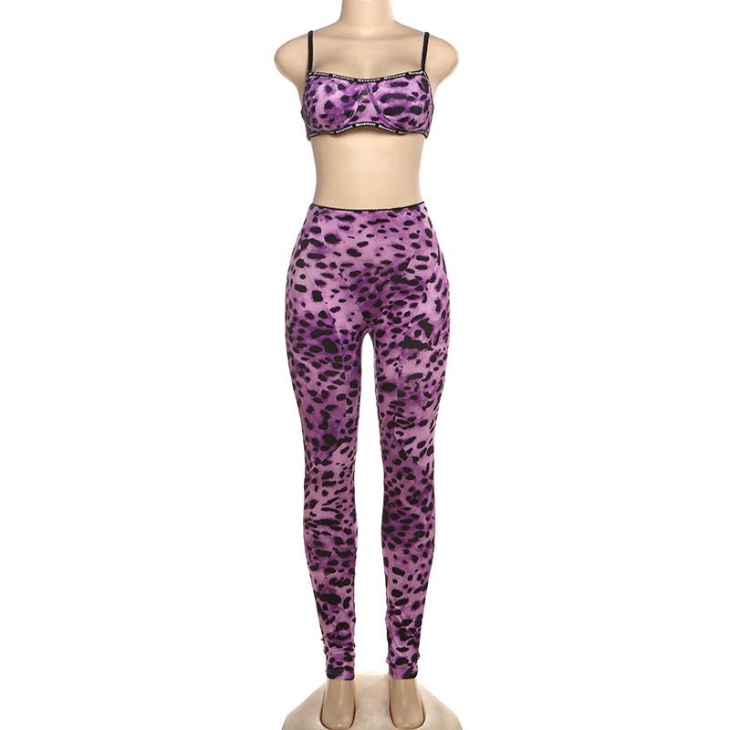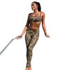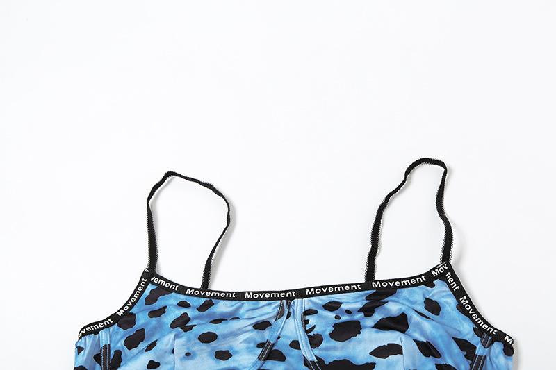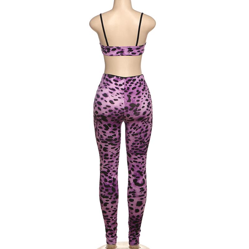 Conjunto de dos piezas de estilo europeo y americano para mujer, con estampado de leopardo, tirantes y cintura alta, ajustado y sexy, para primavera de 2025