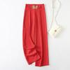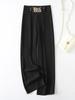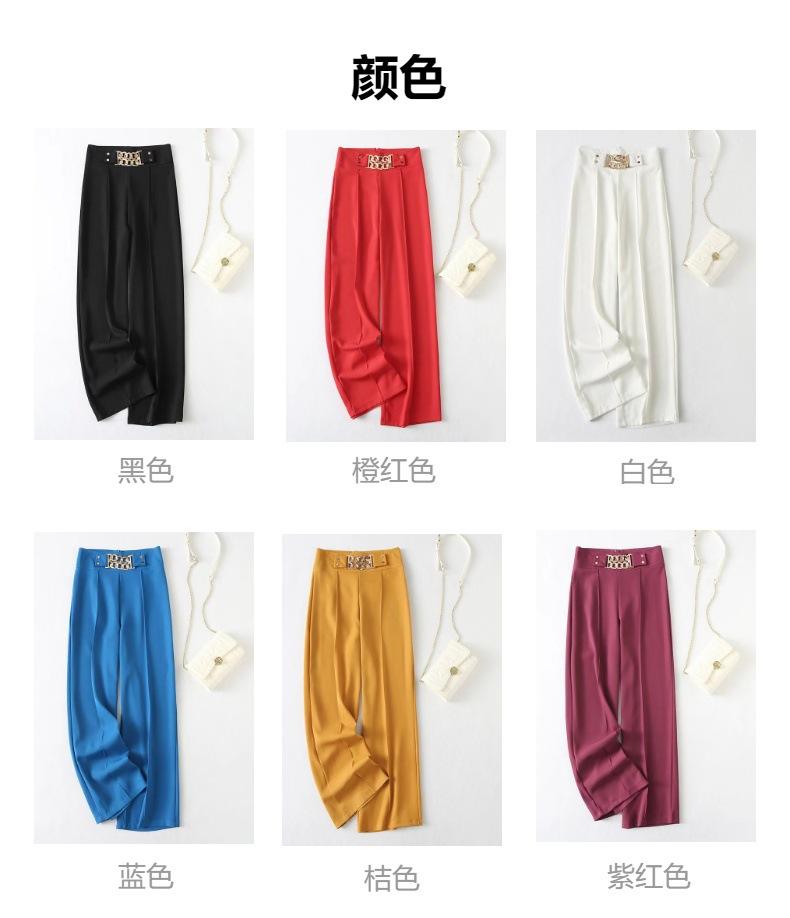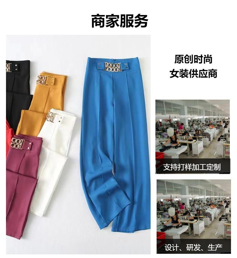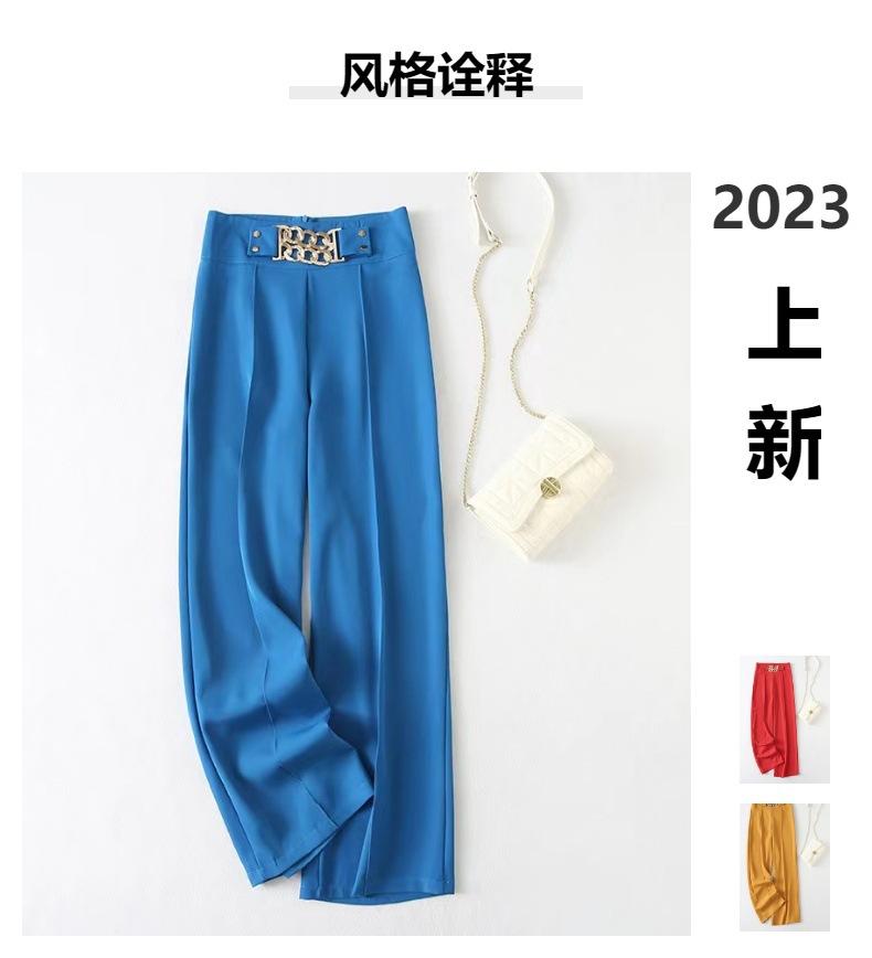 Europeo y Americano Transfronterizo 2025 Nuevo Color Puro Micro-Elástico Drapeado Cintura Alta Pantalones Slim Pantalones Casuales Pantalones de Pierna Ancha para Mujer