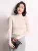 Suéter de Lana de Cuello Alto a Rayas para Mujer, Nuevo Jersey sin Costuras de Otoño e Invierno, Ajustado, de Punto, Manga Larga, Camiseta Básica