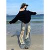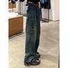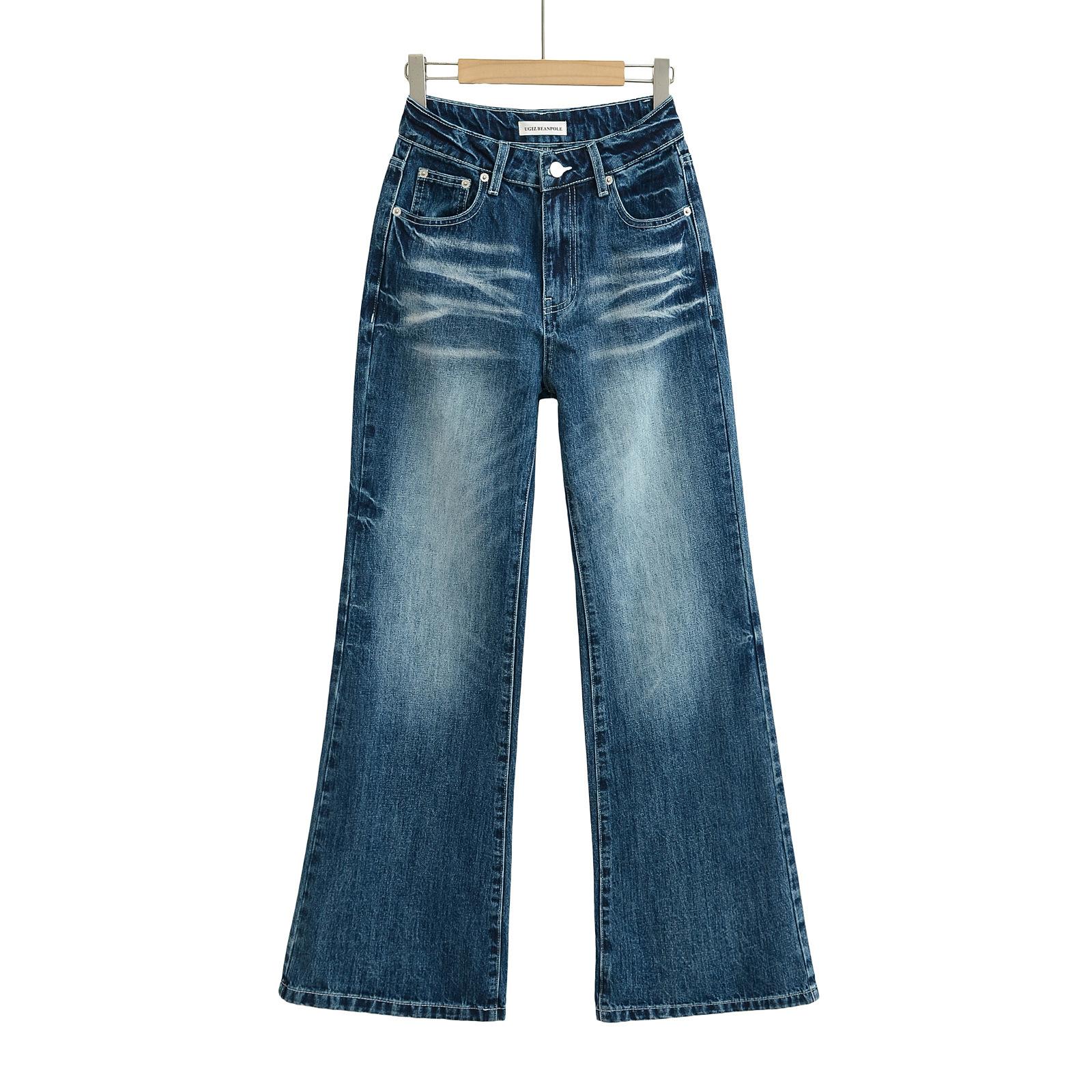 5602-24 Invierno Nuevo Americano Retro Moda Casual Cintura Baja Ombligo Suelto Pierna Ancha Rectos Jeans