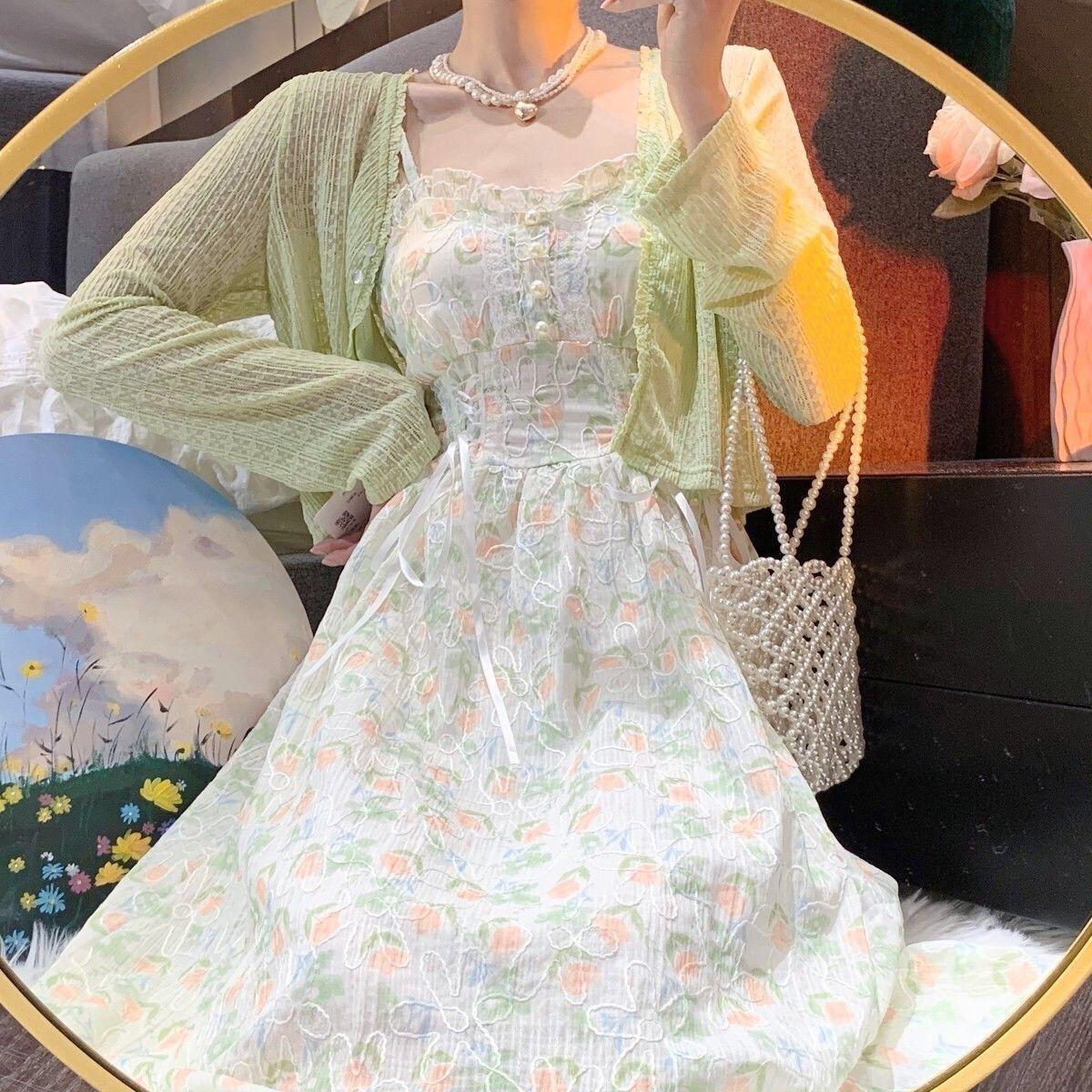 Cardigan + suspender skirt two-piece set, Cardigan, Slip dress