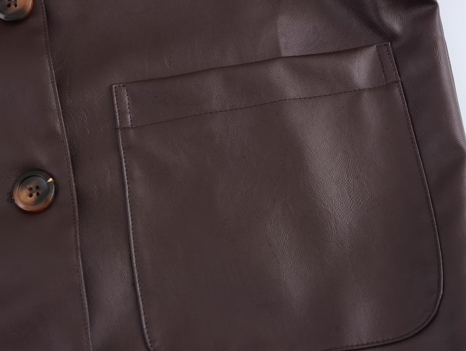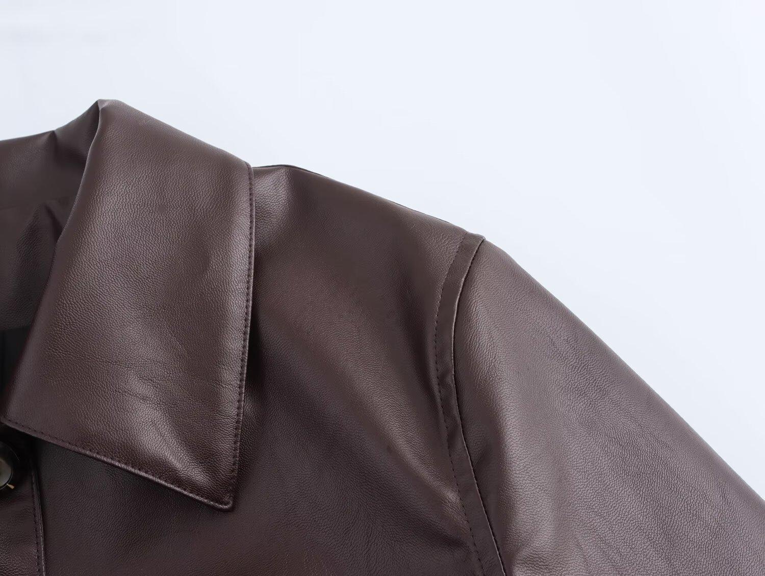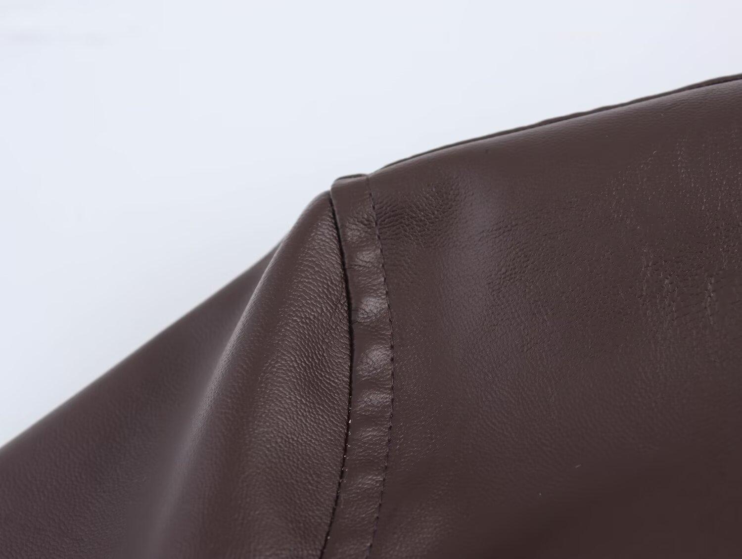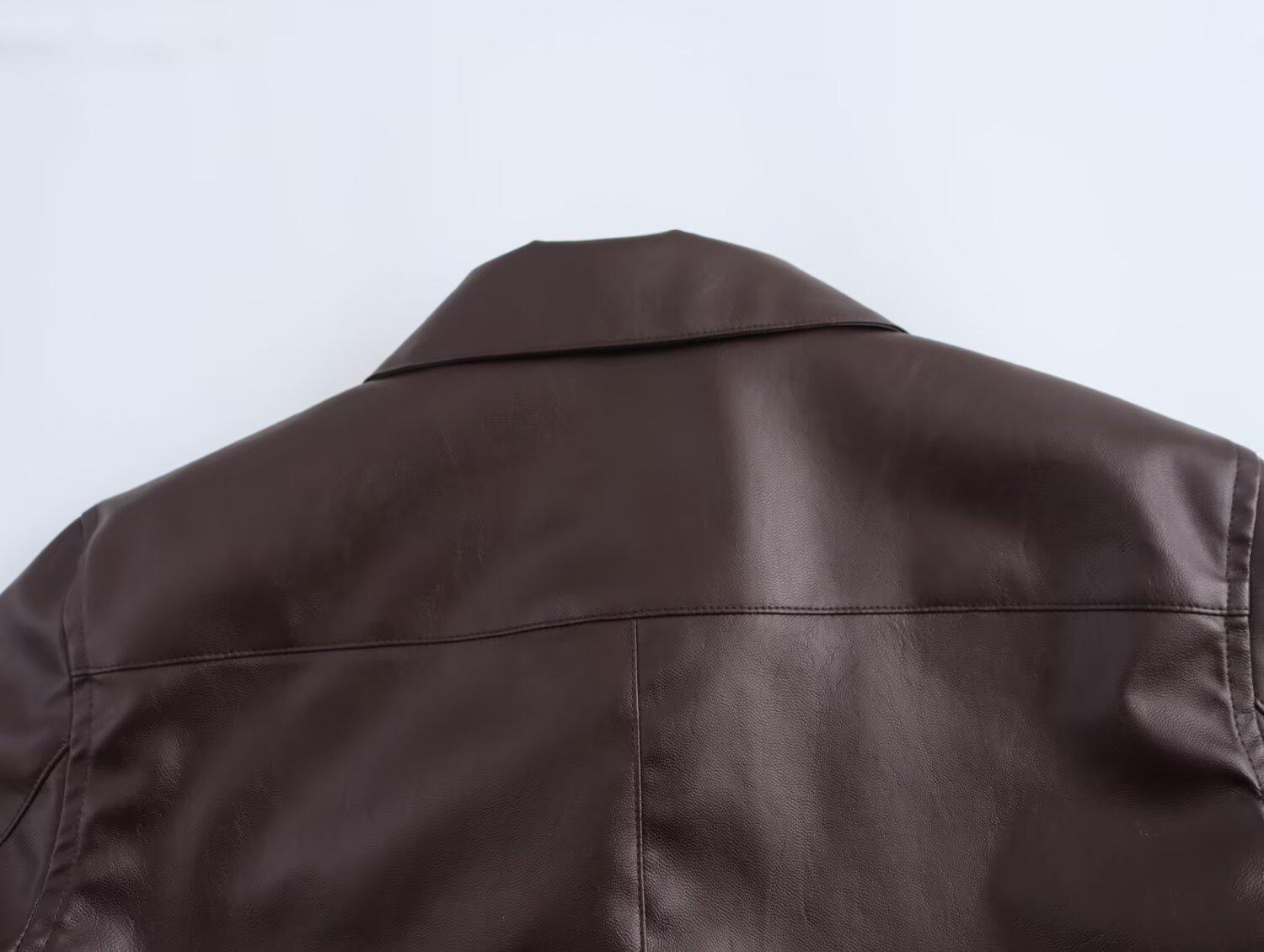 Chaqueta de cuero de manga larga con solapa bicolor de moda transfronteriza europea y americana, nueva primavera 2025 B481839
