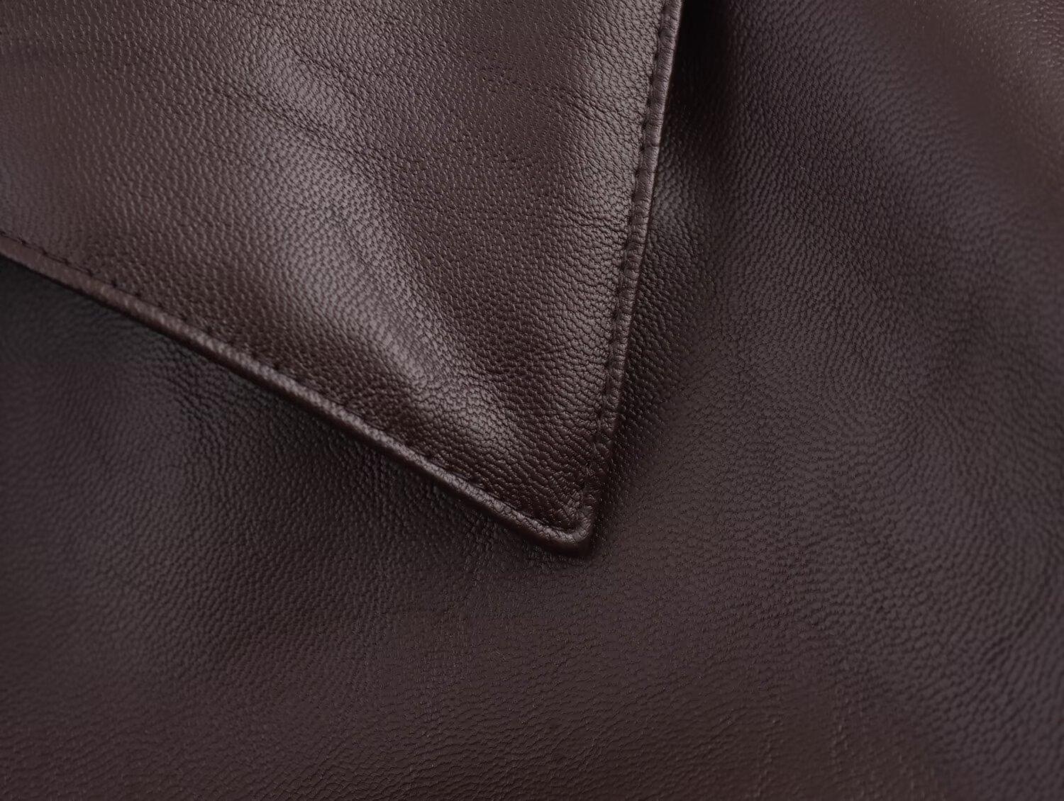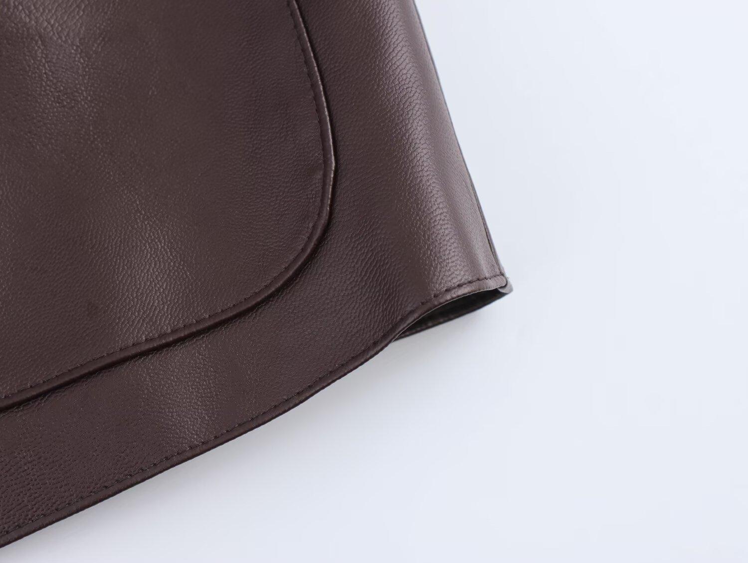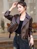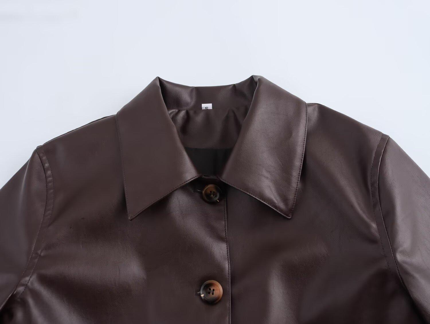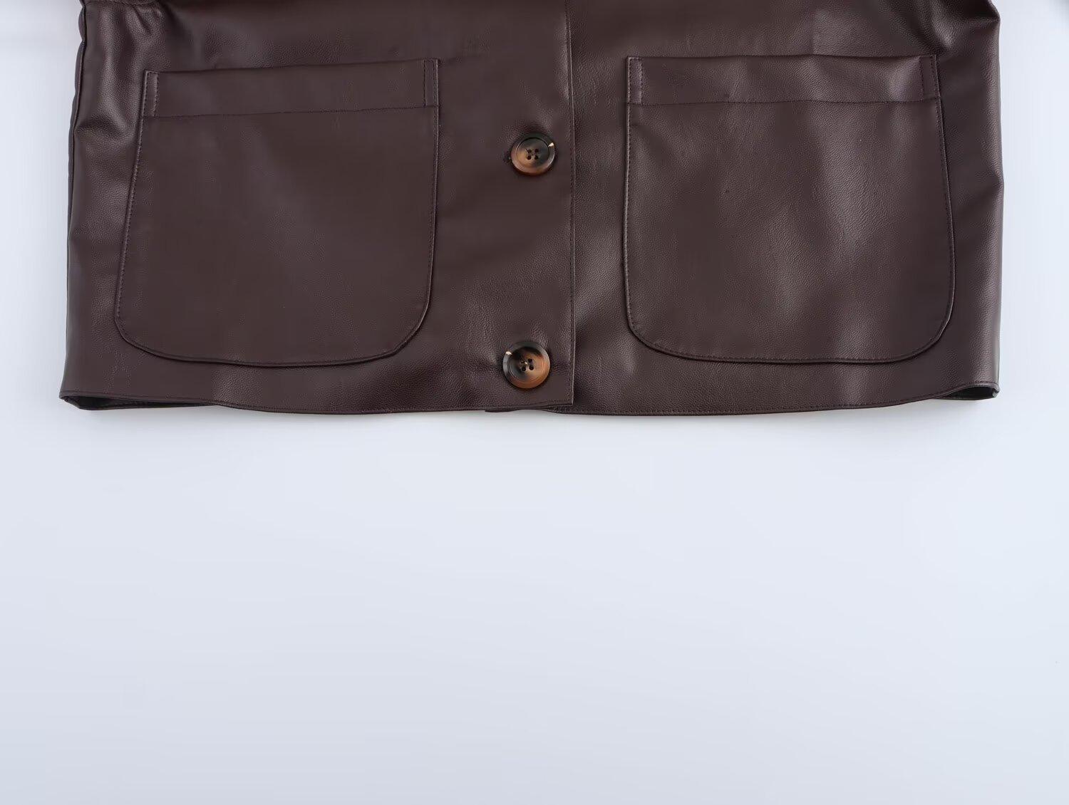 Chaqueta de cuero de manga larga con solapa bicolor de moda transfronteriza europea y americana, nueva primavera 2025 B481839