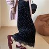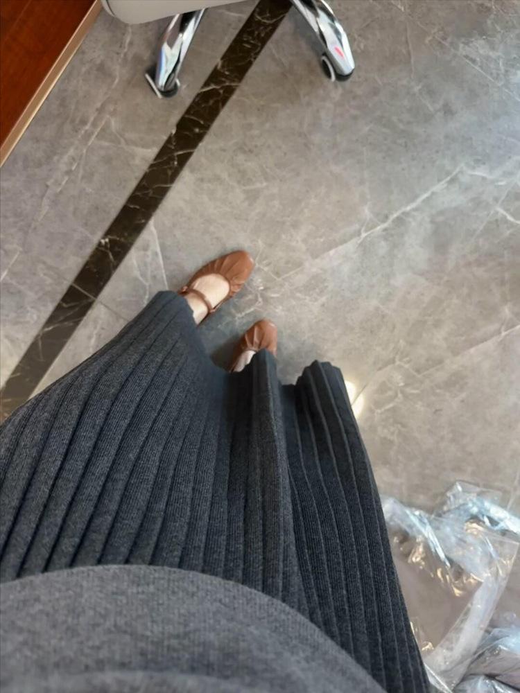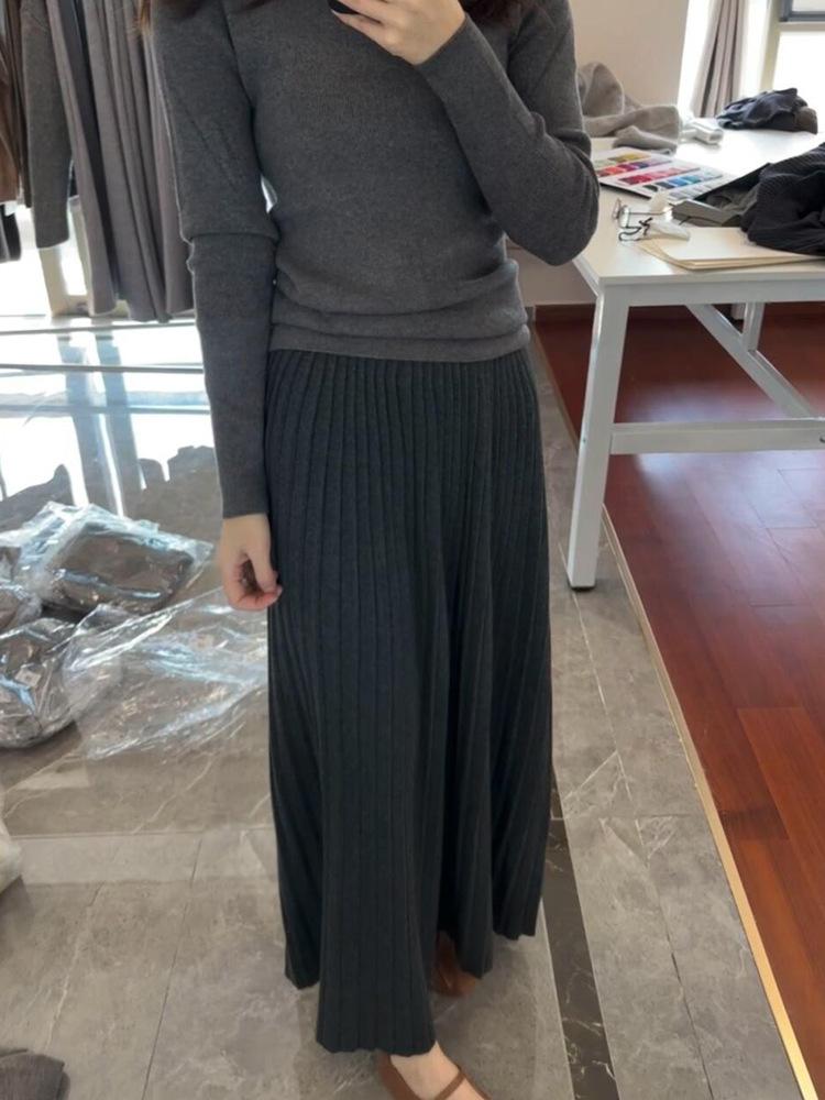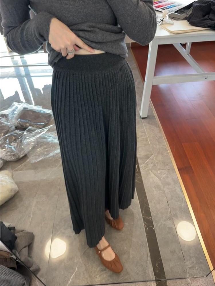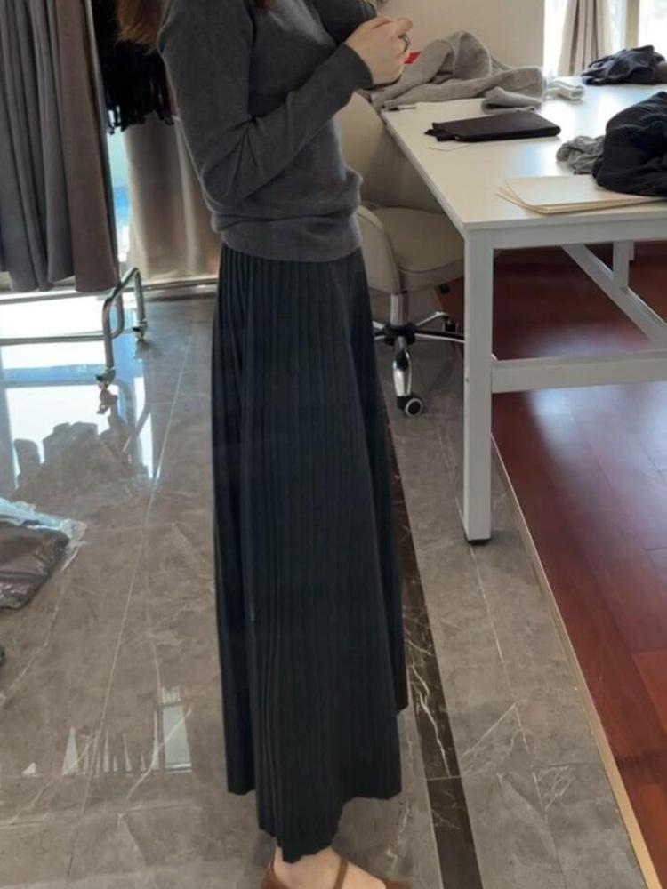 Falda Francesa Gruesa de Lana Gris para Mujer 2025 Invierno Nuevo Estilo Drapeada Plisada Media Longitud Falda de Dobladillo Ancho