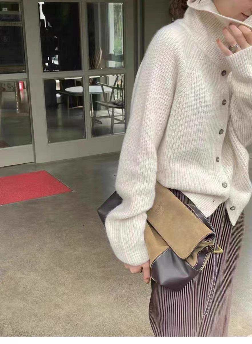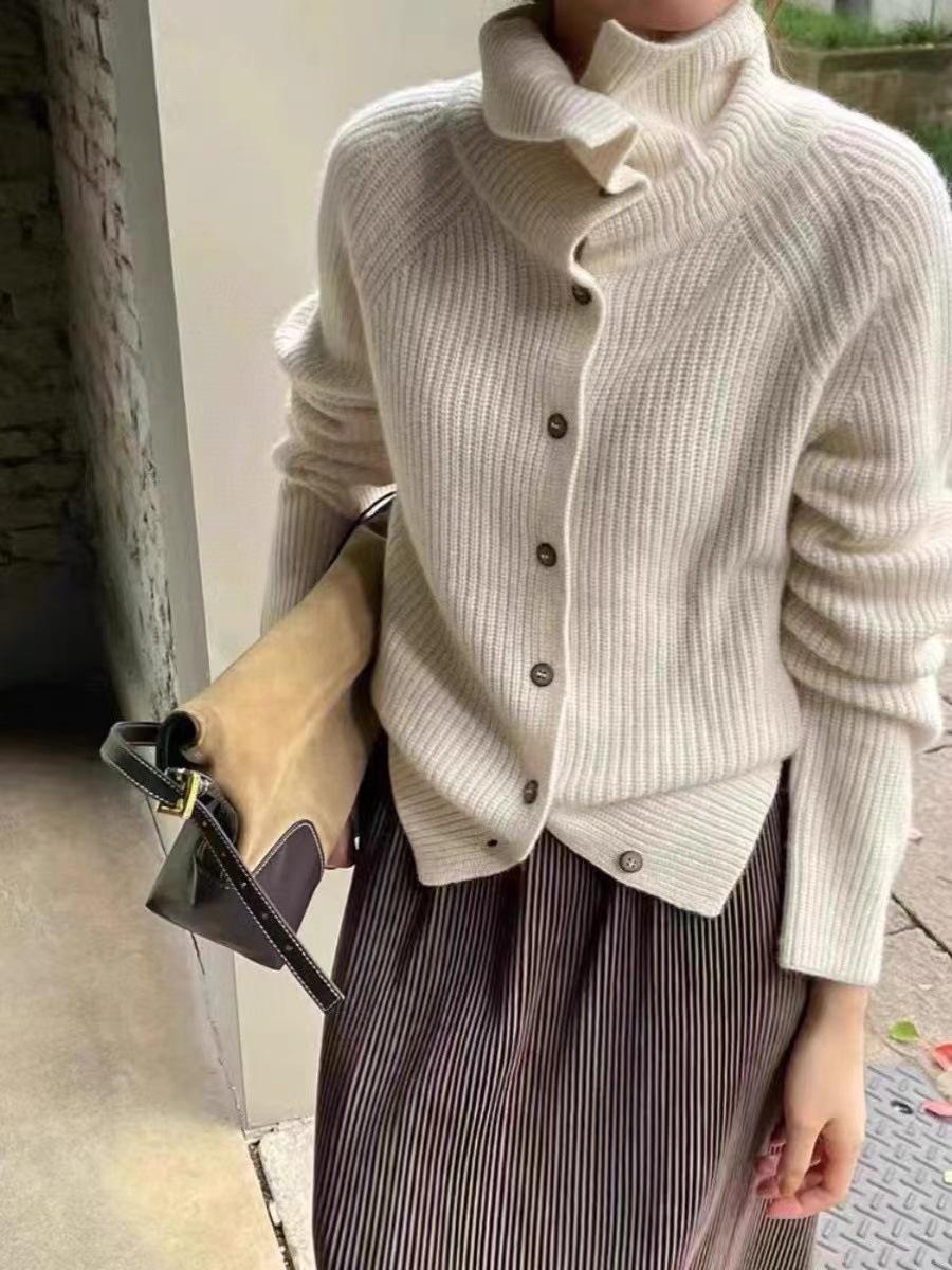 Cárdigan de Lana Pura Estilo Perezoso Estación Europea para Mujer Cuello Alto Suelto Top Grueso Tejido de Cachemira Suéter de Cuello Alto Chaqueta