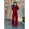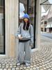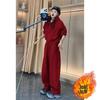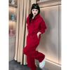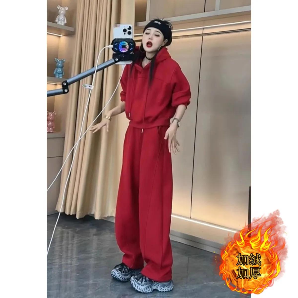 Traje de Sudadera con Capucha Gruesa Forrada de Polar Ancora Red de Alta Gama para Mujer Otoño e Invierno Moda Casual Europea Deportivo Dos Piezas